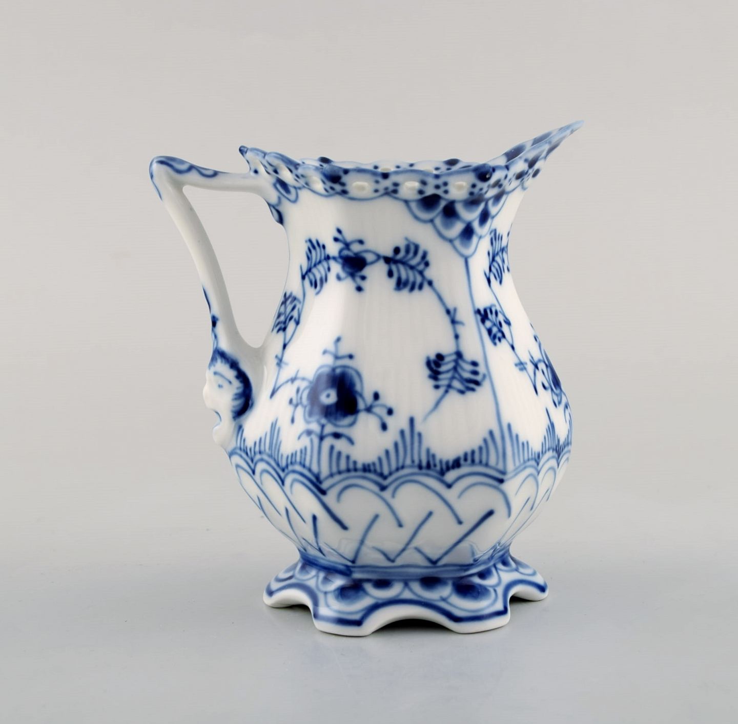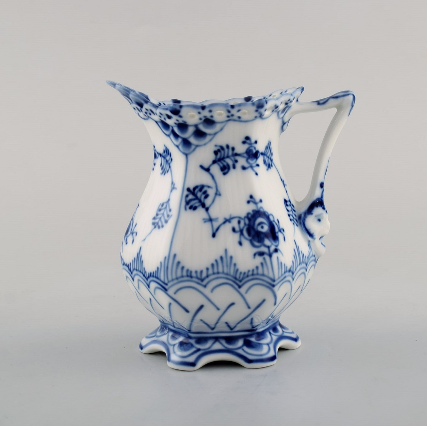 Royal Copenhagen Blue Fluted Full Lace cream jug in porcelain. Model Number 1/1032. Measures: 10,5 x 9,5 cm. In perfect condition. Stamped. 1st factory quality.