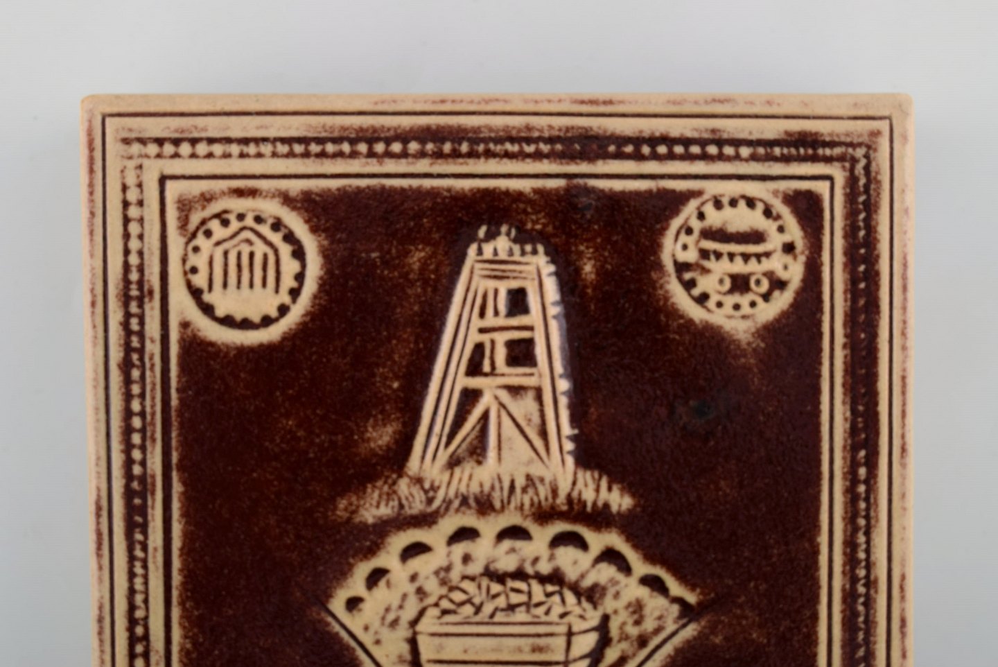 Henning Nilsson (1907-1993) Sverige. Vægplakette i glaseret stentøj. Dateret 1977. Måler: 17 x 17 cm. I flot stand. Stemplet.