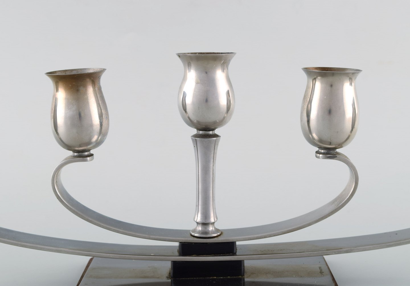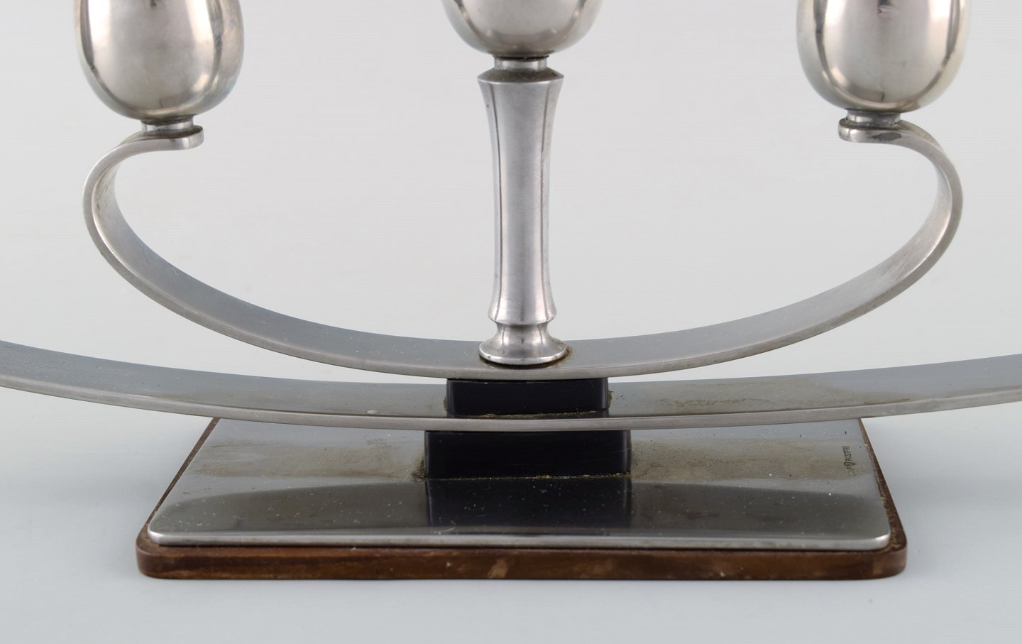 Cohr, Danmark. Femarmet lysetage i rustfrit stål. Midt 1900-tallet. I flot stand. Måler: 31 x 13 cm. Stemplet.