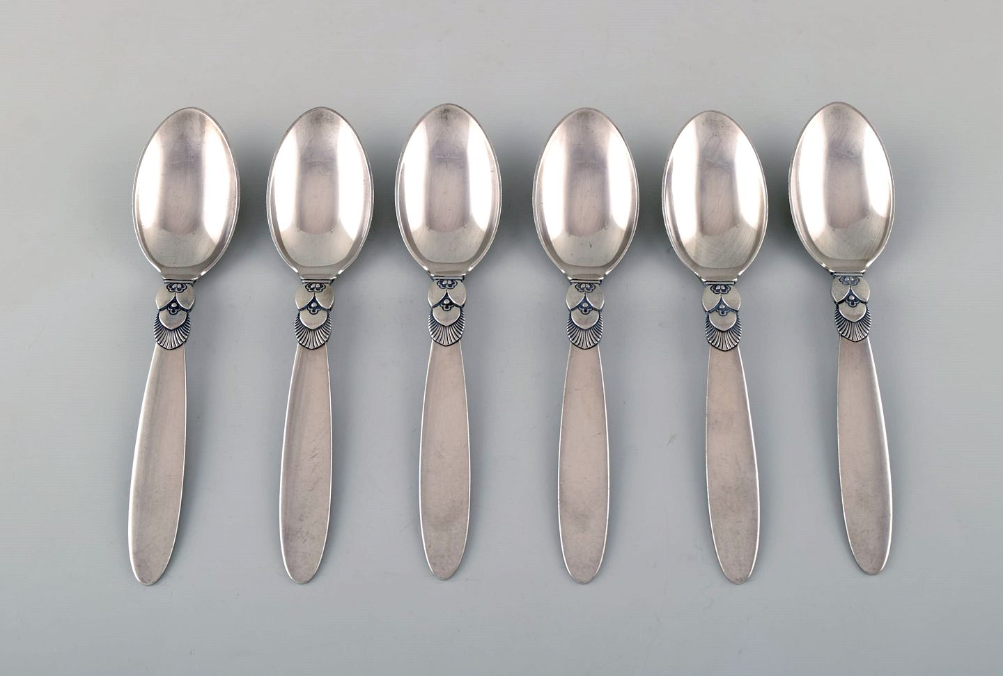 Six Georg Jensen "Cactus" teaspoons in sterling silver. Designer: Gundorph Albertus. Length: 15 cm. Stamped. In very good condition.