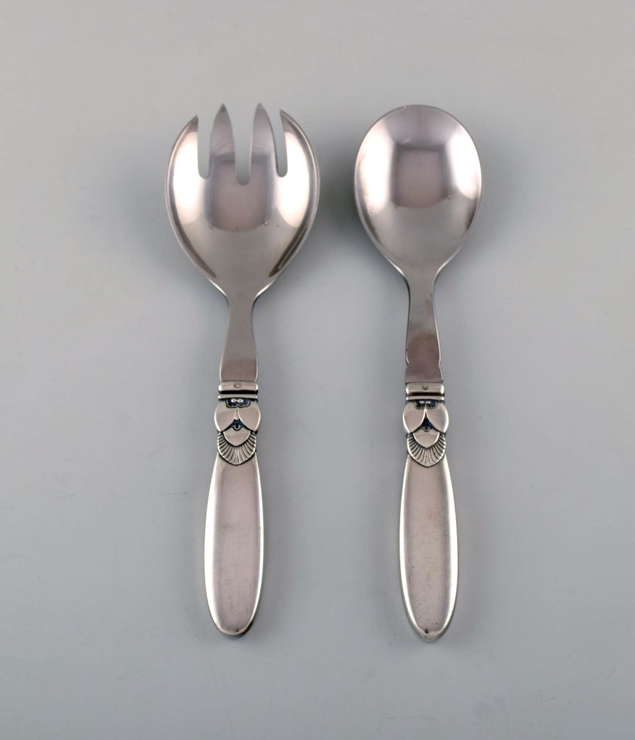 Georg Jensen "Cactus" salad set in sterling silver and stainless steel. Designer: Gundorph Albertus. Length: 20 cm. Stamped. In very good condition.