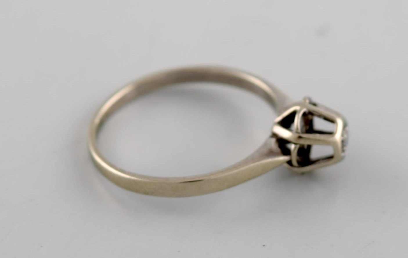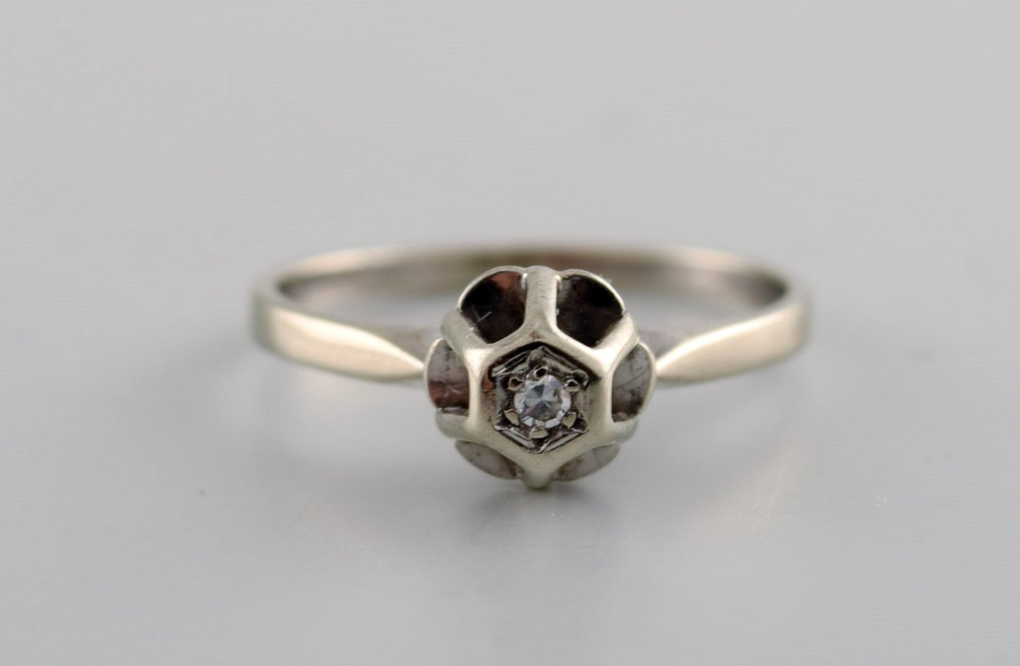 Danish goldsmith. Ring in 14 carat white gold with a brilliant of 0.05 ct. Mid 20th century.