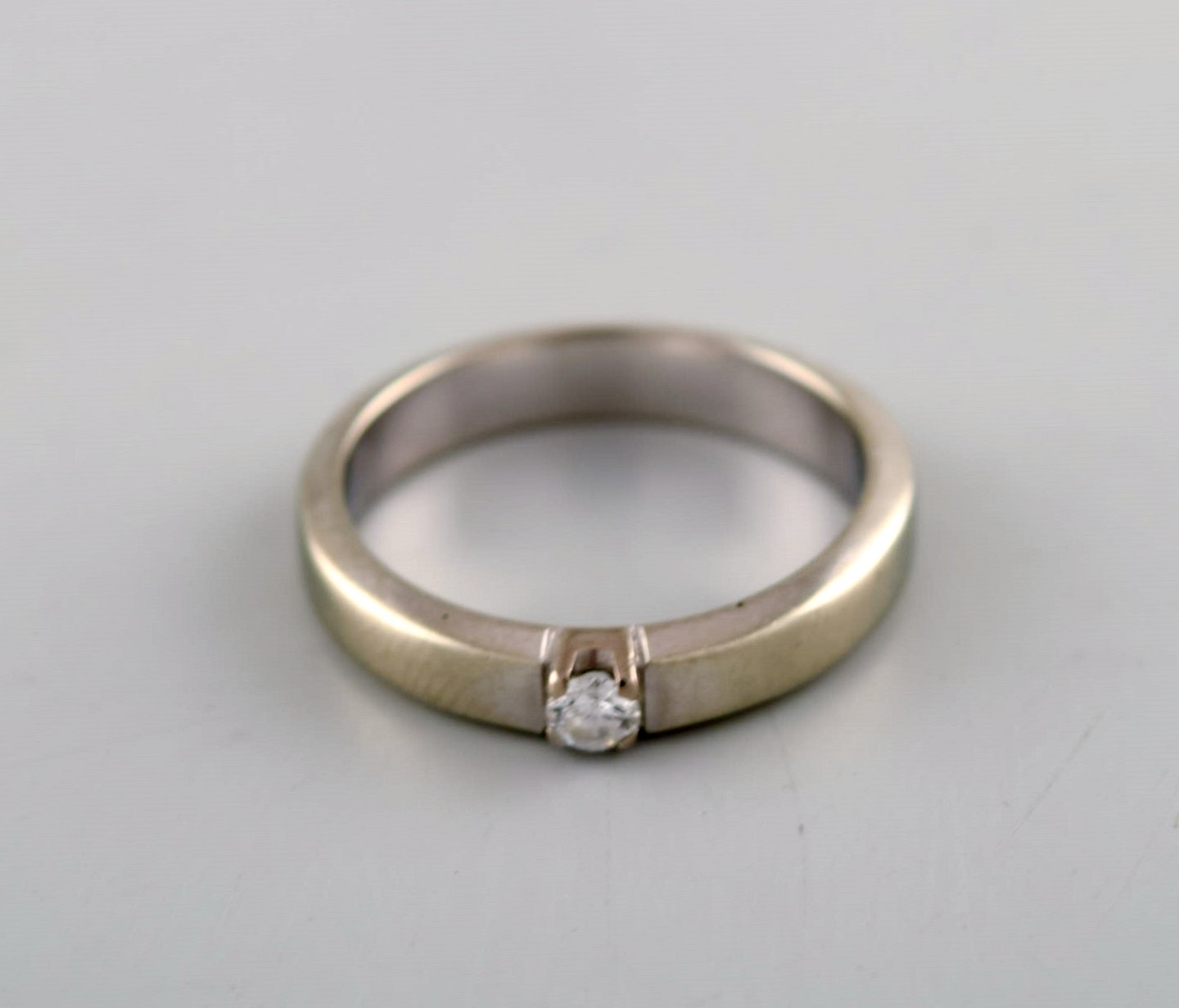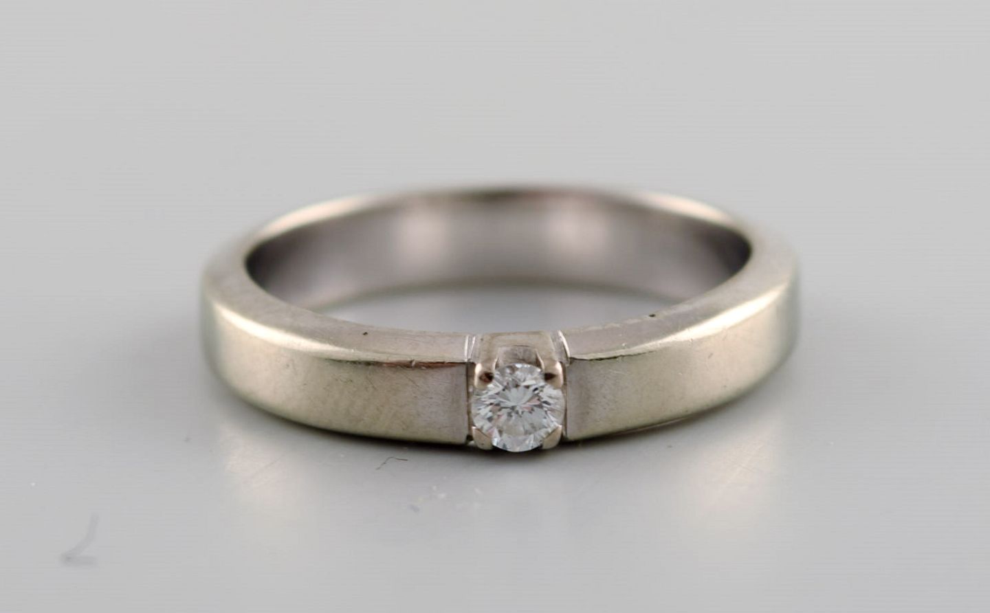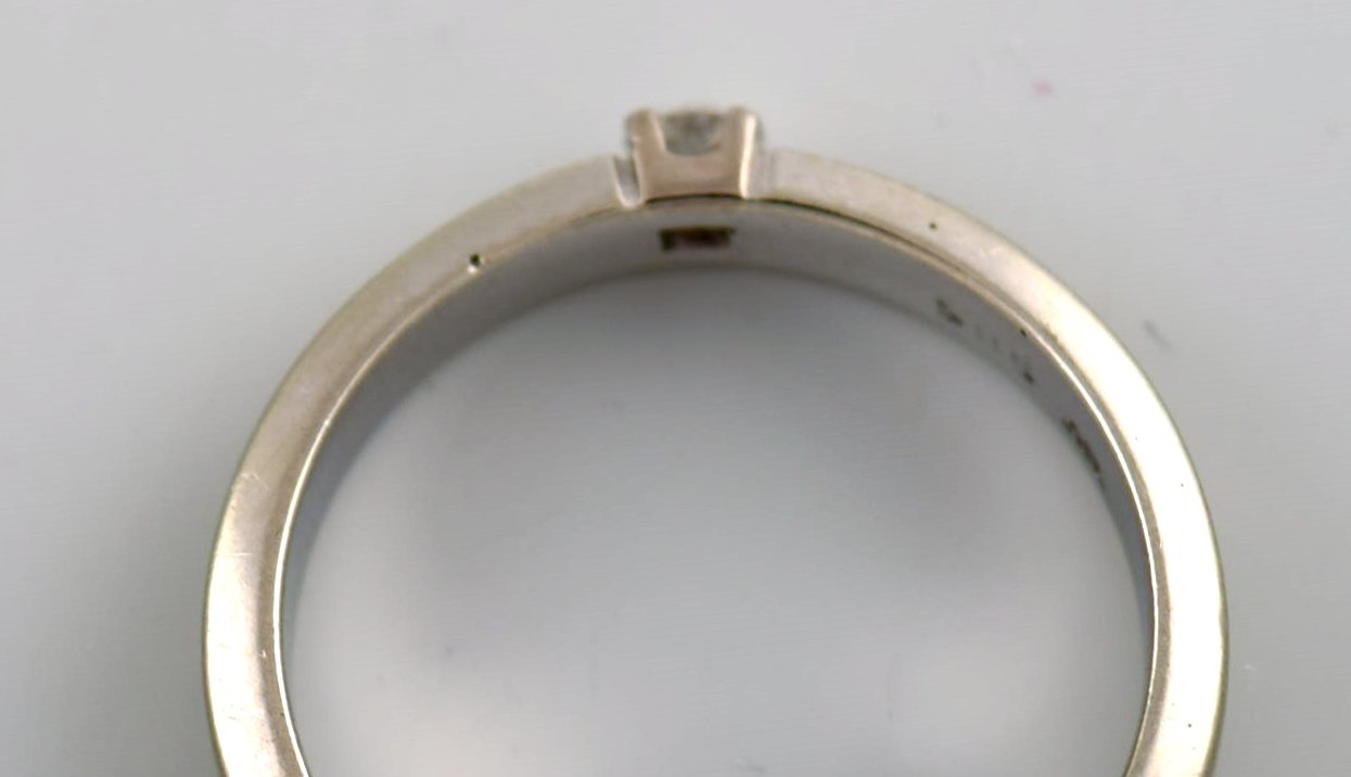 Danish goldsmith. Ring in 14 carat white gold with a brilliant of 0.10 ct. Mid 20th century. Diameter: 16.8 mm. US size: 5.25. In very good condition. Stamped. Color: Wesselton (H). Clarity: VS.