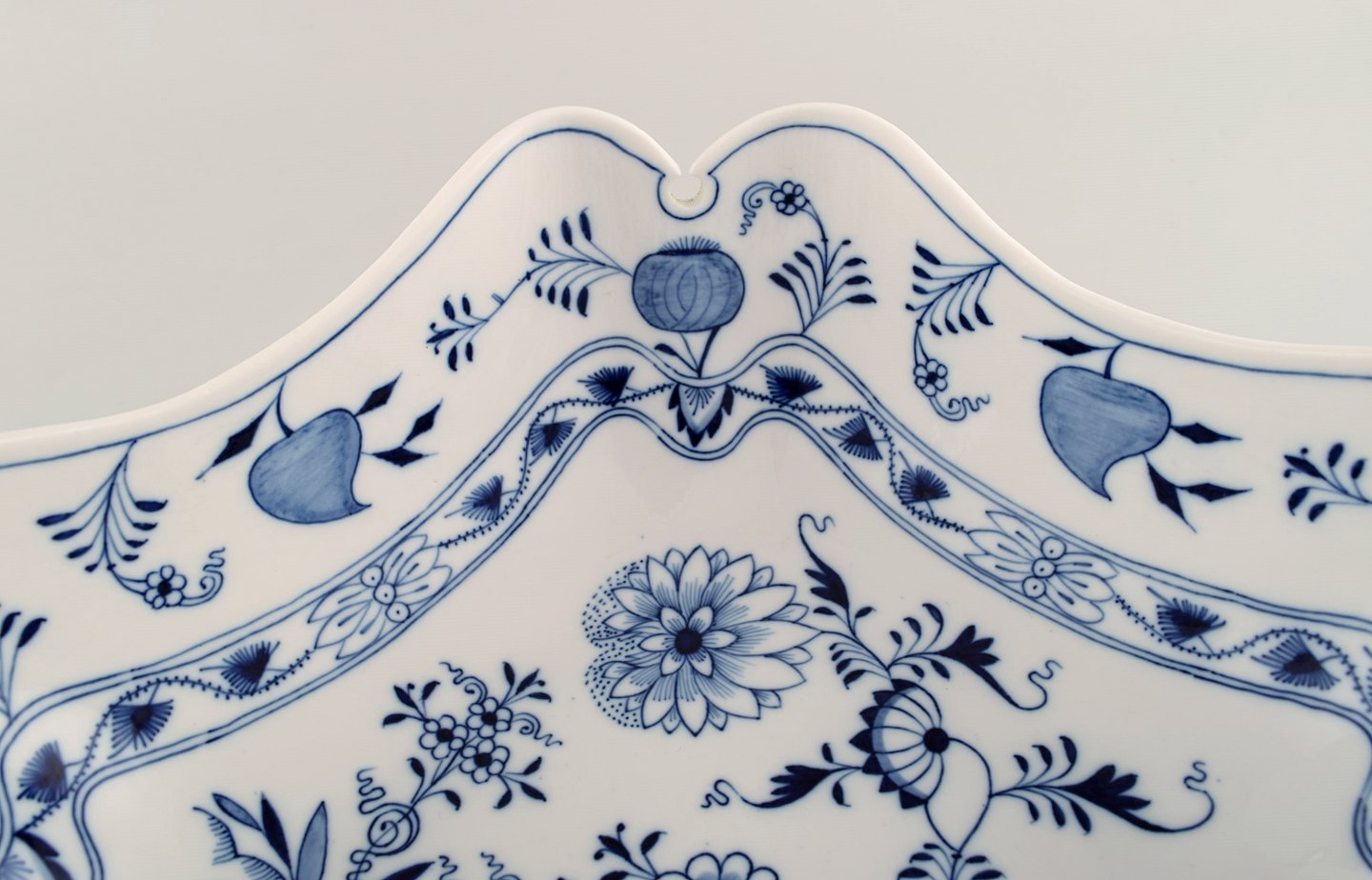 Antik Meissen "Løgmønstret" kvadratisk skål i håndmalet porcelæn. Tidligt 1900-tallet.