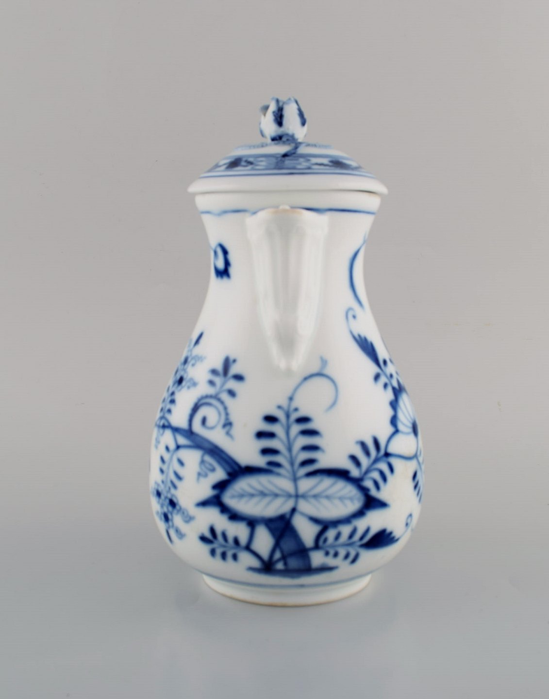 Antik Meissen "Løgmønstret" kaffekande i håndmalet porcelæn. Tidligt 1900-tallet. Måler: 23 x 18 cm. Stemplet. Indvendige skår i låget. 1. Sortering.