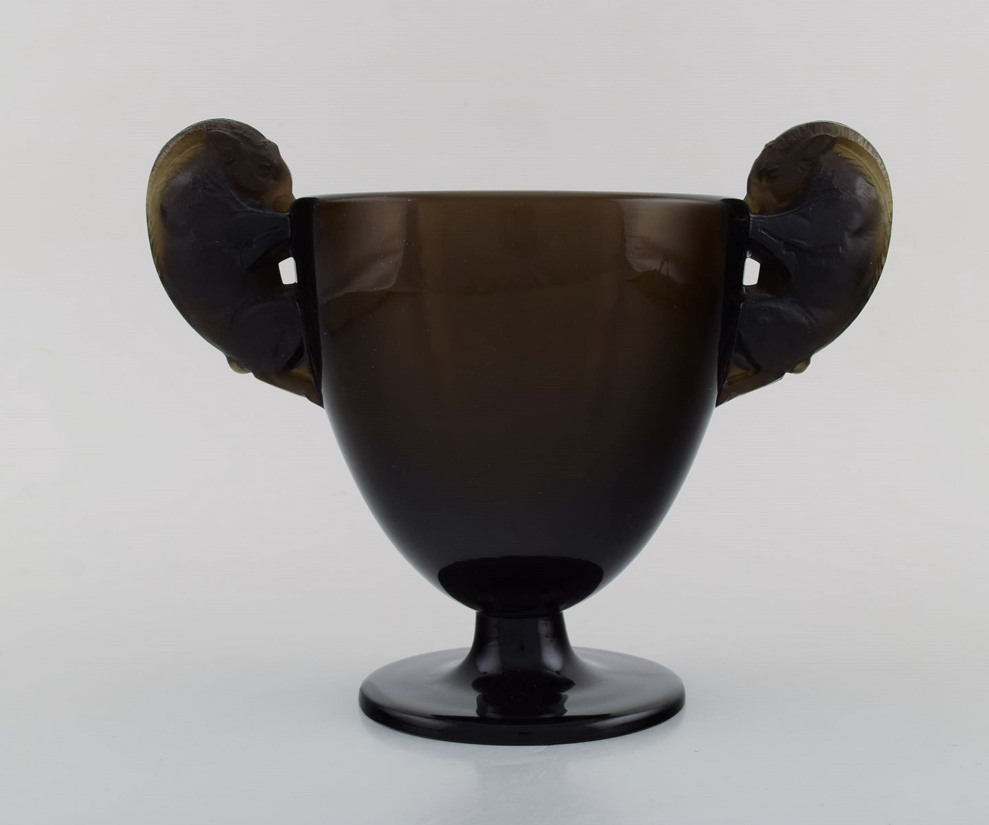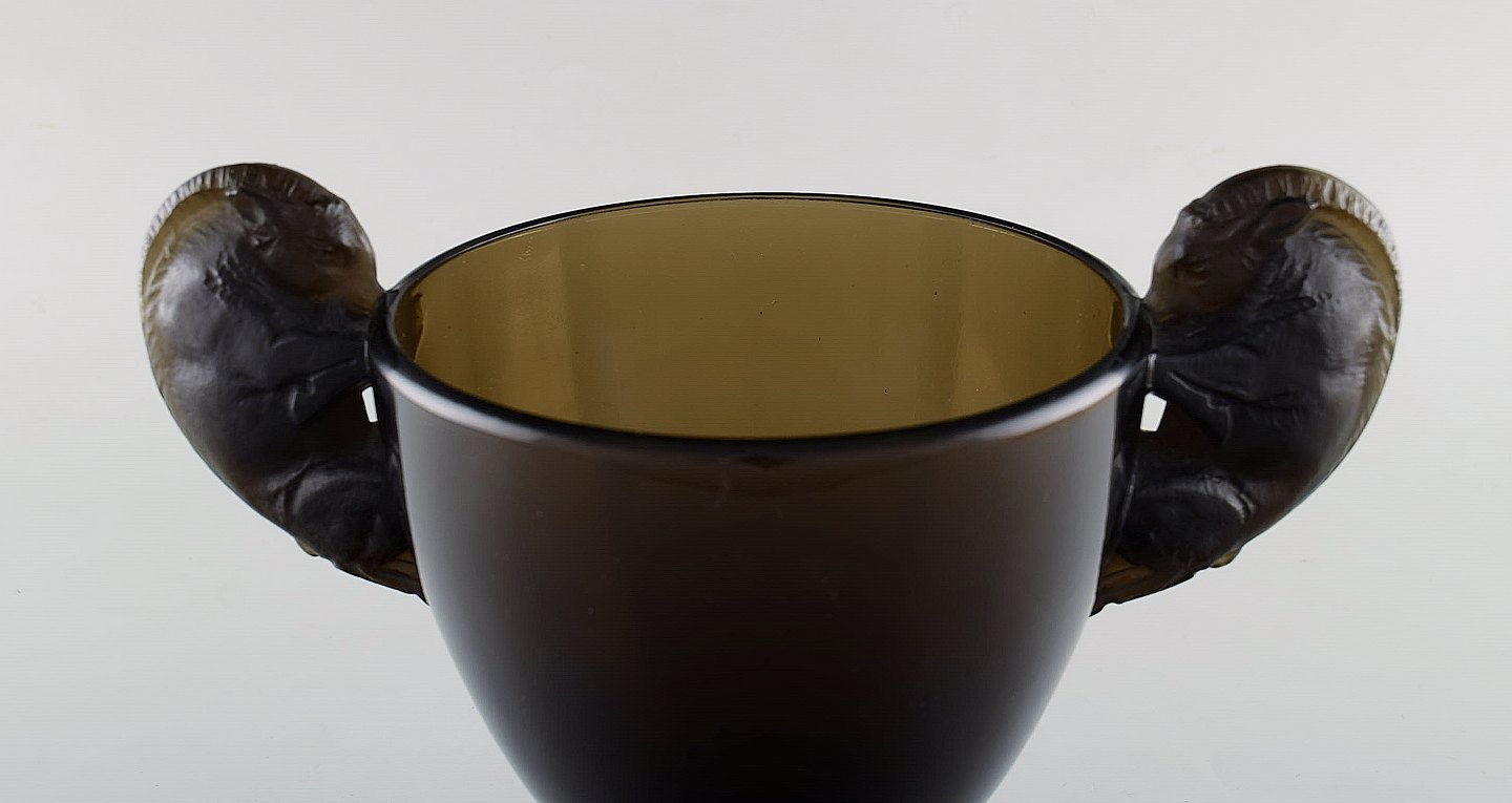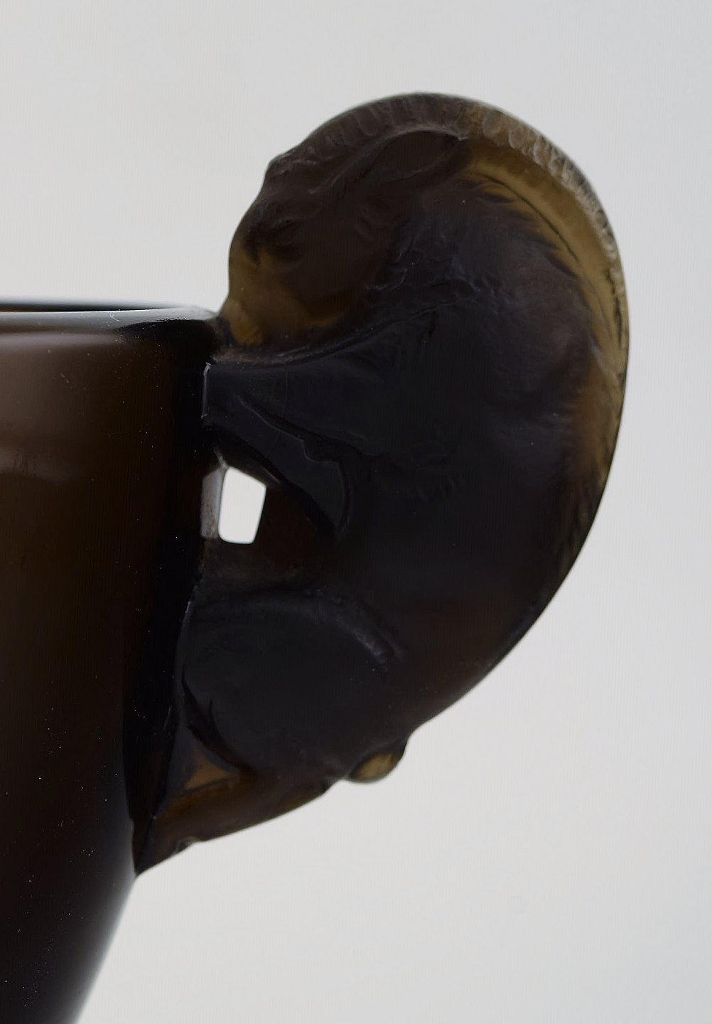 Early and rare René Lalique. "Beliers" vase in dark grey art glass. France, designet in 1925. Model number 904. Incised signature: R. Lalique. In very good condition. Measures: 24 x 19 cm.