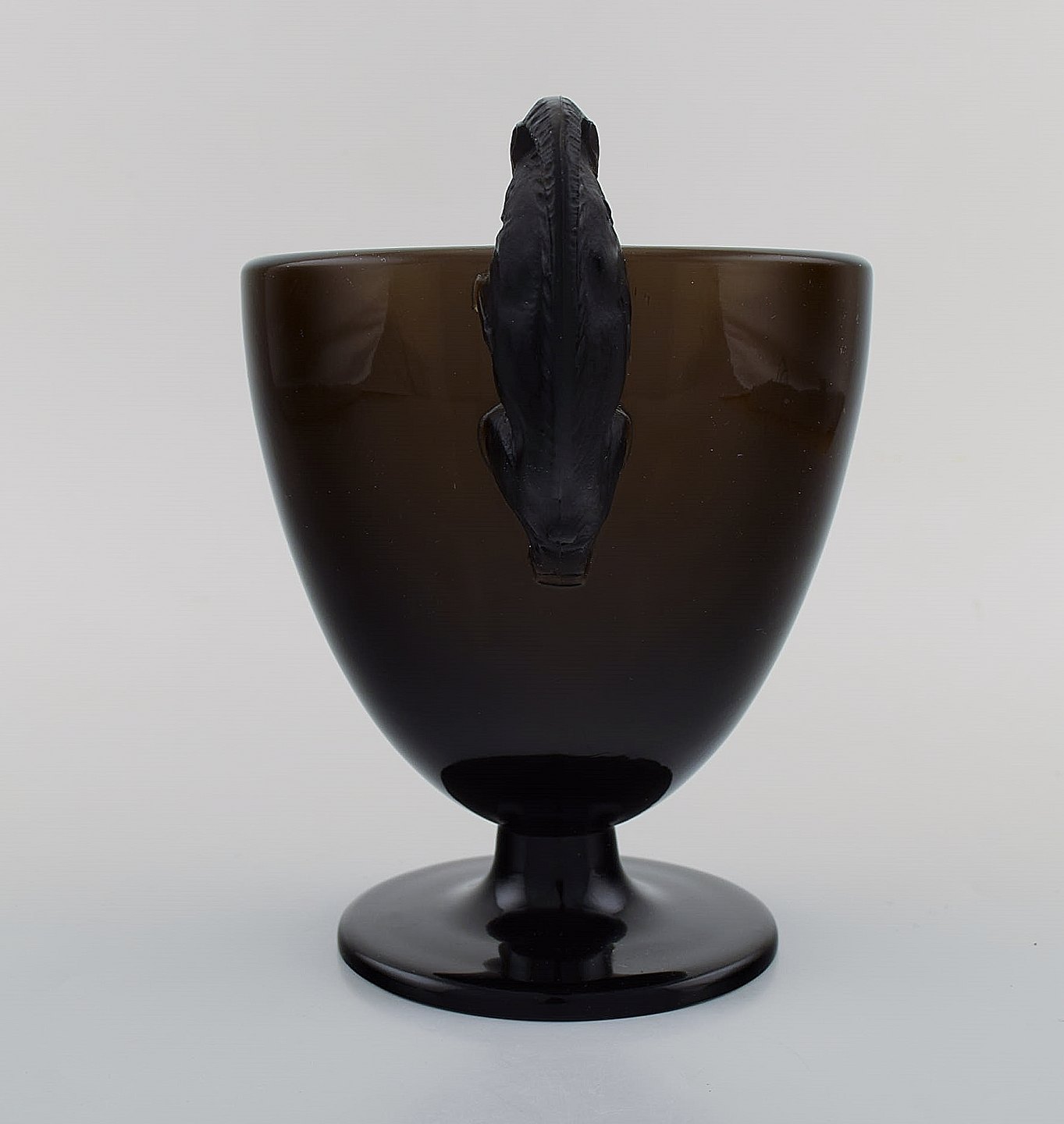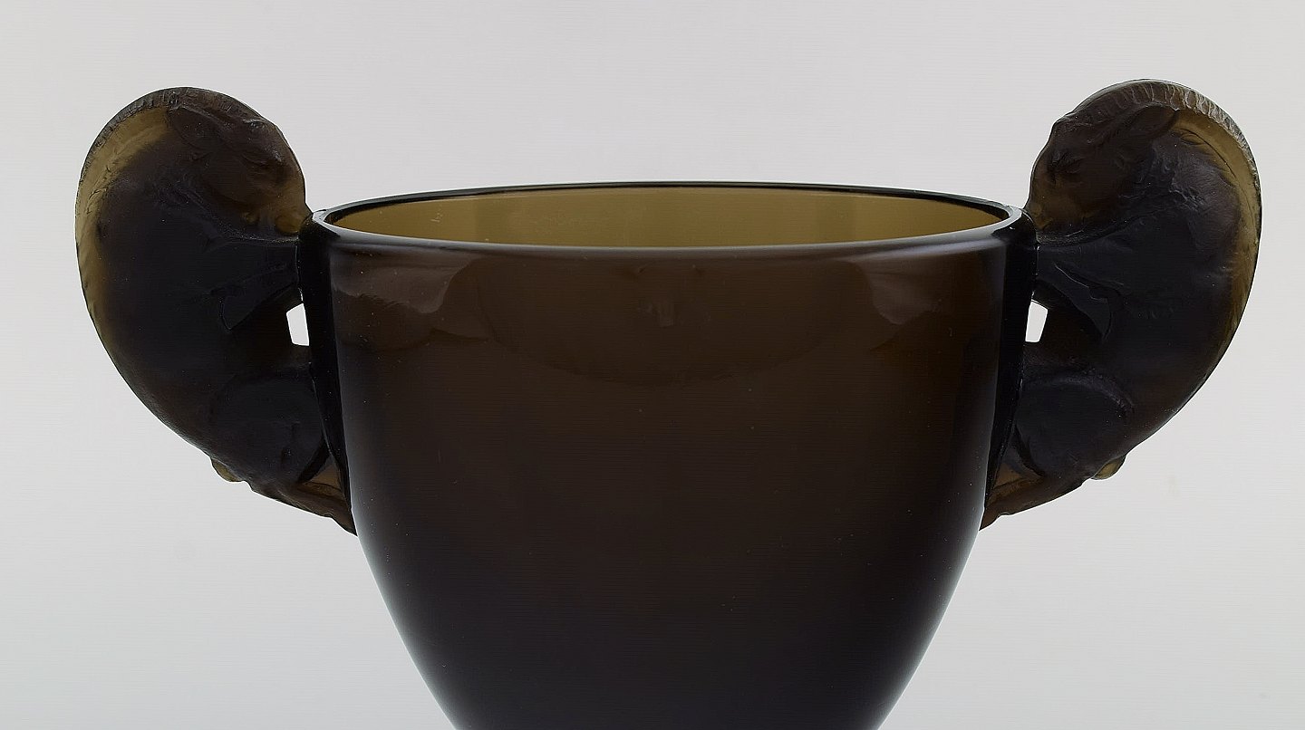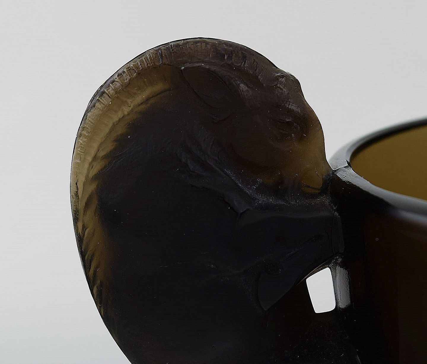 Early and rare René Lalique. "Beliers" vase in dark grey art glass. France, designet in 1925. Model number 904. Incised signature: R. Lalique. In very good condition. Measures: 24 x 19 cm.