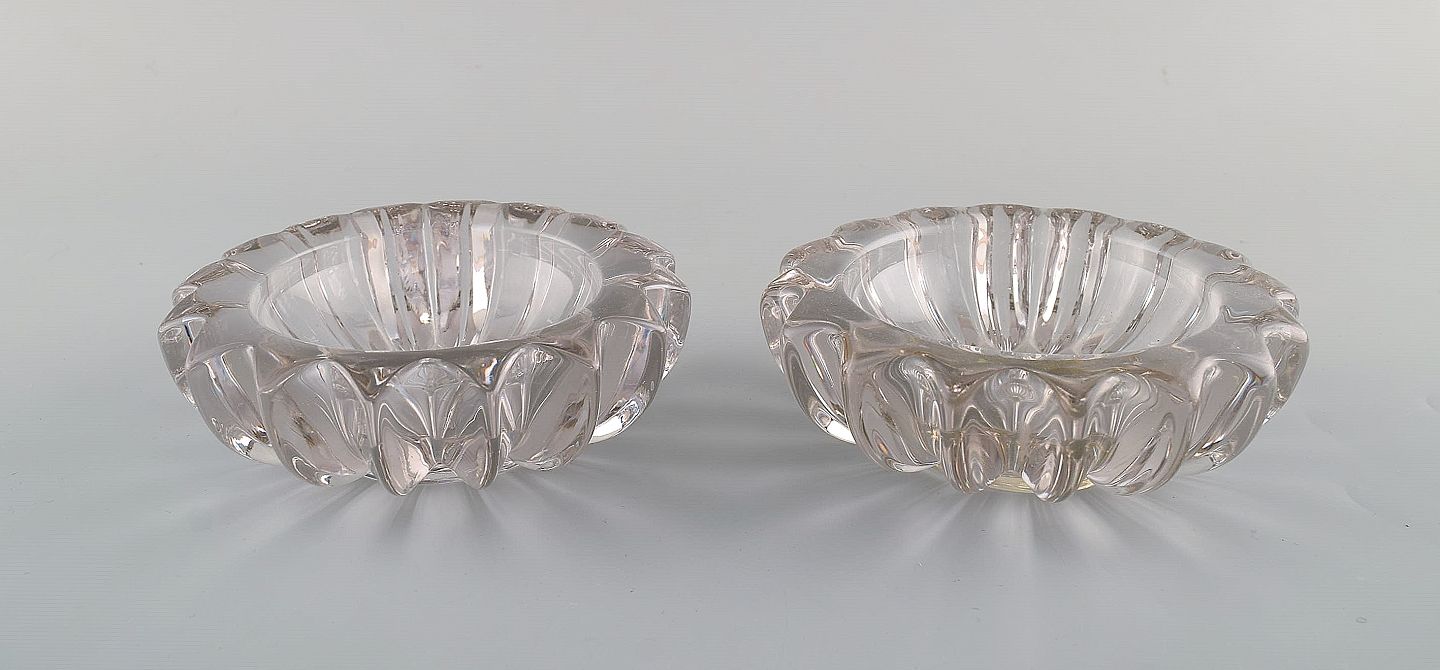 Pierre Gire (1901-1984), aka Pierre d'Avesn. Two art deco bowls in clear art glass. 1940's.