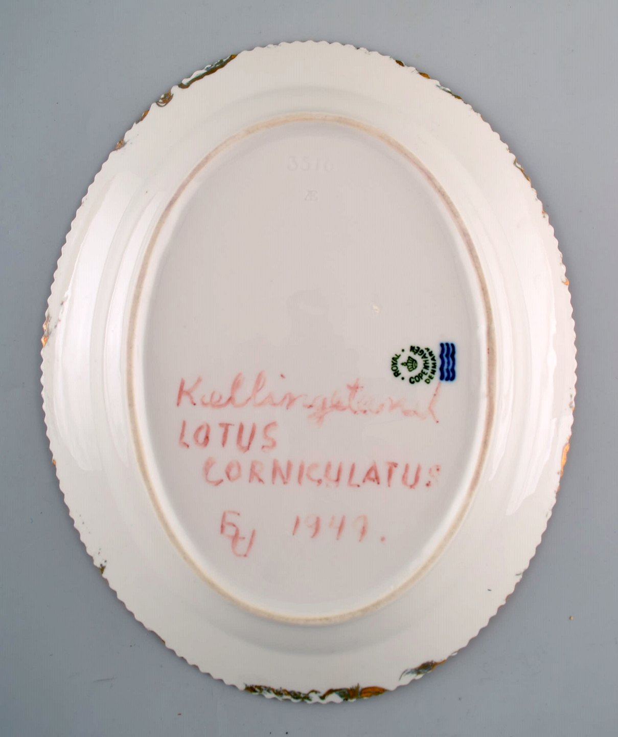 Stort Royal Copenhagen flora danica fad i håndmalet porcelæn. Dateret 1947. Måler: 25 x 20 cm. I flot stand. 2. sortering. Stemplet.
