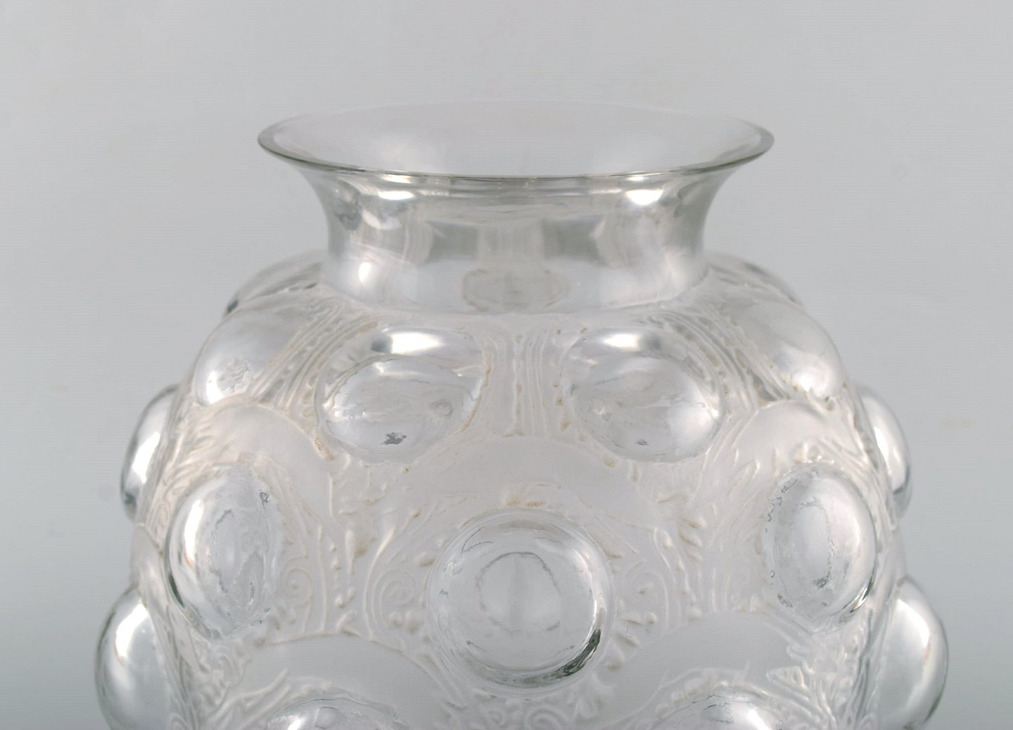 Stor og tidlig René Lalique. Sjælden "Antilopes" vase i kunstglas med springende antiloper. Modelnummer 875. Designet 1925. Stemplet: R. Lalique. I flot stand. Måler: 27,5 x 26 cm.