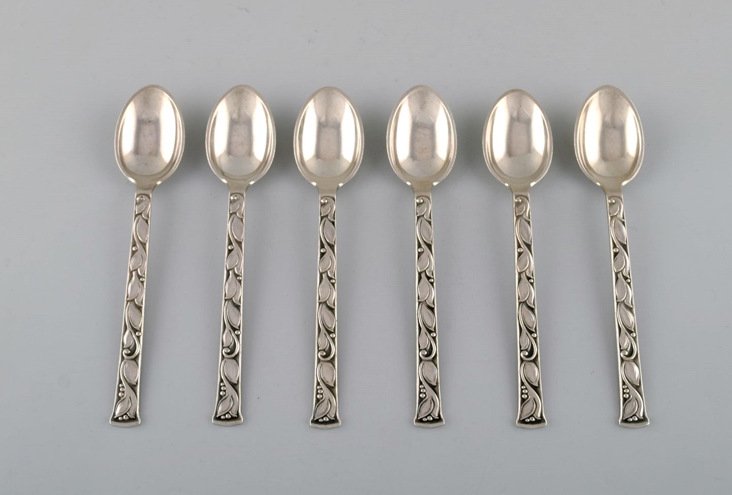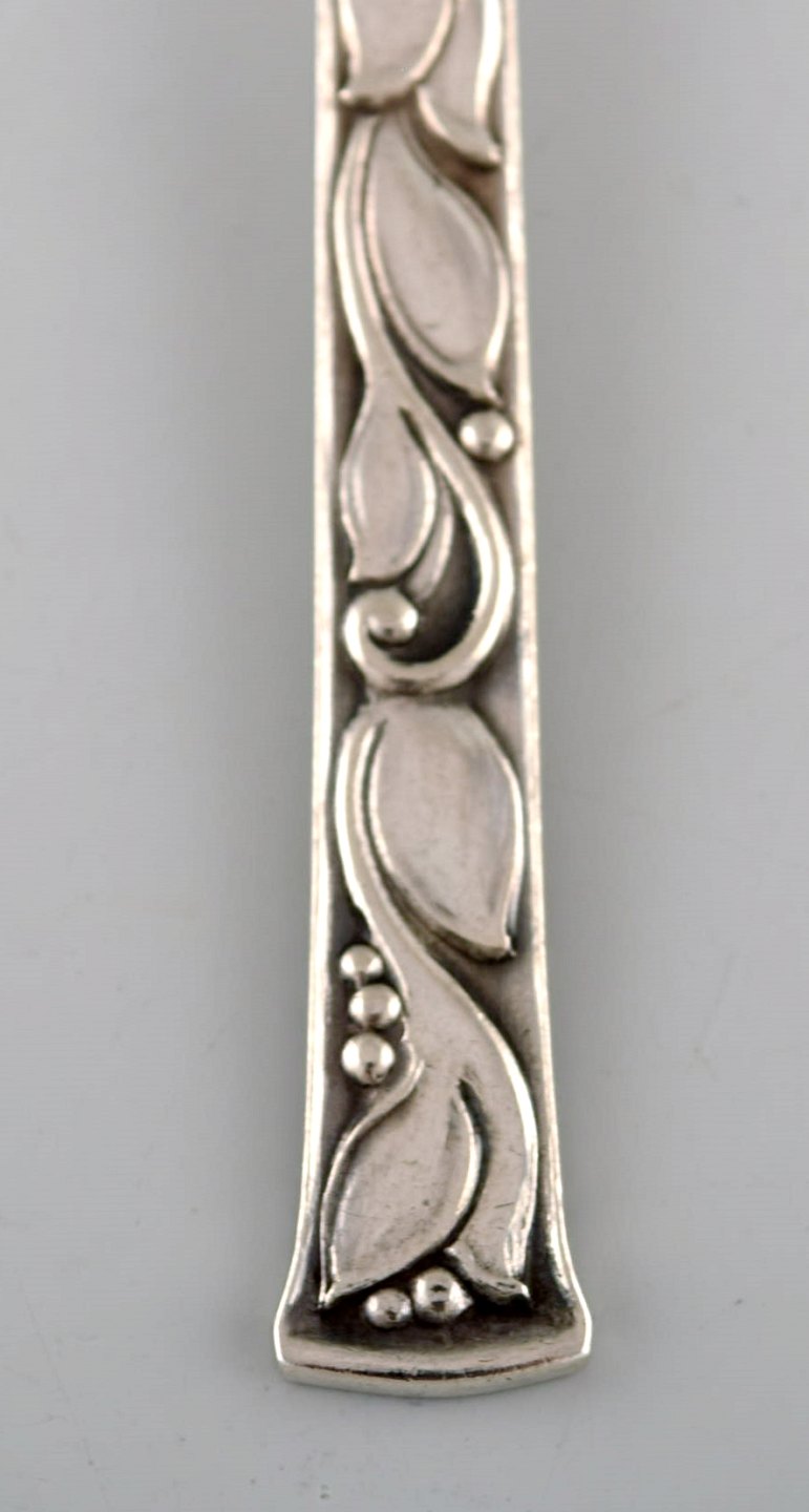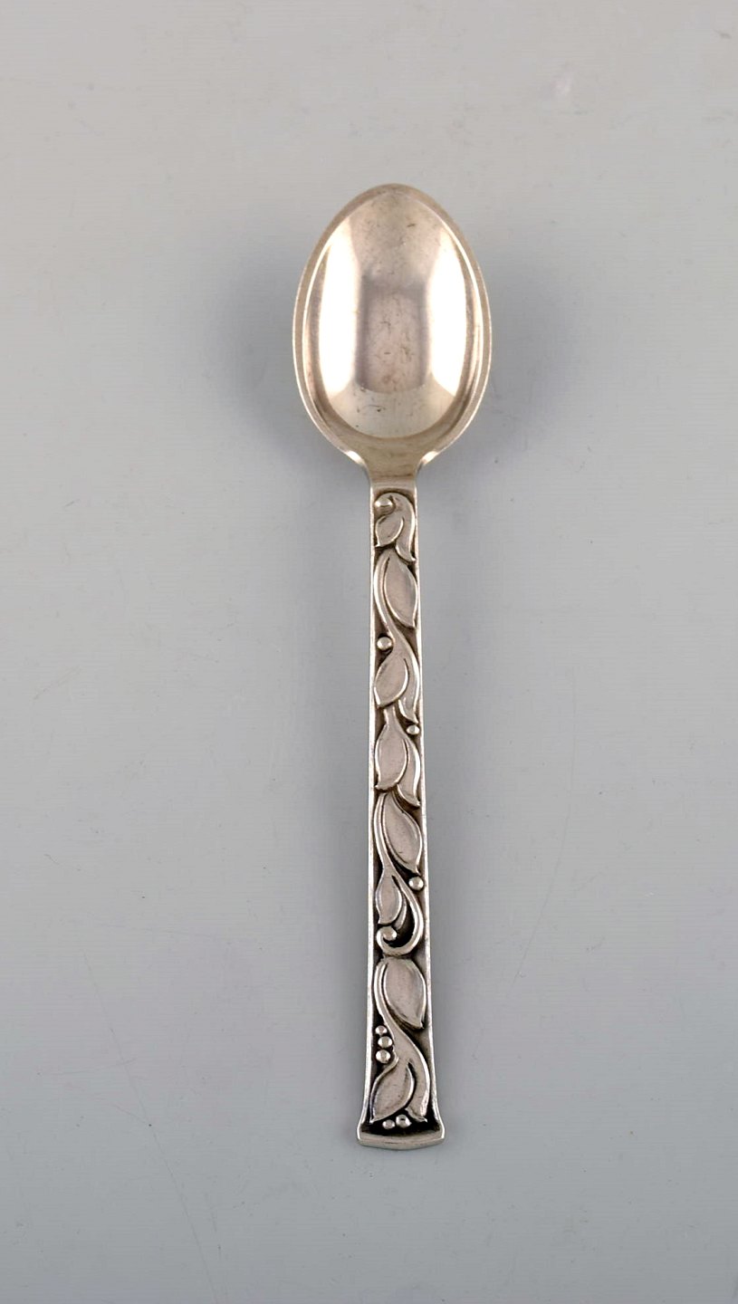 Evald Nielsen no. 30 (leaf pattern), set at six tea spoons in sterling silver. 1920's. Measures: 14.5 cm. Stamped. 1920 s. In perfect condition.
