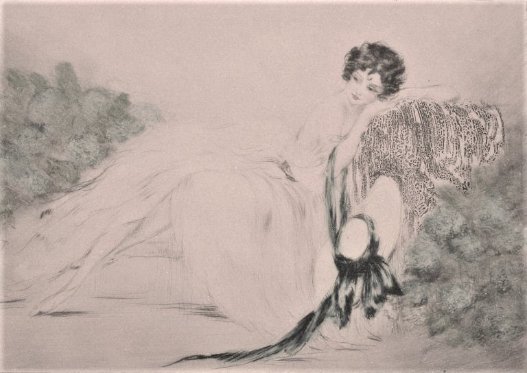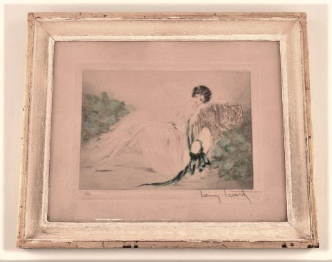 Louis Icart (1888-1950). Etching on paper. Young woman. Ca 1920. Signed with pencil. In very good condition. Visible dimensions: 20,5 x 14,5 cm. Total dimensions: 27 x 22 cm. The frame measures: 3 cm.