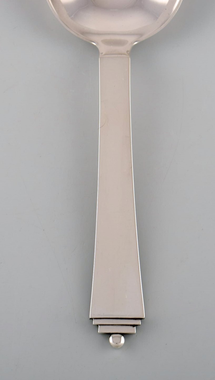 Georg Jensen Pyramide serveringsske i sterlingsølv. Dateret 1945-51. Længde: 22,5 cm. Designet af Harald Nielsen 1927. I flot stand. Stemplet.