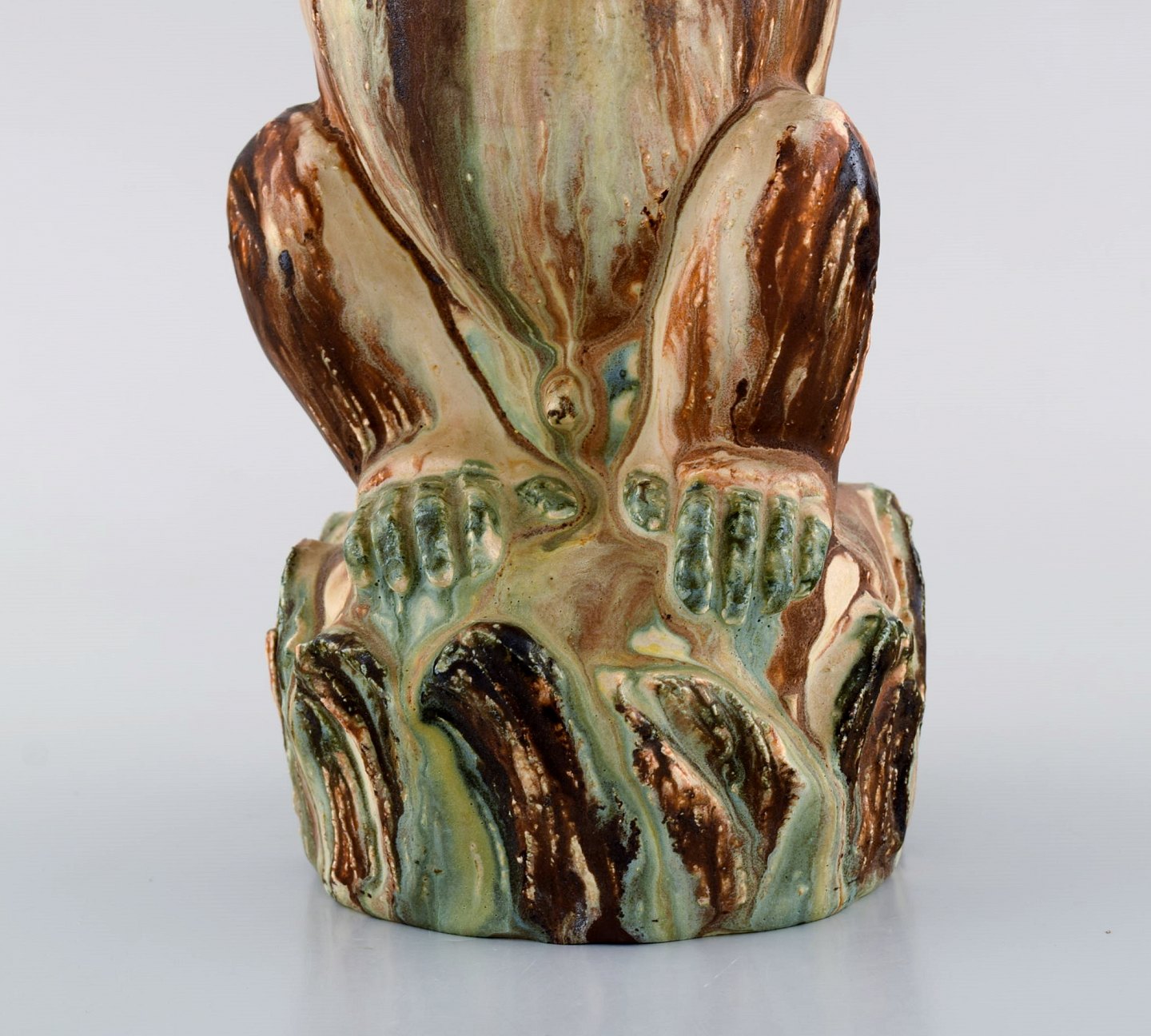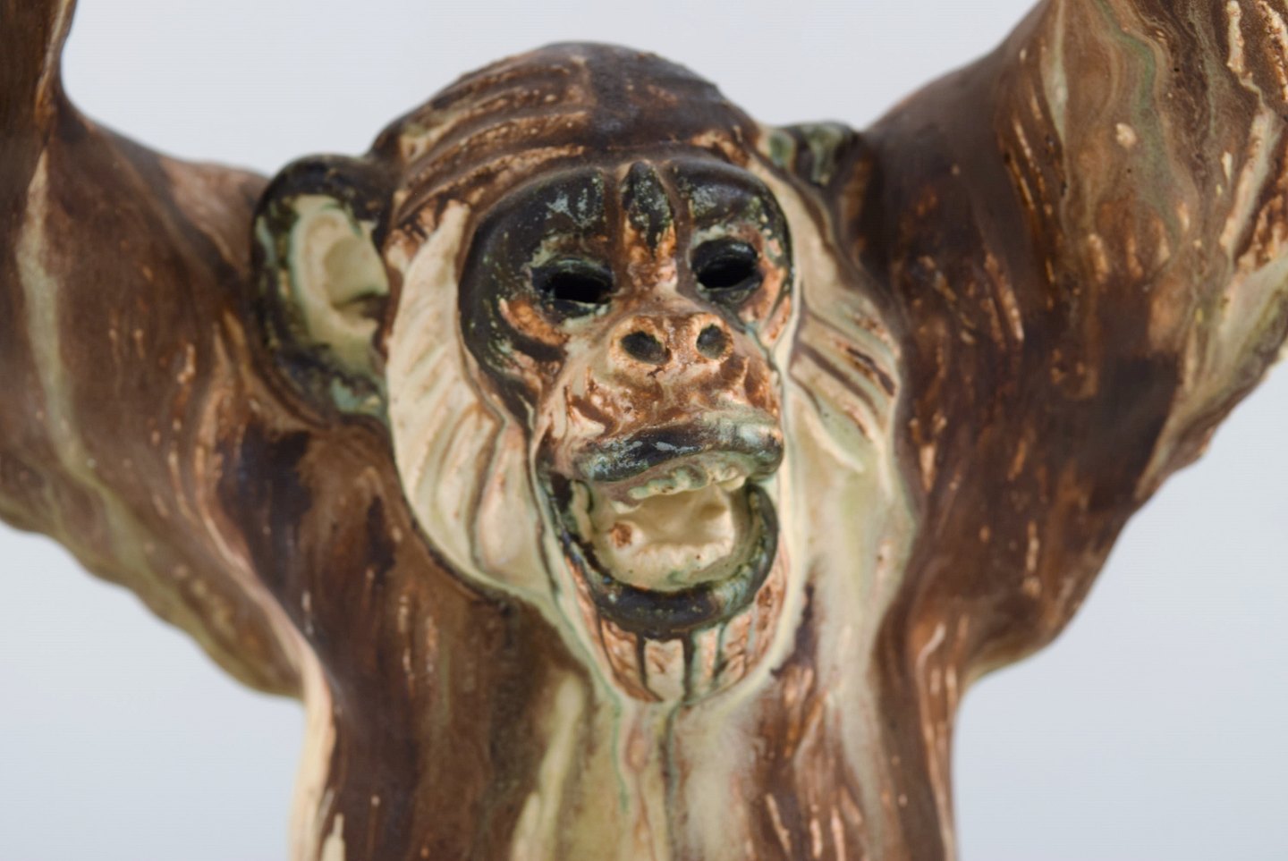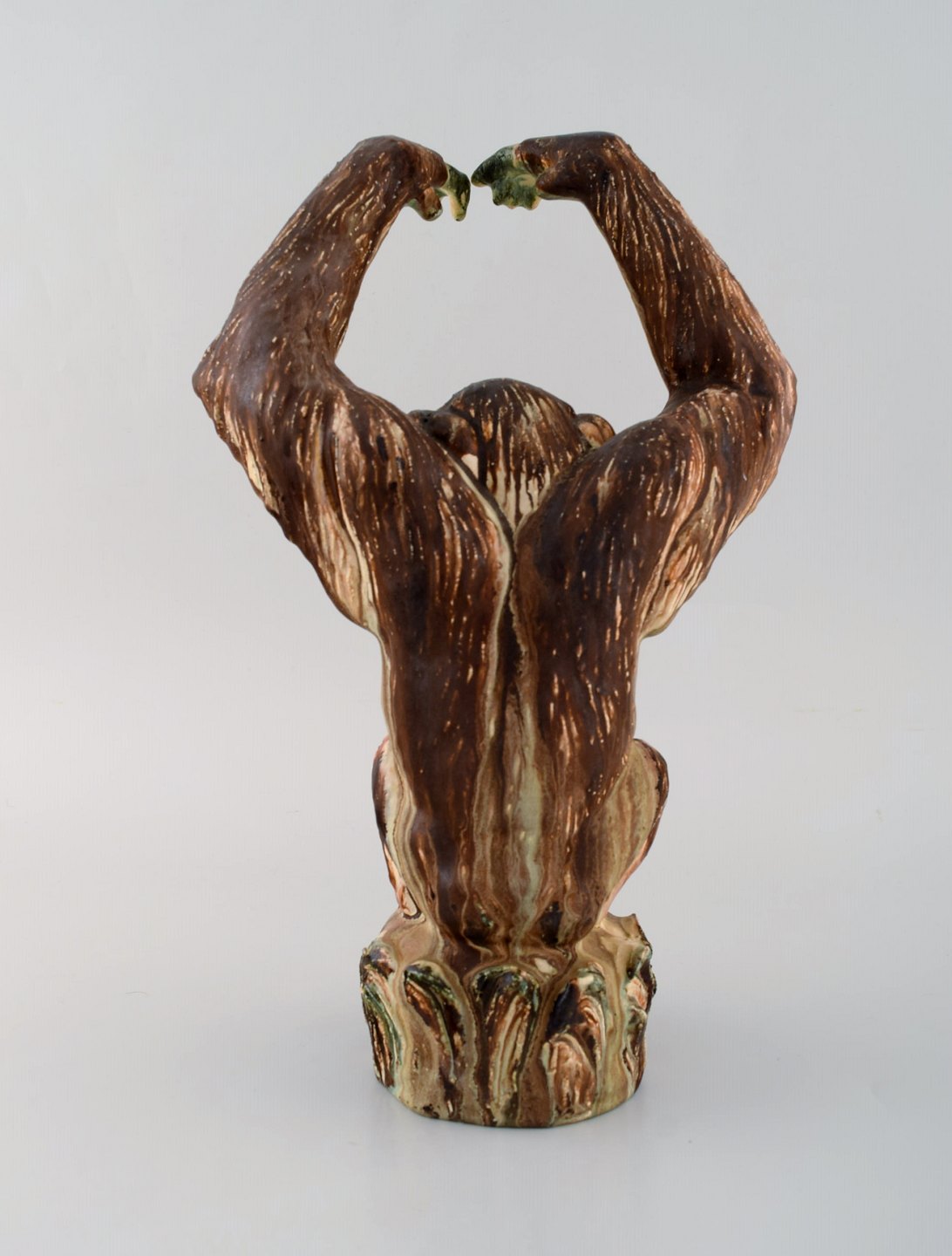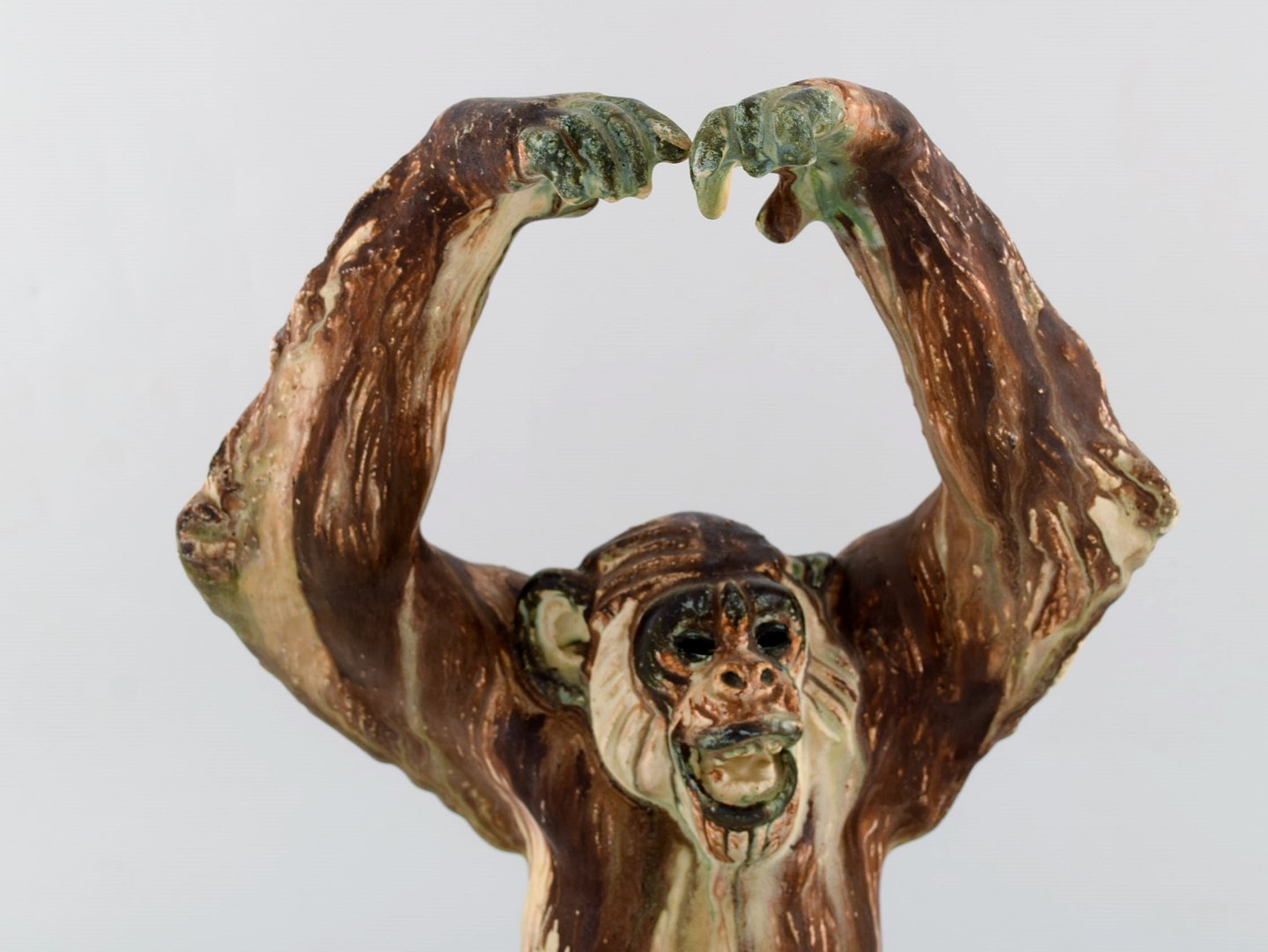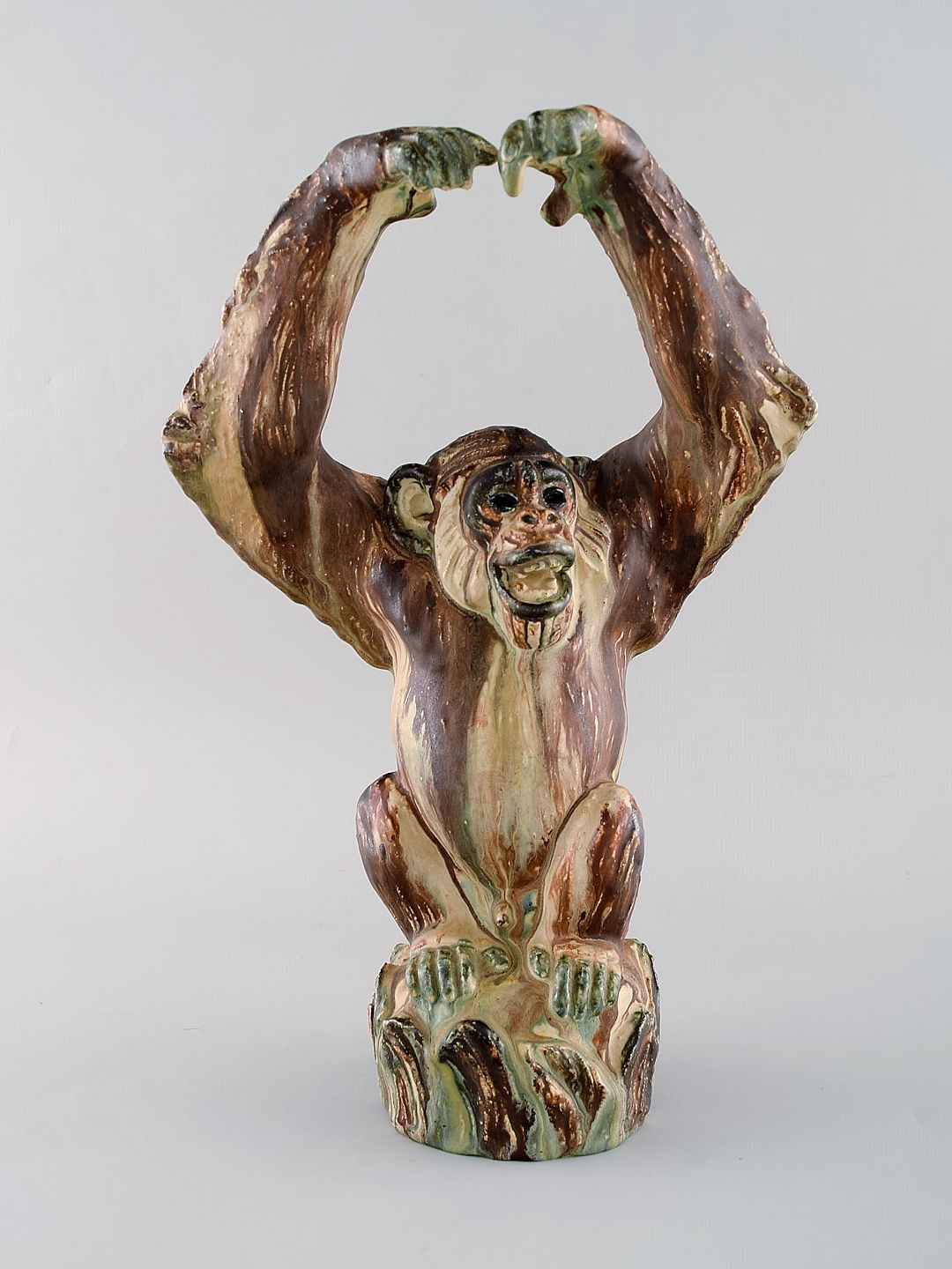 Arne Ingdam (1922-2002), Danmark. Stor chimpanse i glaseret keramik. Smuk sung glasur. 1960'erne. Måler: 32 x 21 cm. I flot stand. Stemplet.