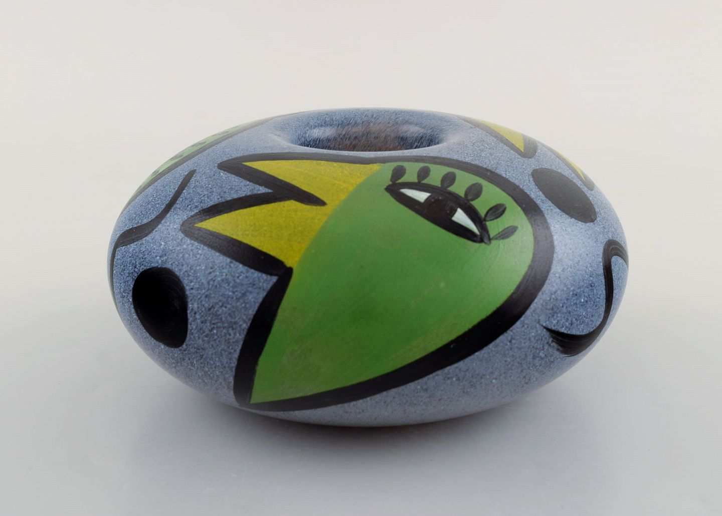 Ulrica Hydman Vallien for Kosta Boda. Large candlestick in mouth-blown art glass with bird motifs. Swedish design, 1980's. Measures: 17 x 8 cm. In very good condition. Signed.