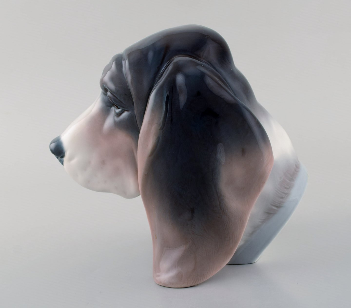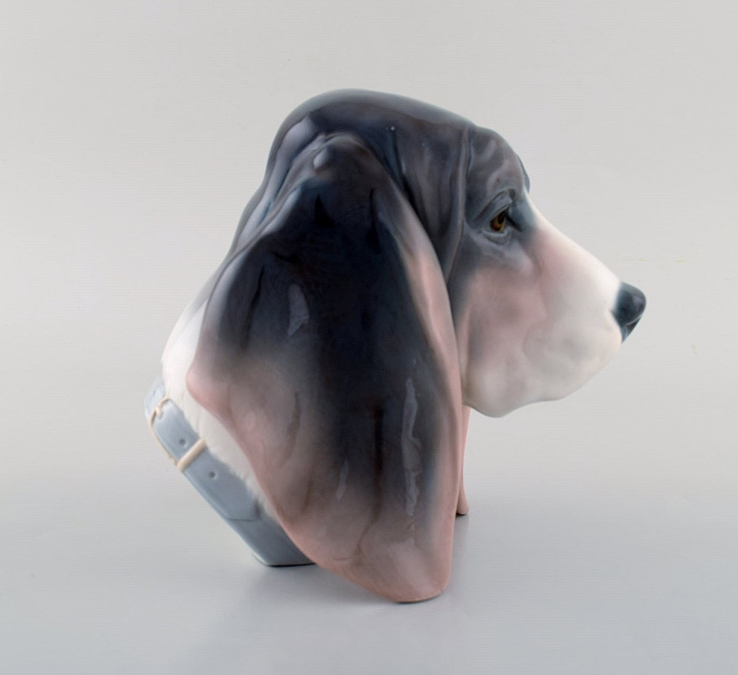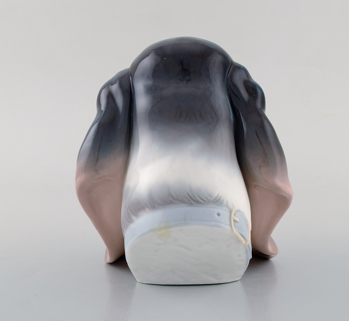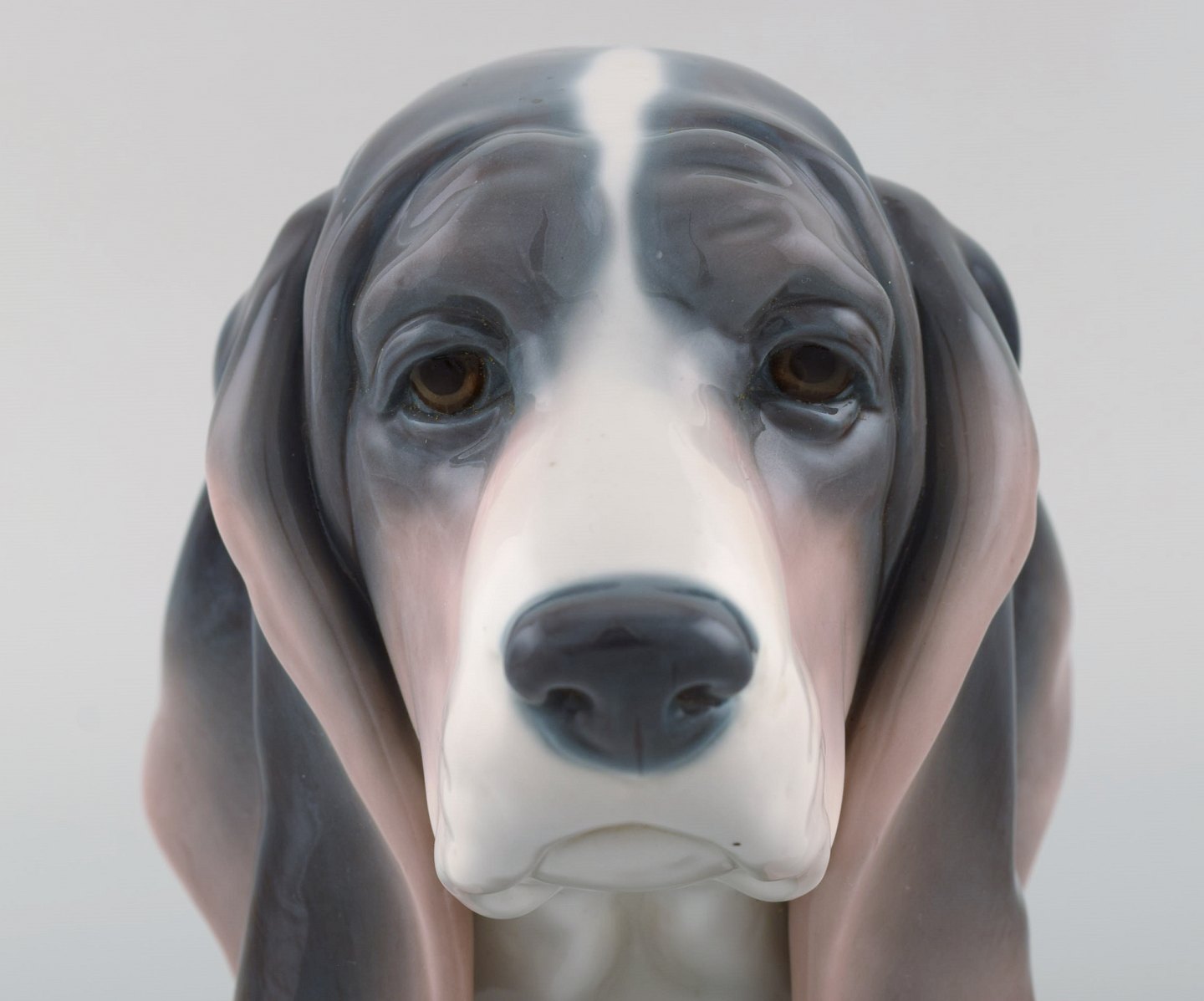 Lladro, Spanien. Figur i glaseret porcelæn. Bassethund. 1980'erne. Måler: 14,5 x 13 cm. I flot stand. Stemplet.