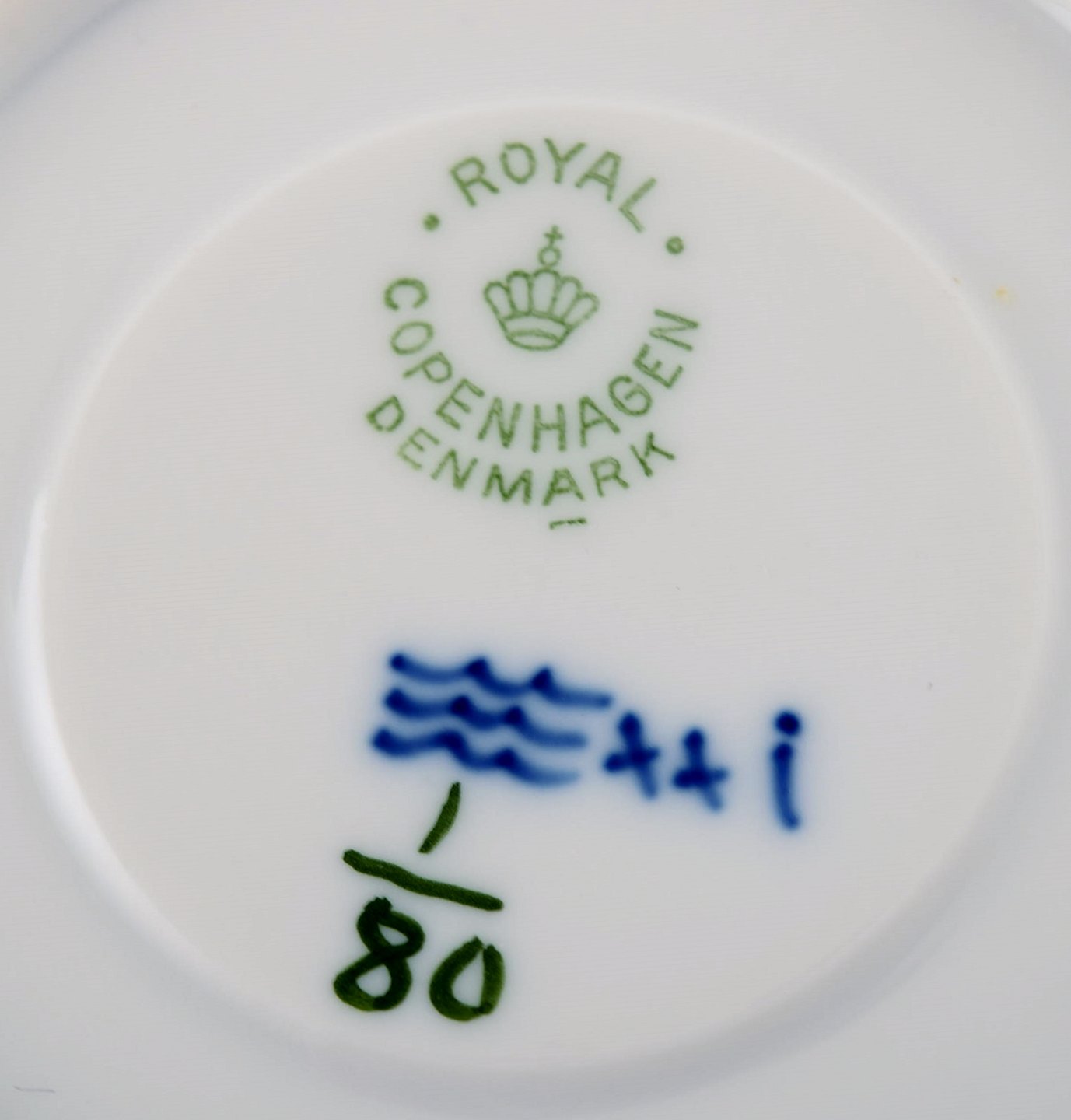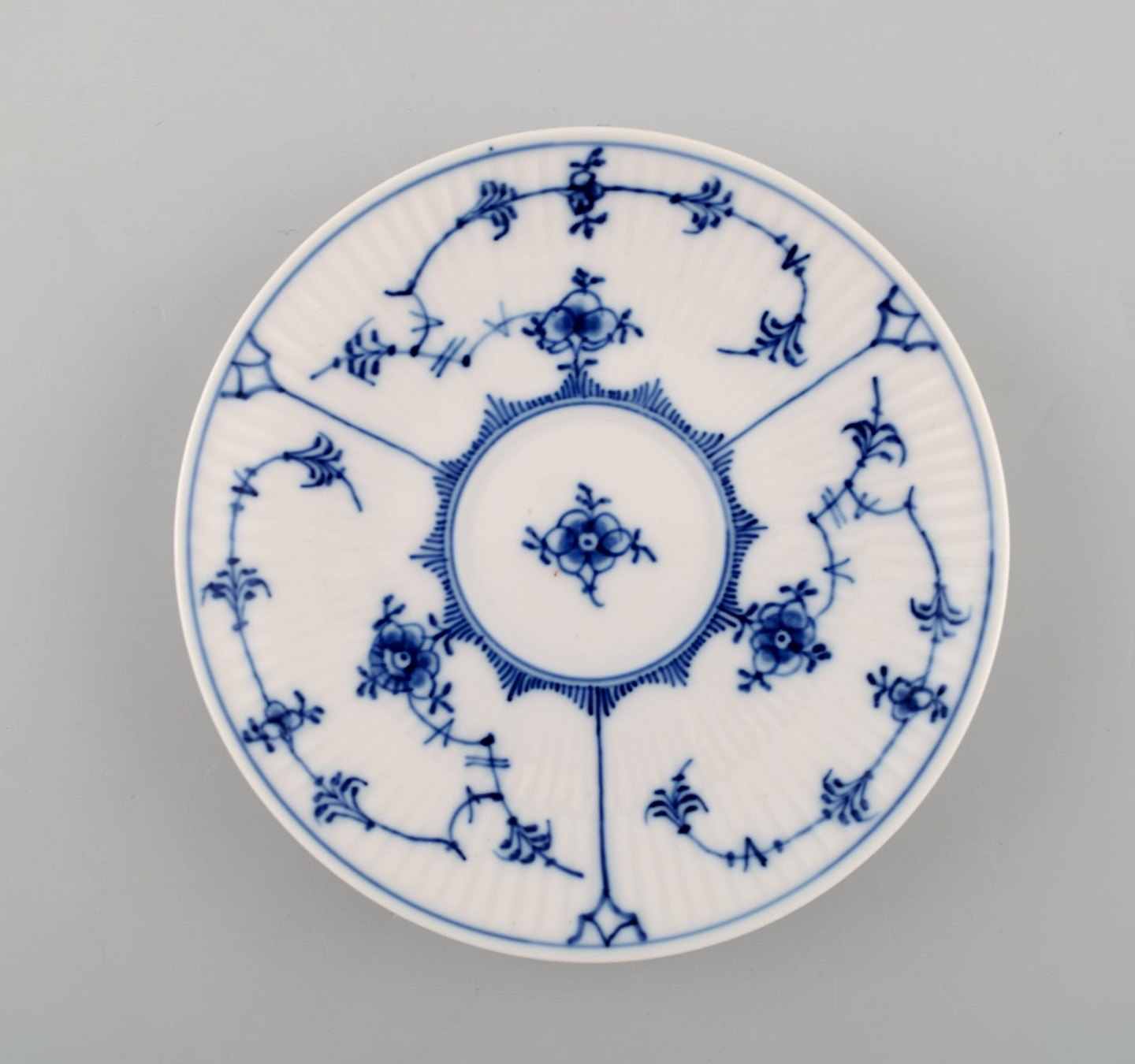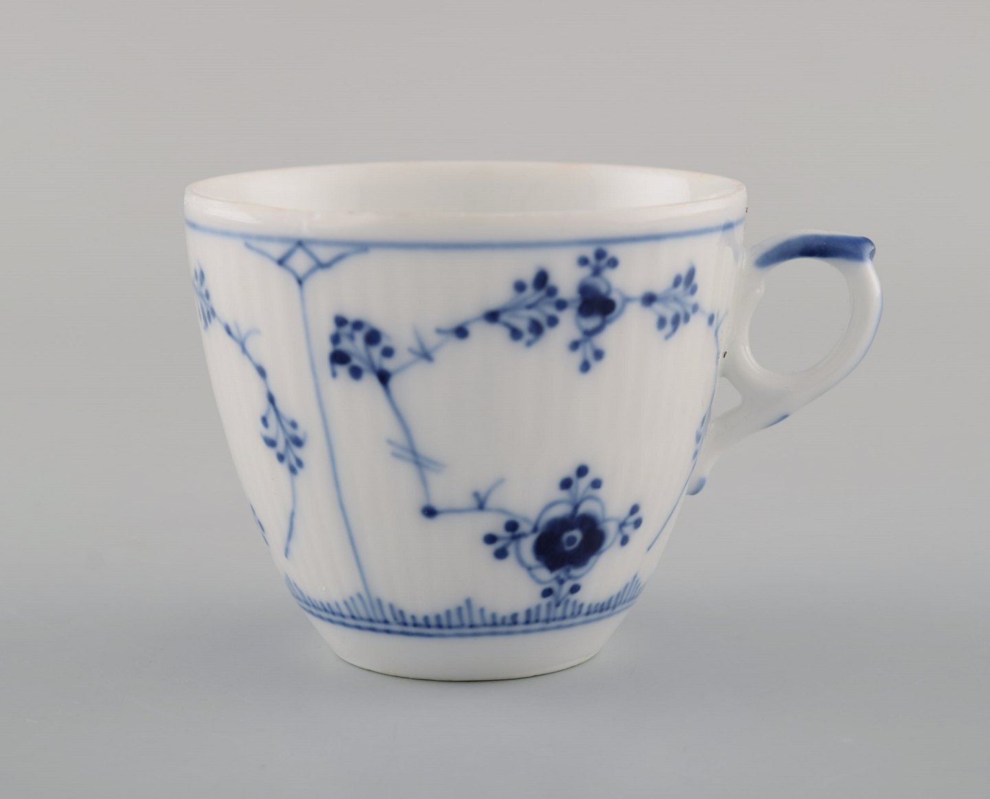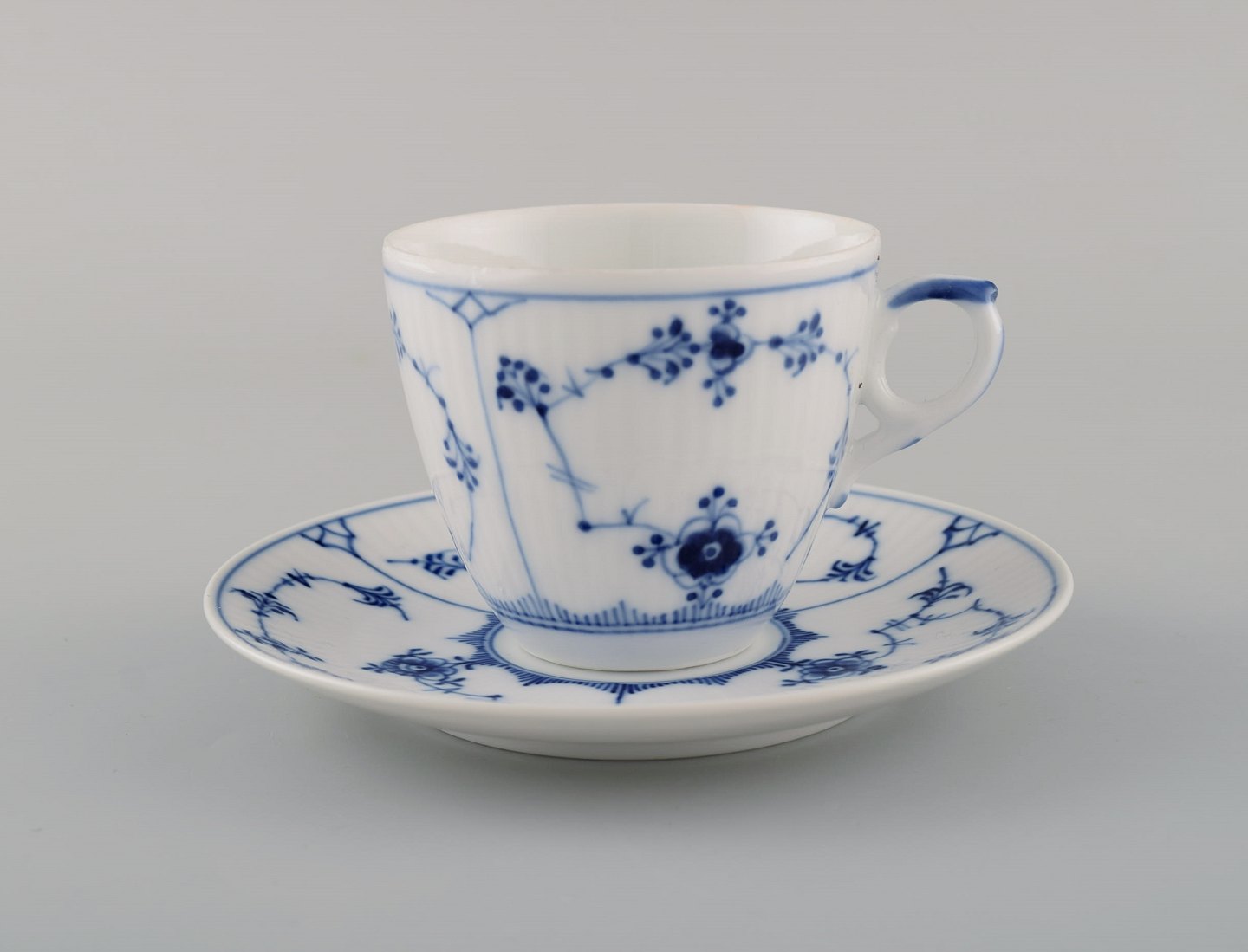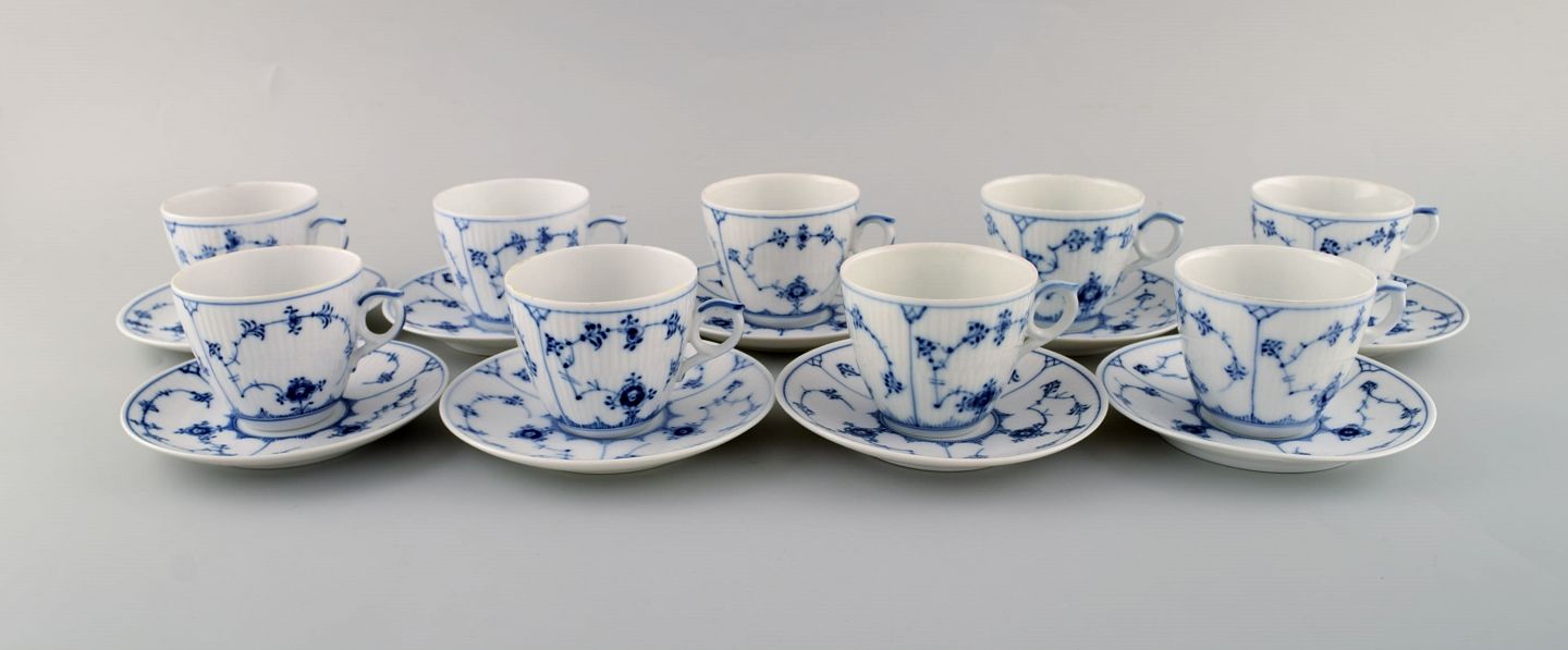 Royal Copenhagen. Sæt på ni Musselmalet riflet kaffekop med underkop # 1/80. I perfekt stand. 1. Sortering. Stemplet. Koppen måler: 7 x 6 cm. Underkoppen måler: 12,2 cm.