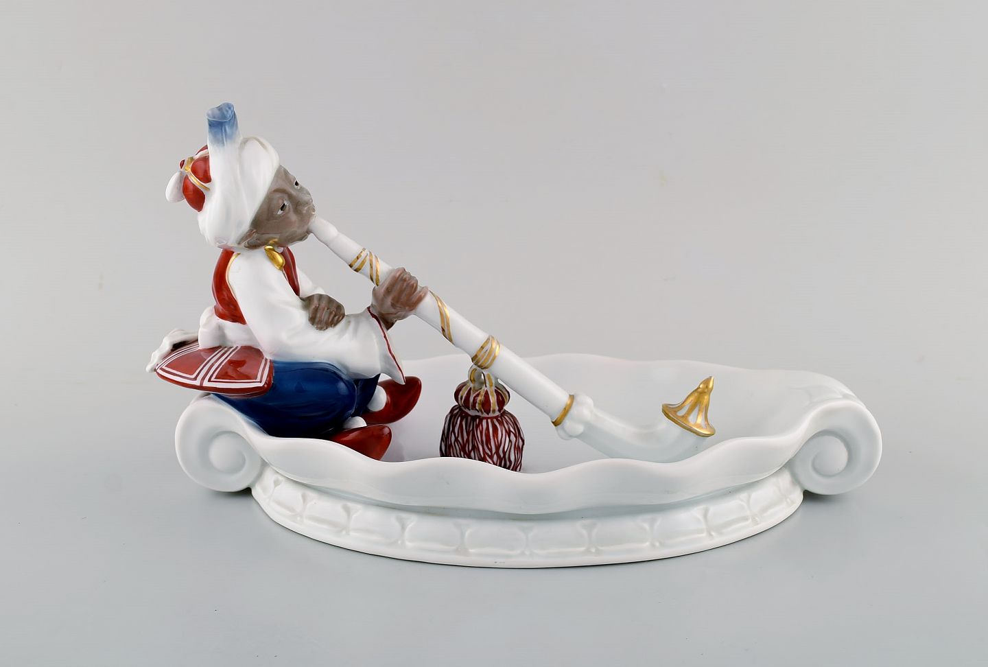 Karl Himmelstoss (1872-1967) for Rosenthal. Stor skål i håndmalet porcelæn. Ottoman med turban og vandpibe. Ca. 1920. Måler: 29 x 16,5 cm. I flot stand. Stemplet.