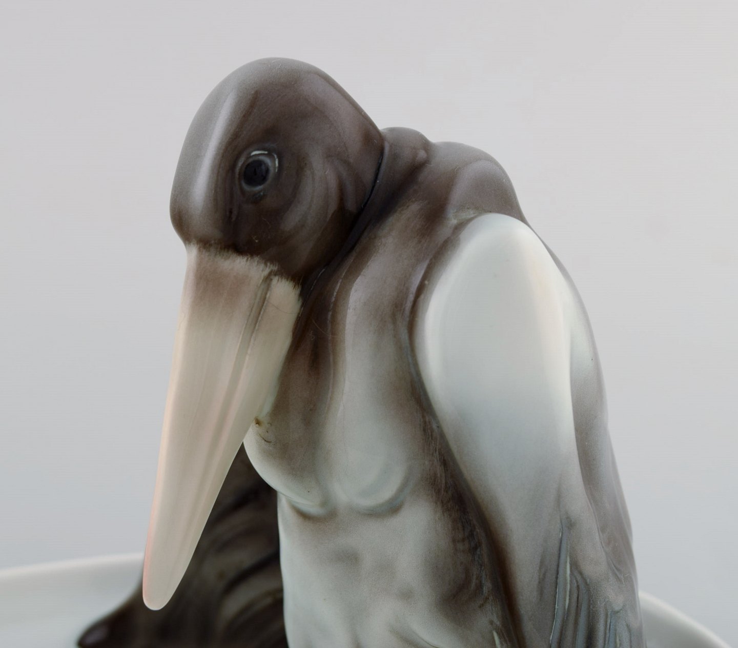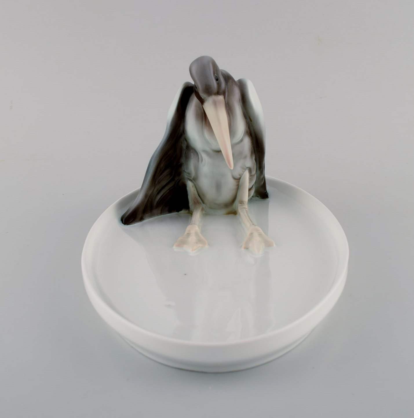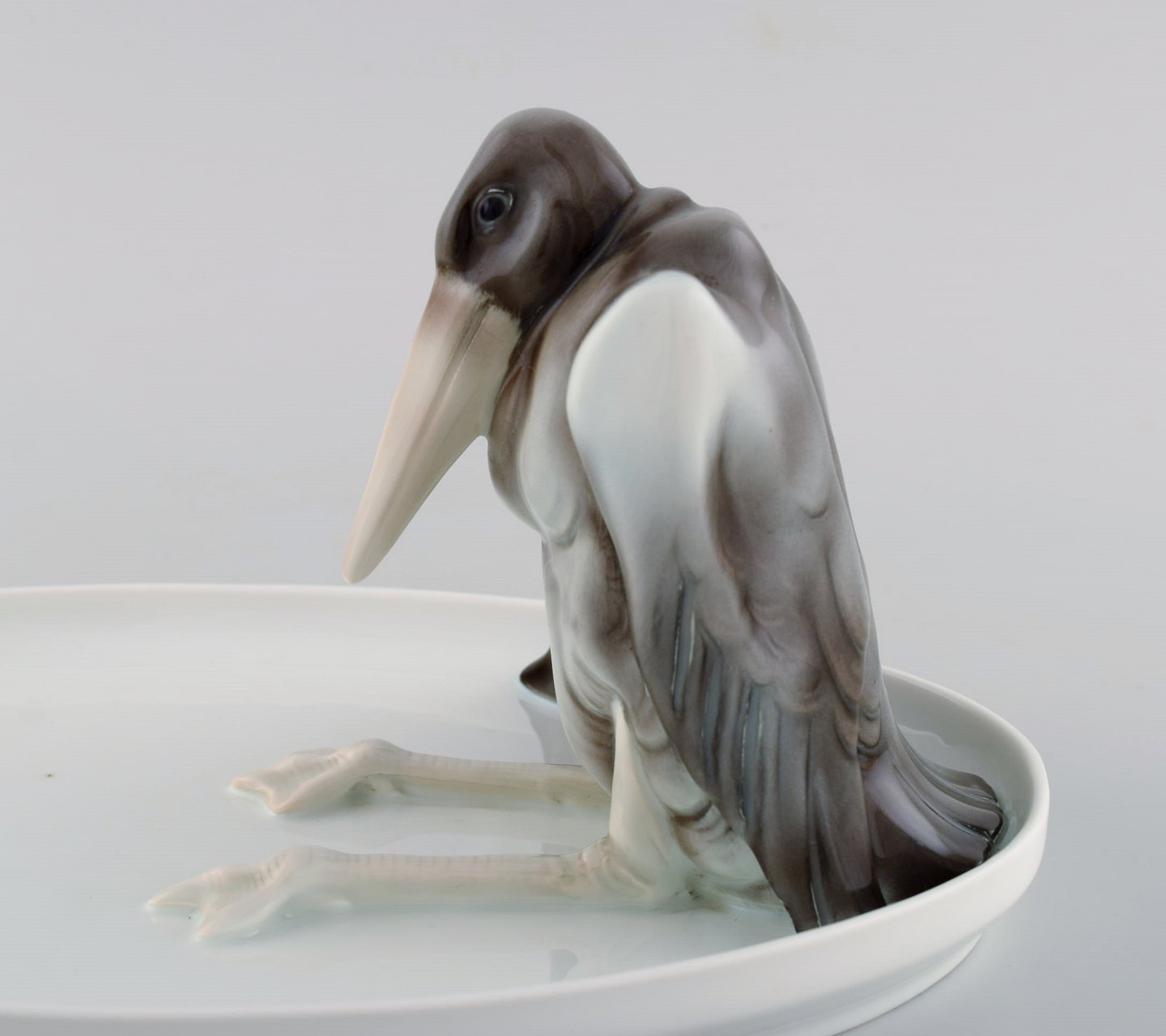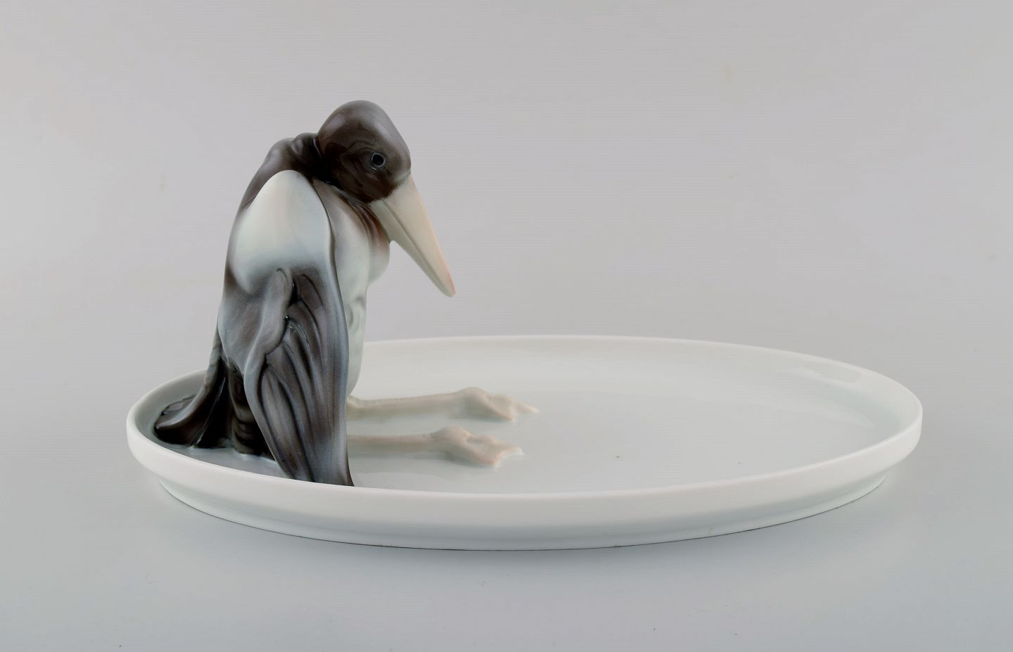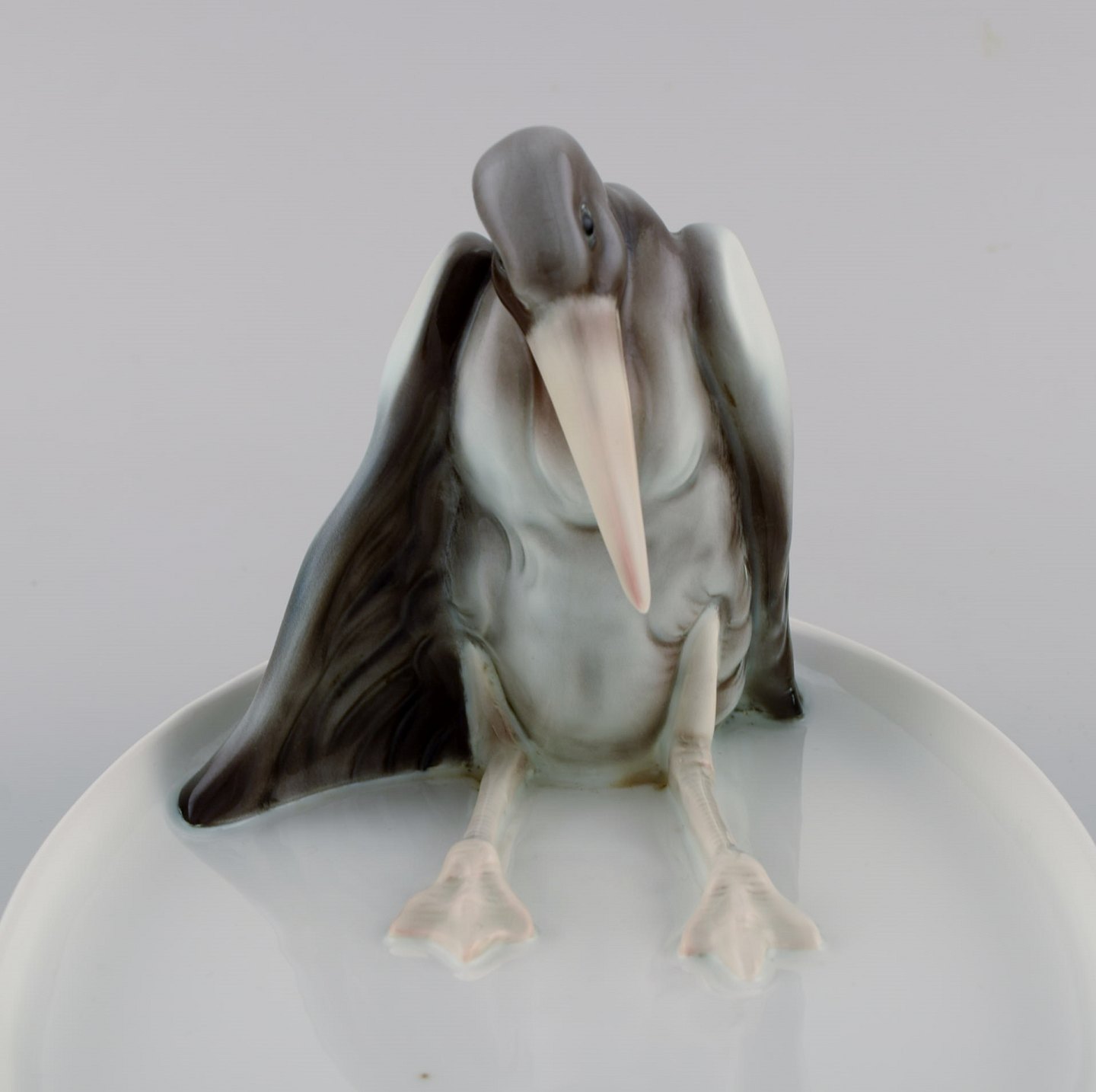 Josef fischer for Rosenthal. Art nouveau visitkortholder / skål i håndmalet porcelæn med marabu. Ca. 1910. Måler: 27,5 x 13,5 cm. I flot stand. Stemplet.