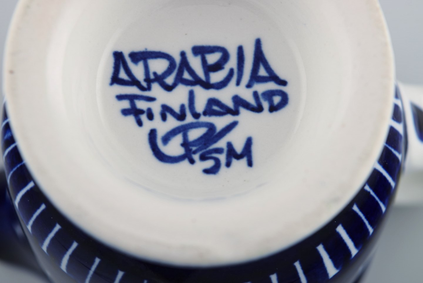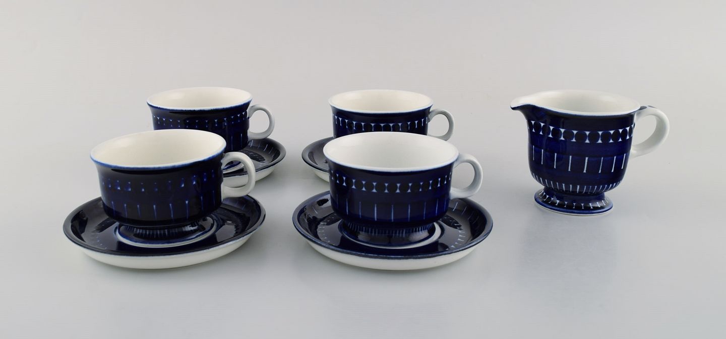Ulla Procope for Arabia. "Valencia" kaffeservice i håndmalet porcelæn. Fire kaffekopper og flødekande. 1960'erne.