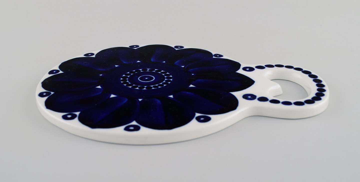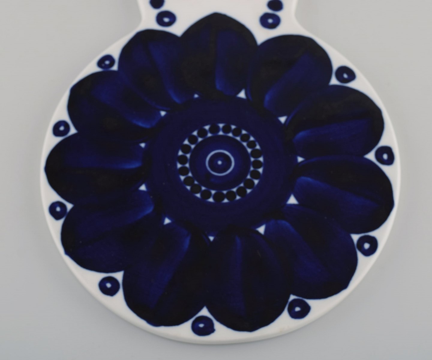 Ulla Procope for Arabia. Valencia porcelain serving plate decorated with blue flower. 1960 / 70's. Measures: 22 x 16.5 cm. In very good condition. Signed.
