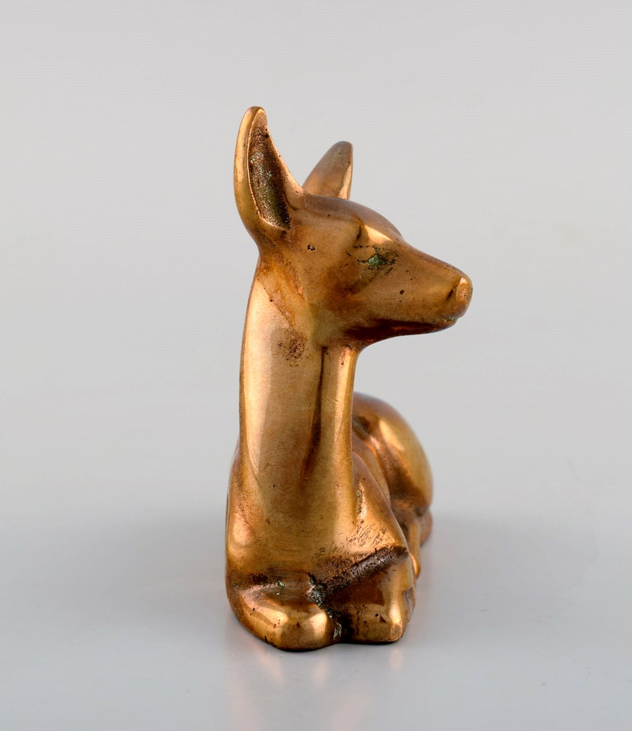 Peder Hald f. Vrigsted 1892, d. 1987: Liggende hjort. Bronze. Art deco. Måler: 9 cm. x 9 cm. I perfekt stand, flot patina.