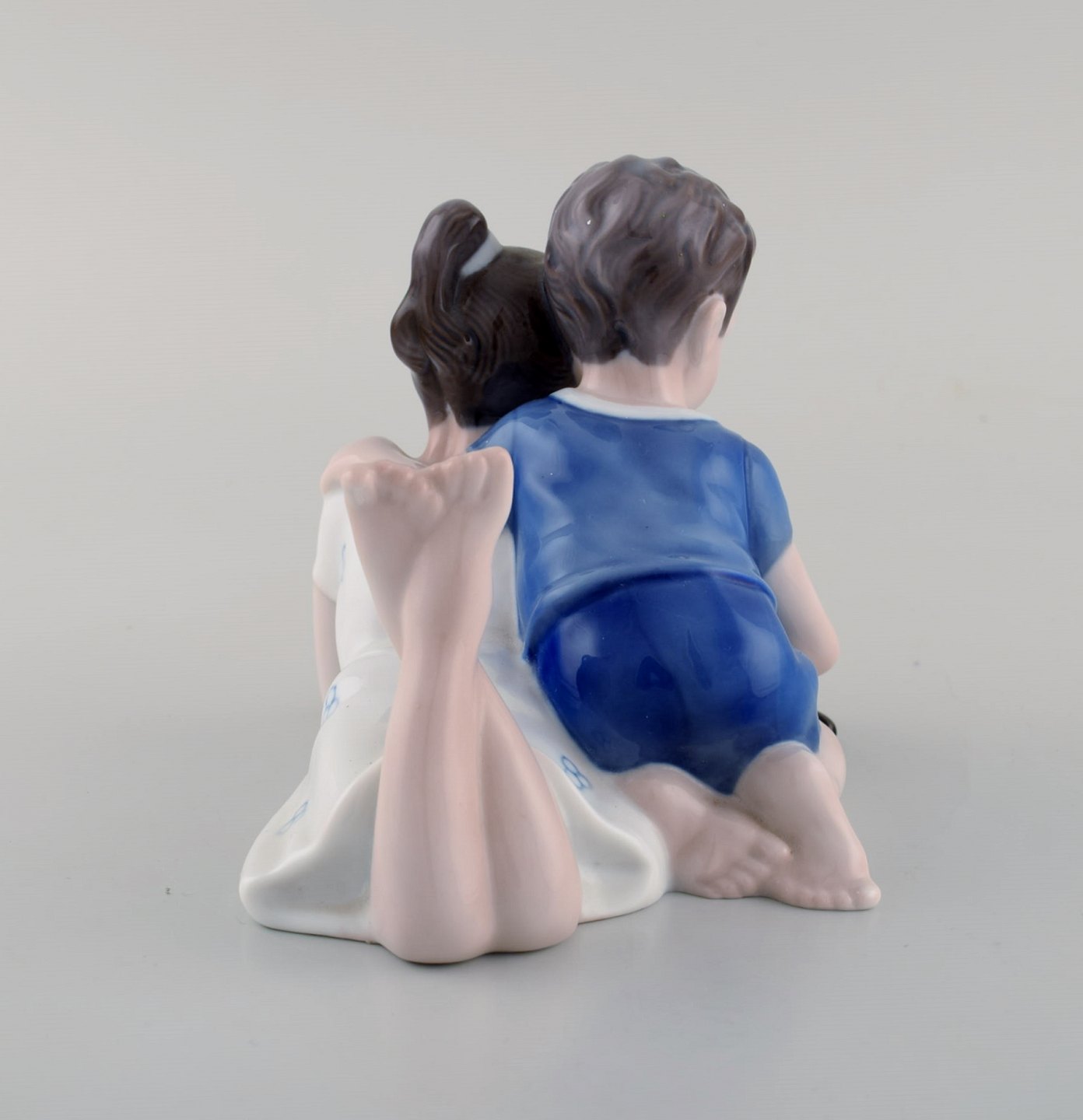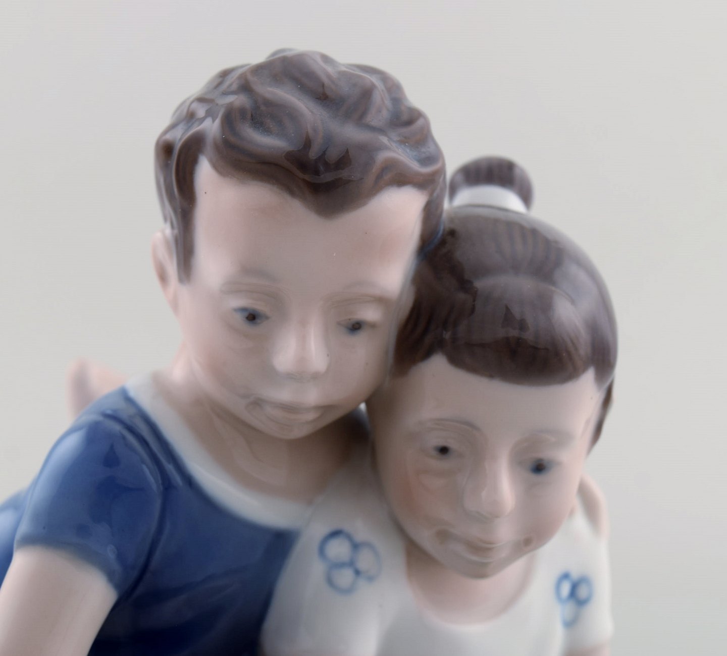 Lyngby Porcelæn, Danmark. Figur i porcelæn. Søskendepar med skildpadde. 1940'erne.