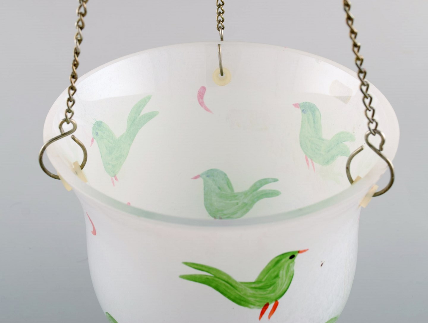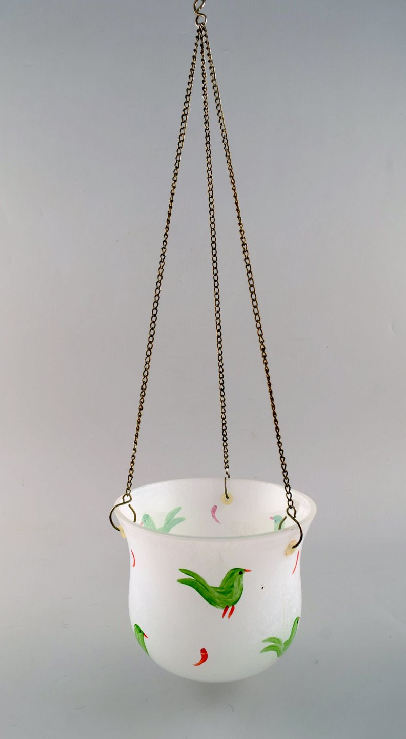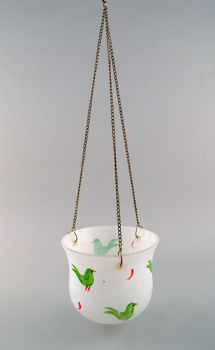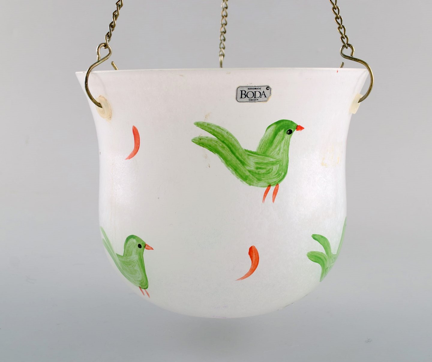 Ulrica Hydman Vallien for Kosta Boda. Hængende urtepotte i kunstglas med fuglemotiver. 1980/90'erne. Måler: 15 x 13 cm. I flot stand. Mærkat