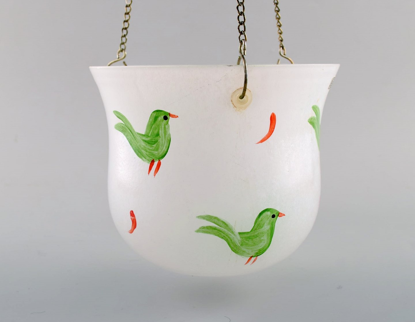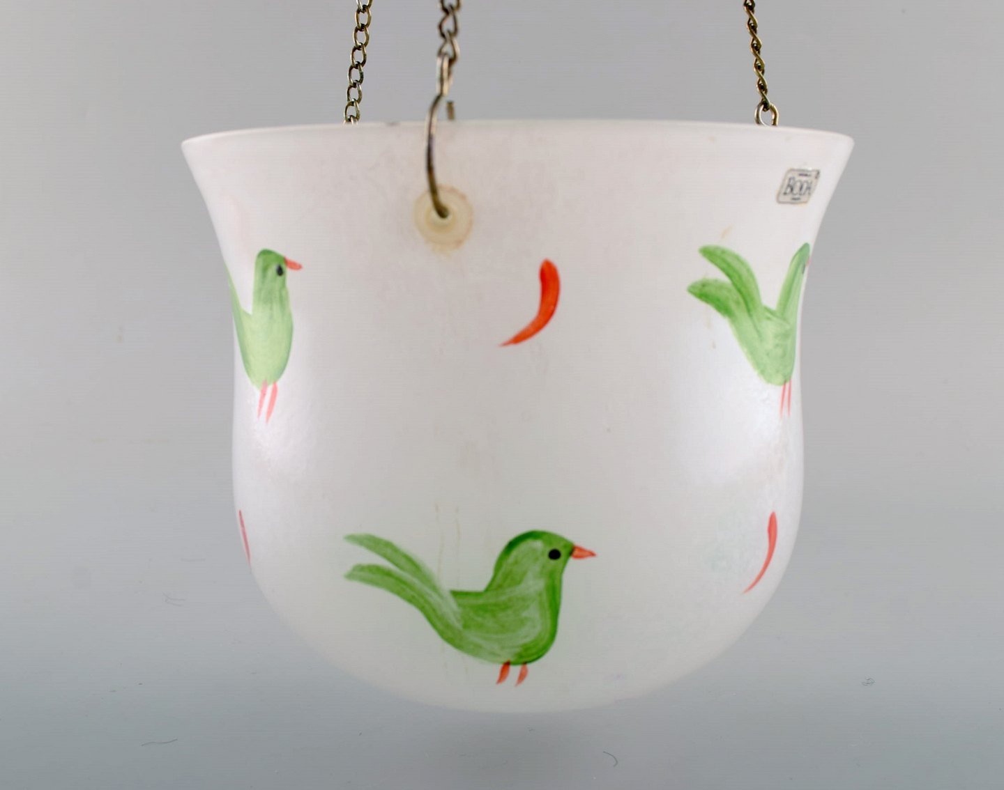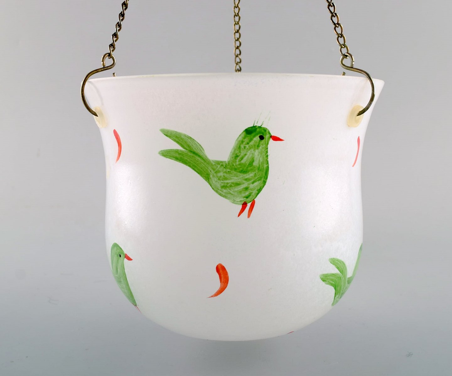 Ulrica Hydman Vallien for Kosta Boda. Hængende urtepotte i kunstglas med fuglemotiver. 1980/90'erne. Måler: 15 x 13 cm. I flot stand. Mærkat