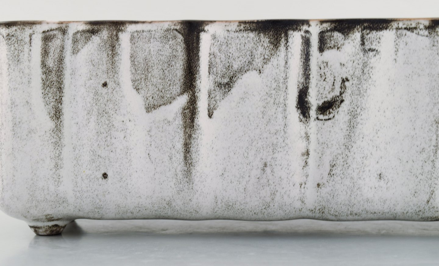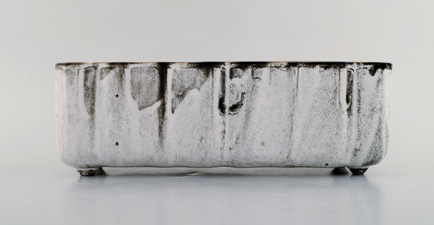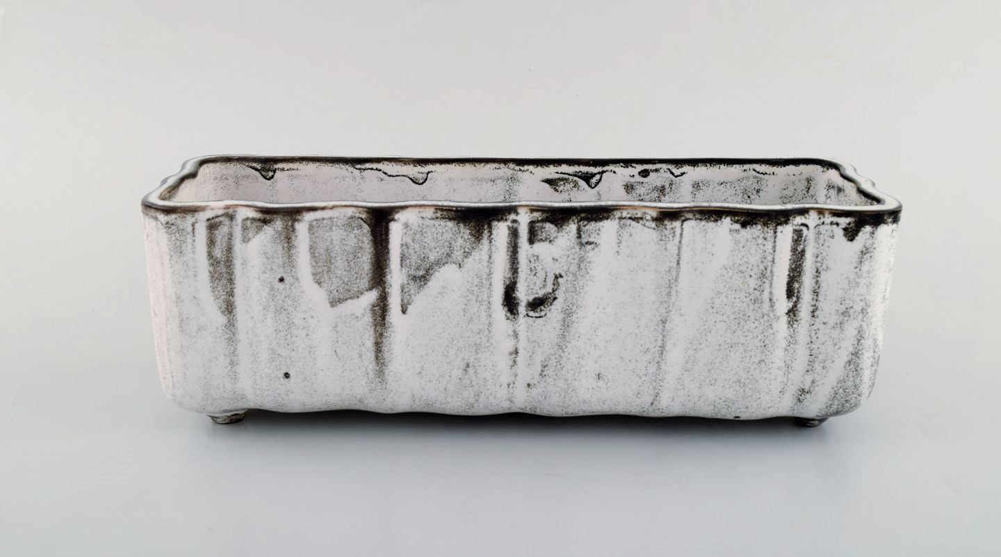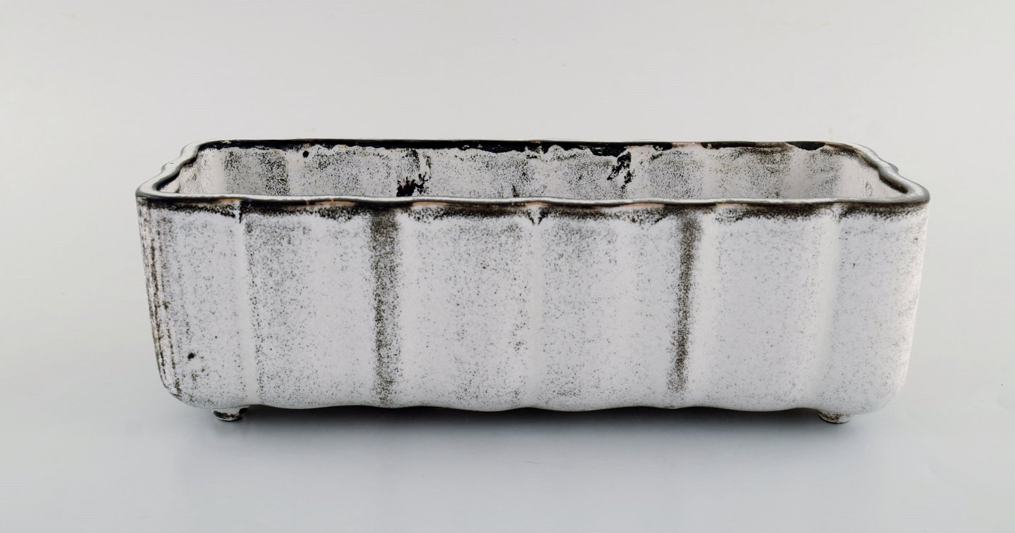 Kähler, Denmark. Jardiniere / flowerpot holder in glazed ceramics. 1930's. Designed by Svend Hammershøi. Double glaze in black and gray. Measures: 28 x 10 x 9 cm. Stamped. In perfect condition.