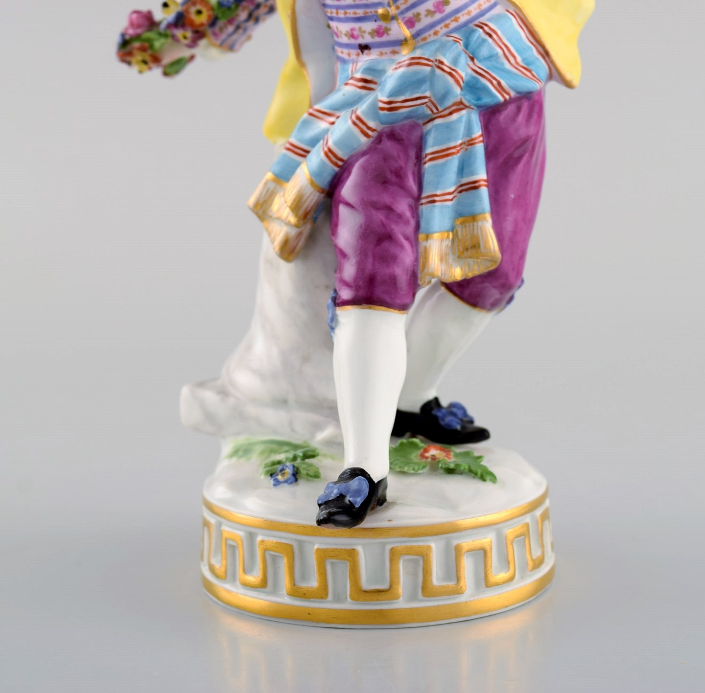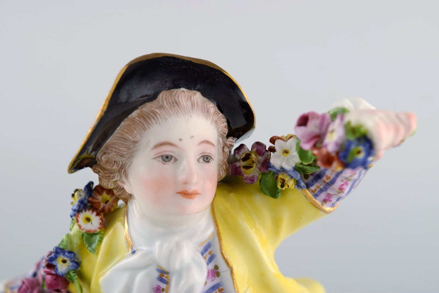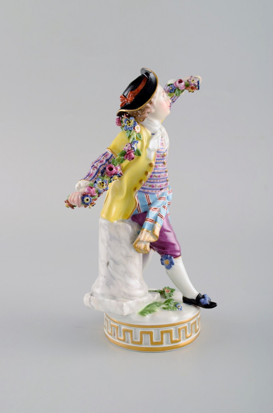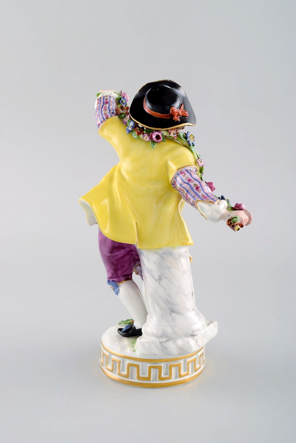 Antique Meissen figurine in hand-painted porcelain. Boy with flowers. Early 20th century. Measures: 17 x 10.5 cm. In very good condition. Stamped.