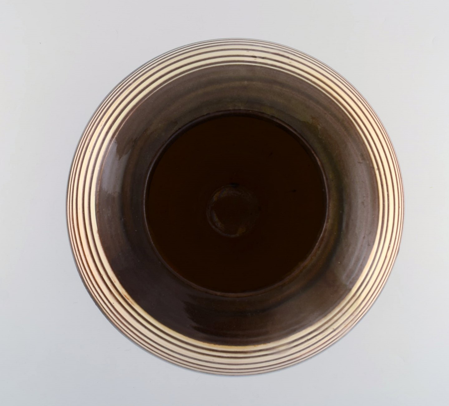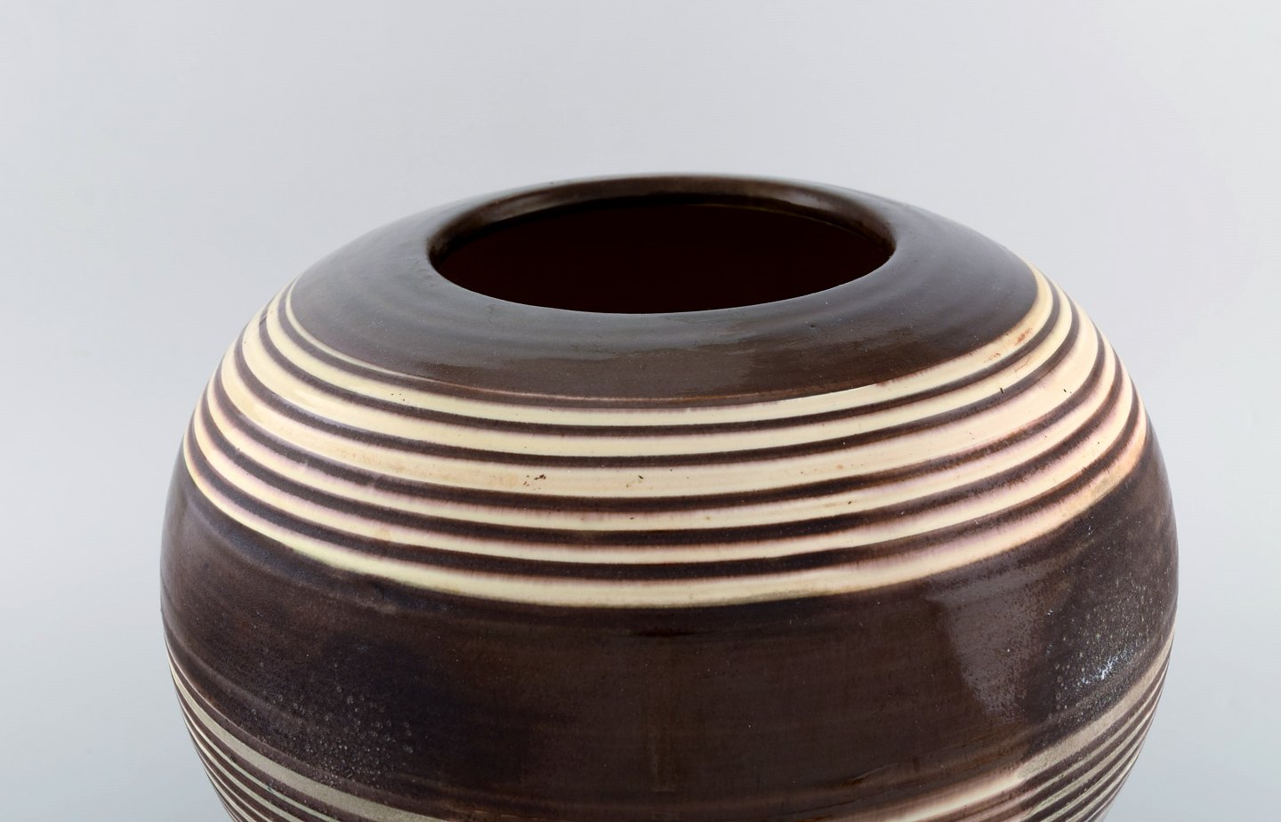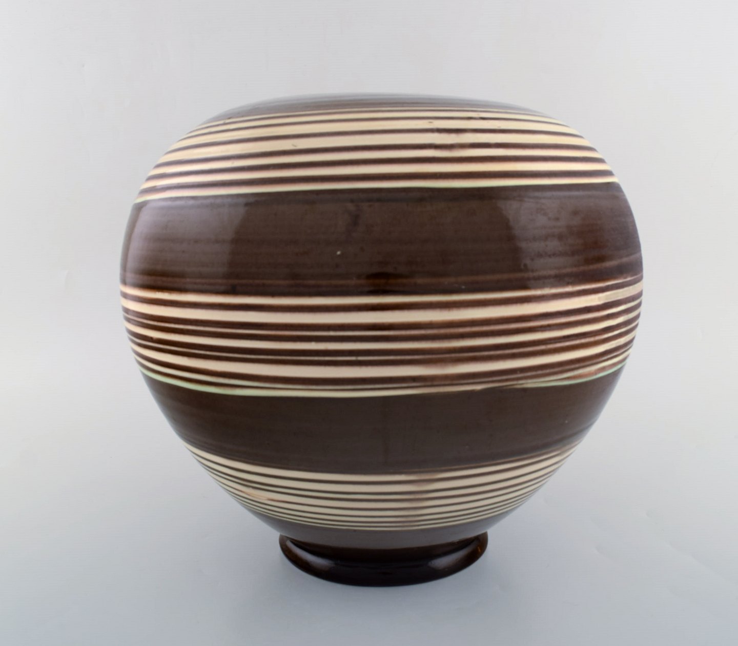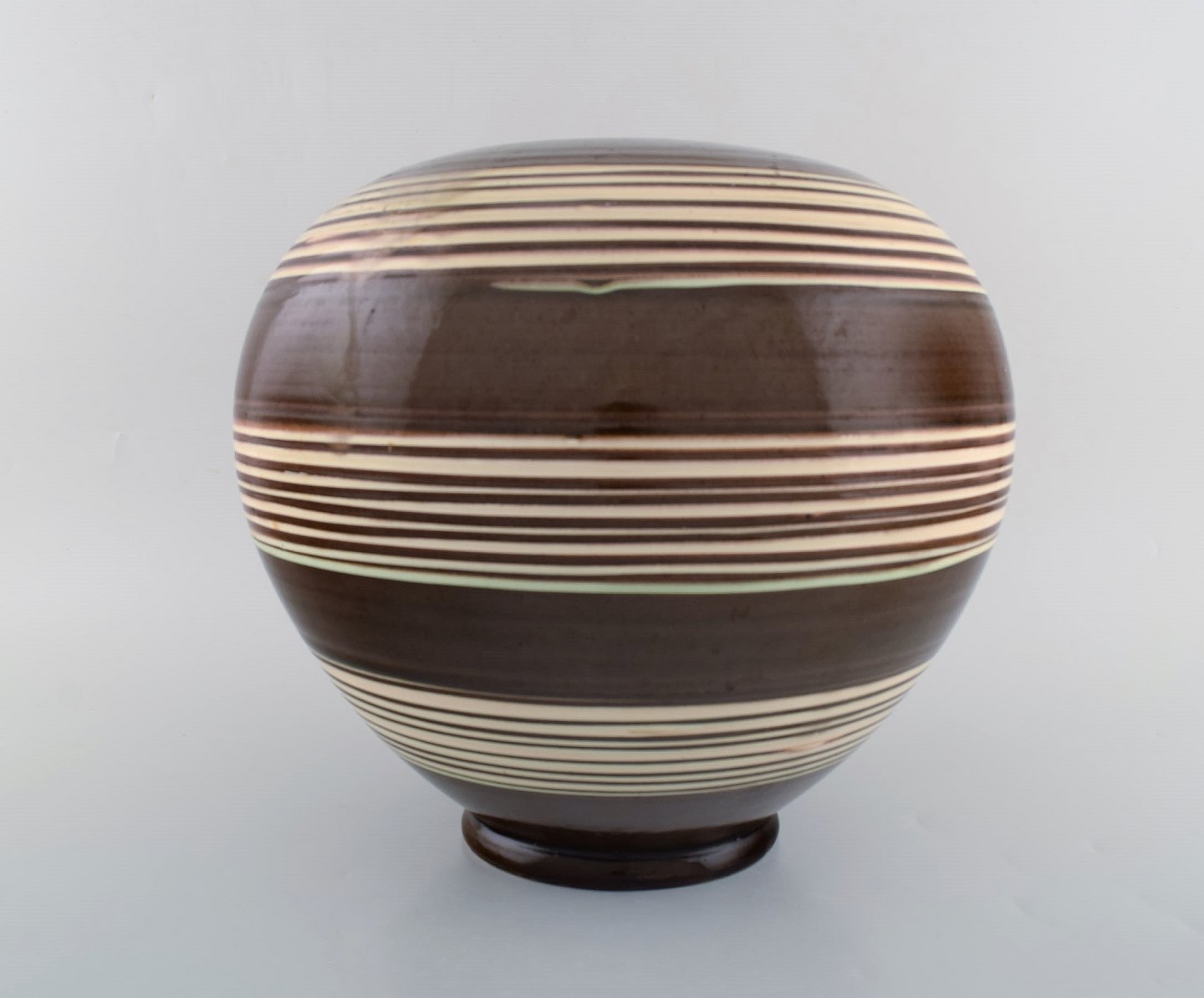 Kähler, HAK. Large glazed stoneware vase in modern striped design. 1930 / 40's. Stamped. Measures: 31 x 27 cm. In good condition, burning error.