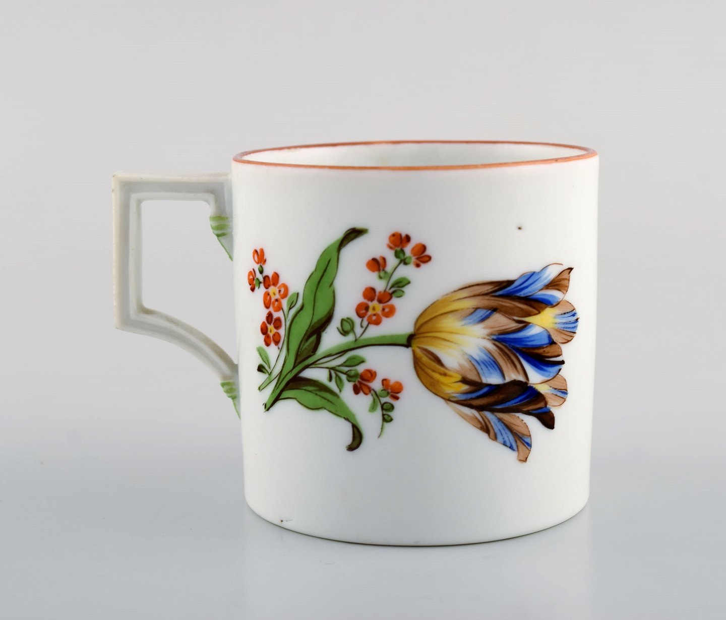 Antik meissen chokoladekop med underkop i håndmalet porcelæn dekoreret med blomster. Dateret 1814-15. Måler: 6,5 x 6,5 cm. I flot stand. 1. Sortering. Stemplet.