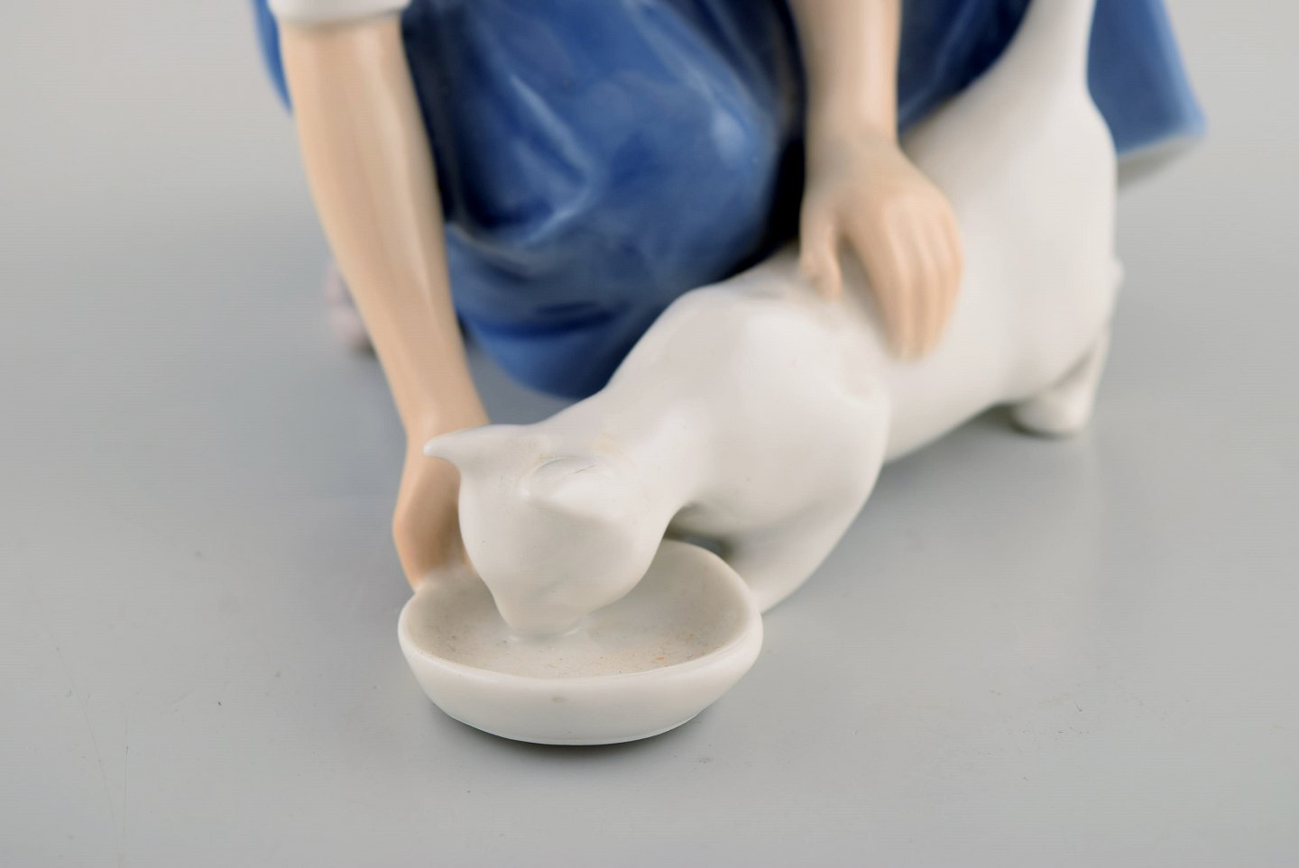 Bing & Grøndahl porcelænsfigur. Pige med kat. 1920/30'erne. Modelnummer: 1745. Måler: 15,5 x 13,5 cm. I flot stand. Stemplet. 1. Sortering.