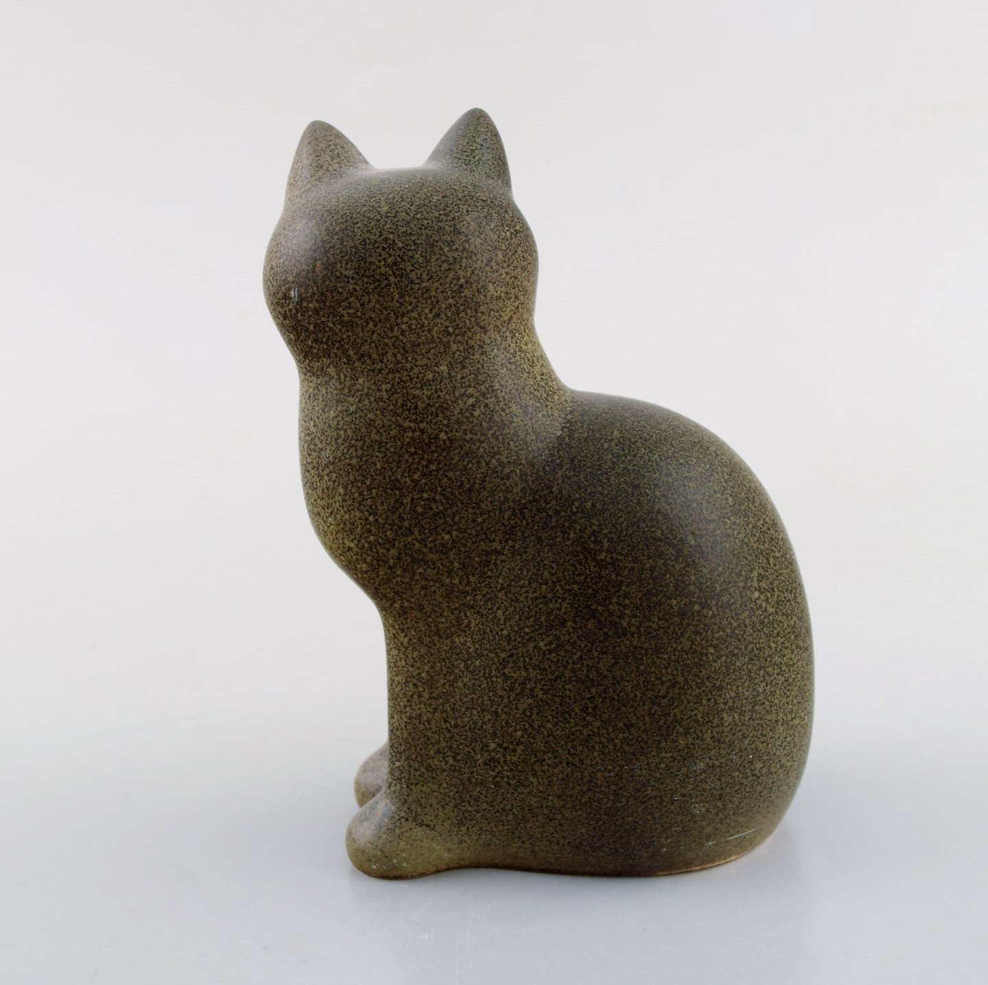 Lisa Larson for K-Studion/Gustavsberg. Kat i glaseret keramik. Sent 1900-tallet. Måler: 15 x 10 cm. I flot stand. Stemplet.