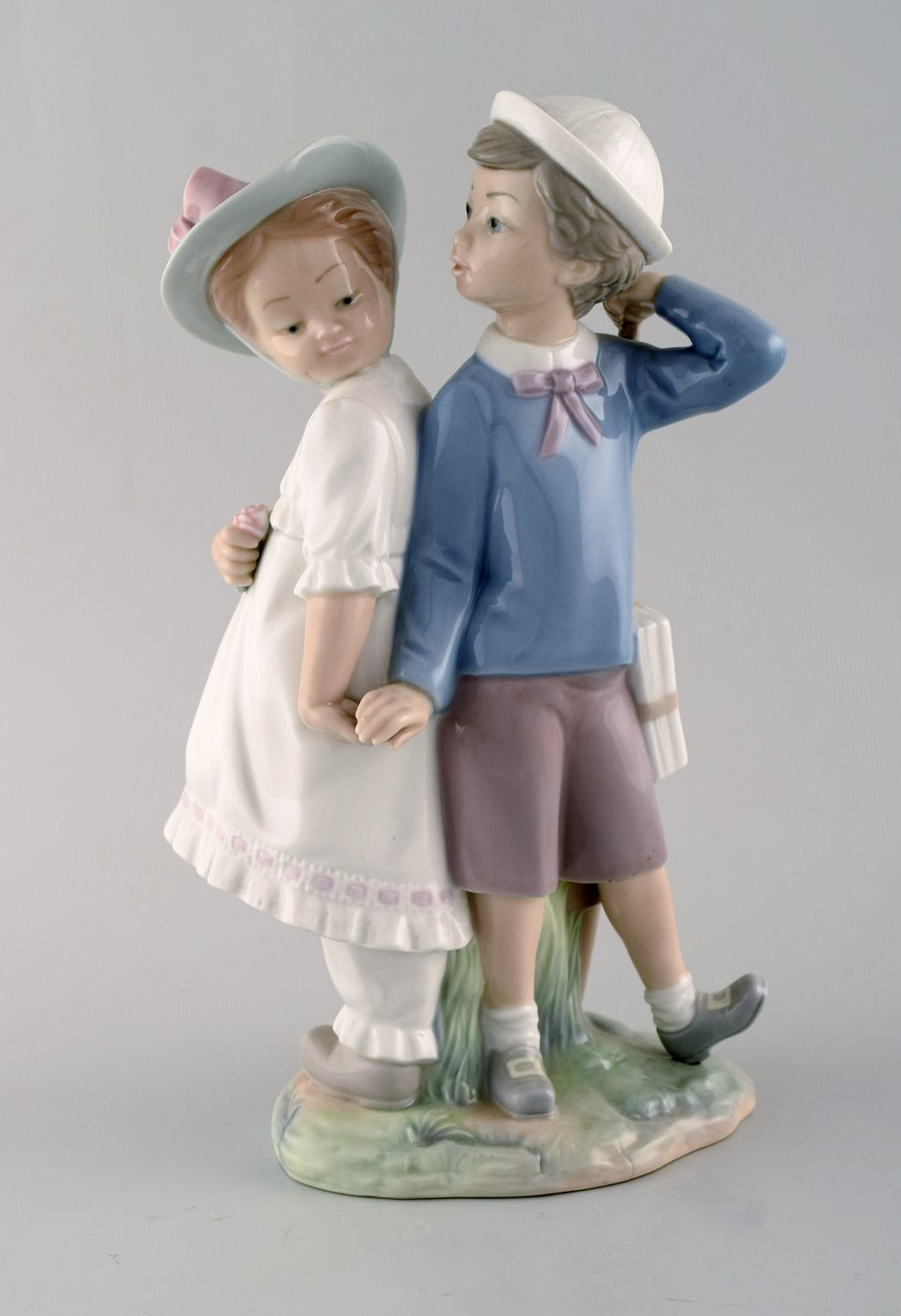 Lladro og Nao, Spanien. Fem porcelænsfigurer af børn. 1980/90'erne. Største måler: 25,5 x 15 cm. I flot stand. Stemplet.