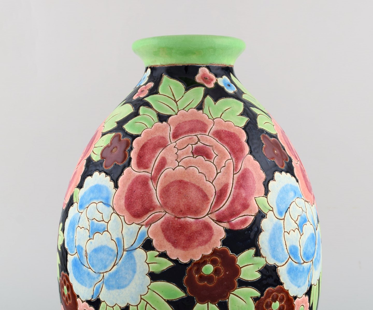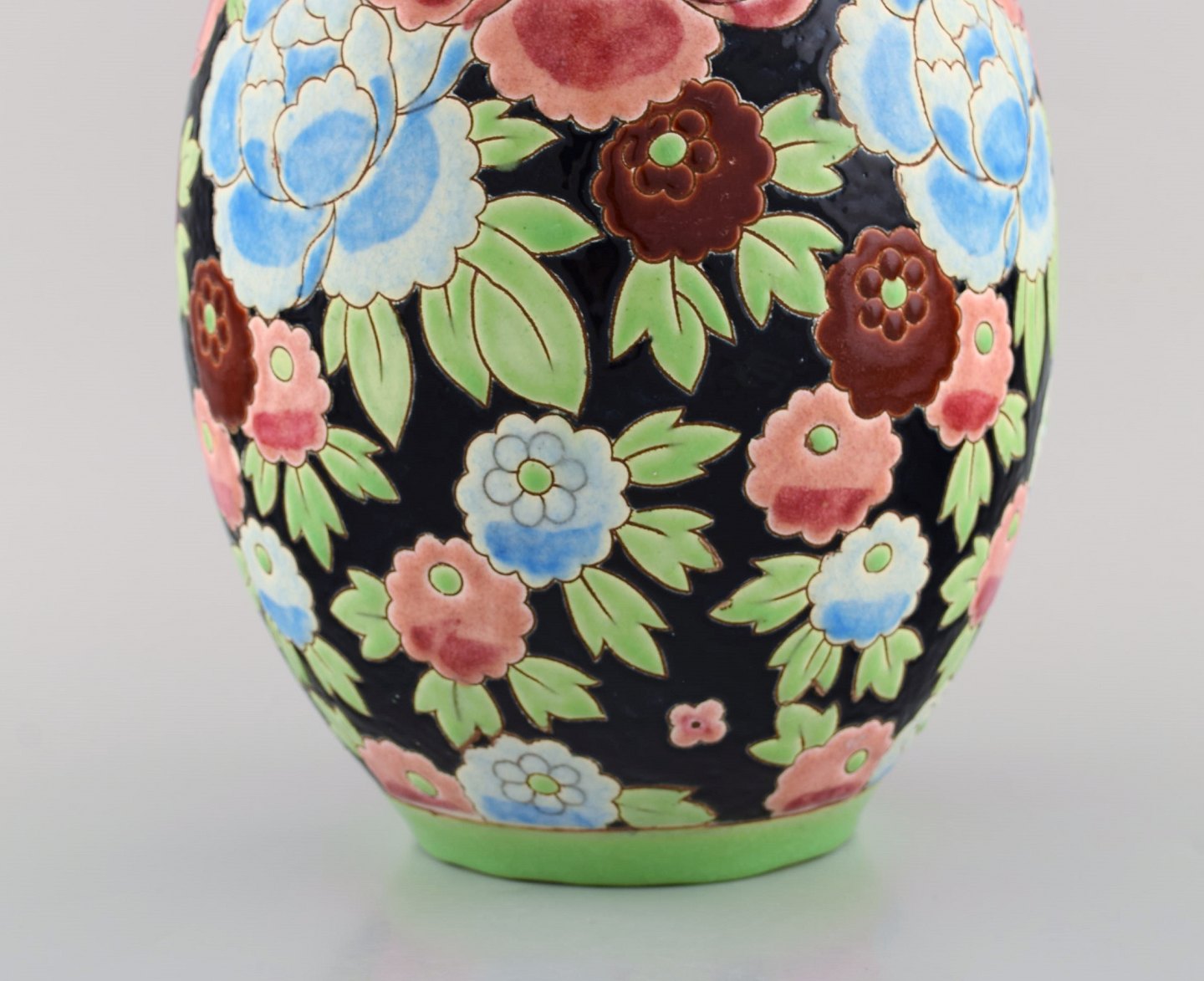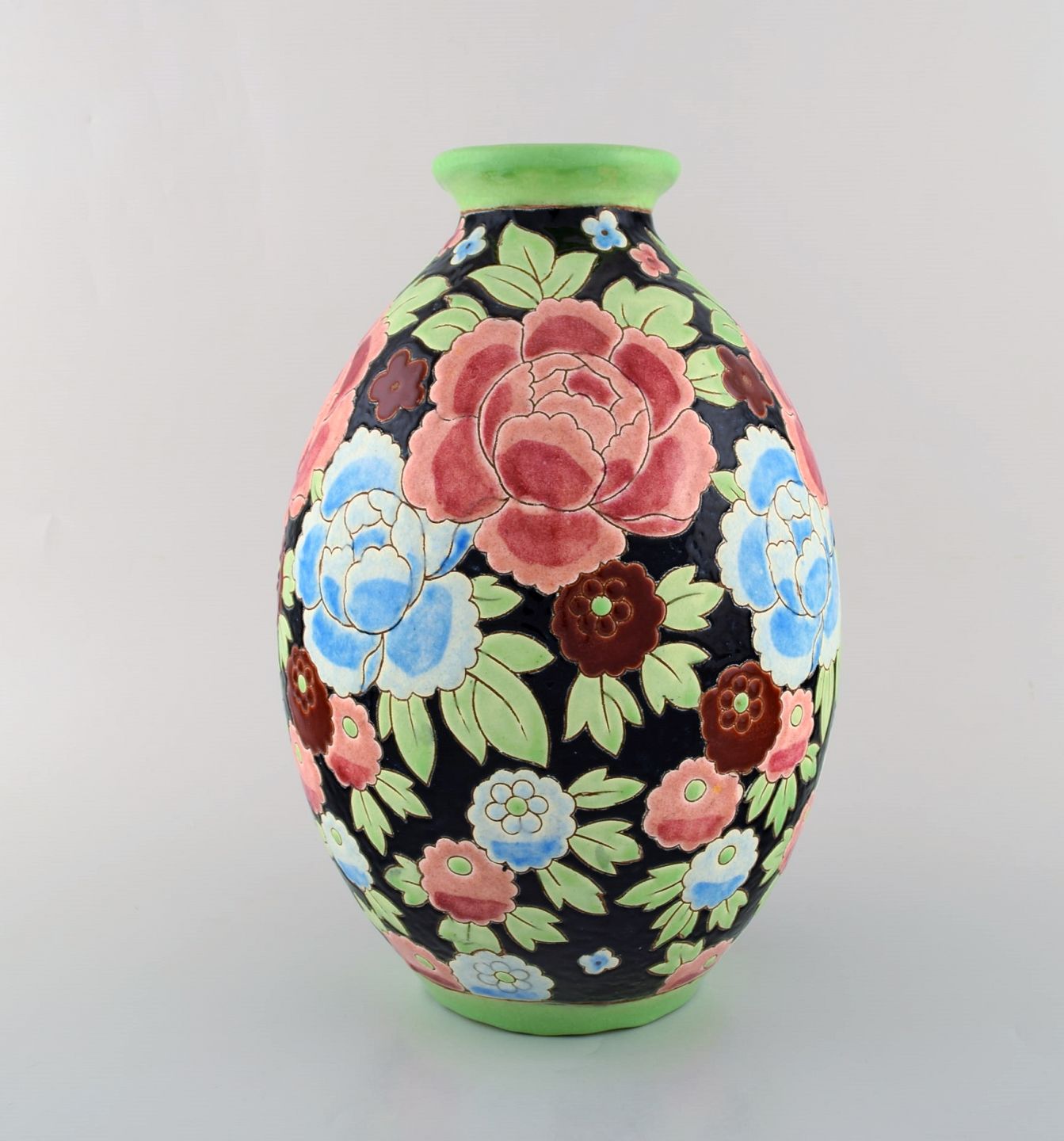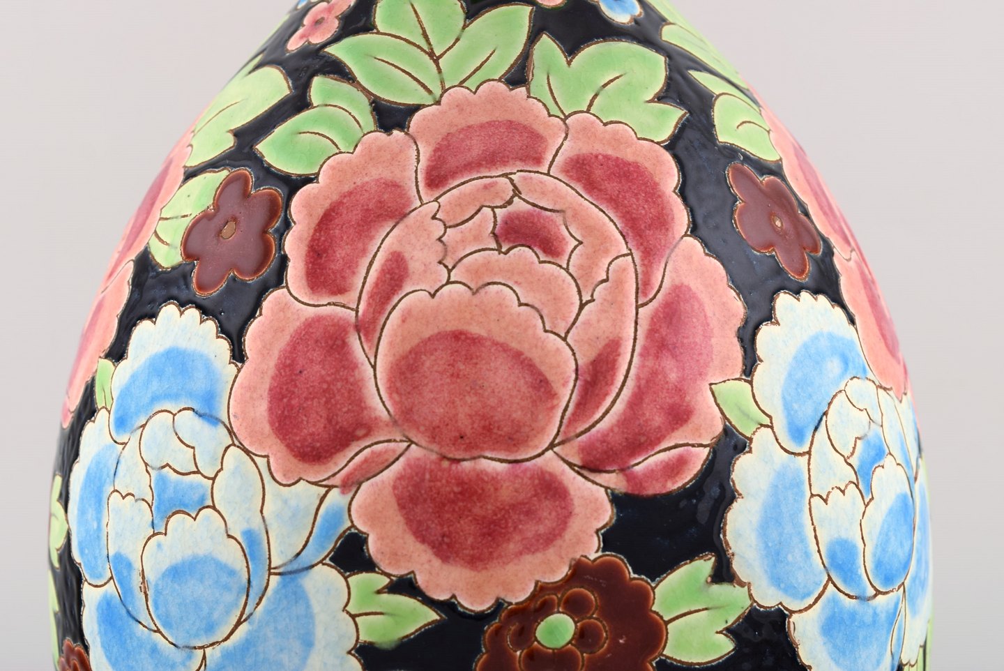 Charles Catteau (1880-1966) for Boch Freres Keramis, Belgium. Large art deco ceramic vase in cloisonné technique. Hand painted with flowers. 1920 / 30's. Measures: 30.5 x 20 cm. In very good condition. Stamped.
