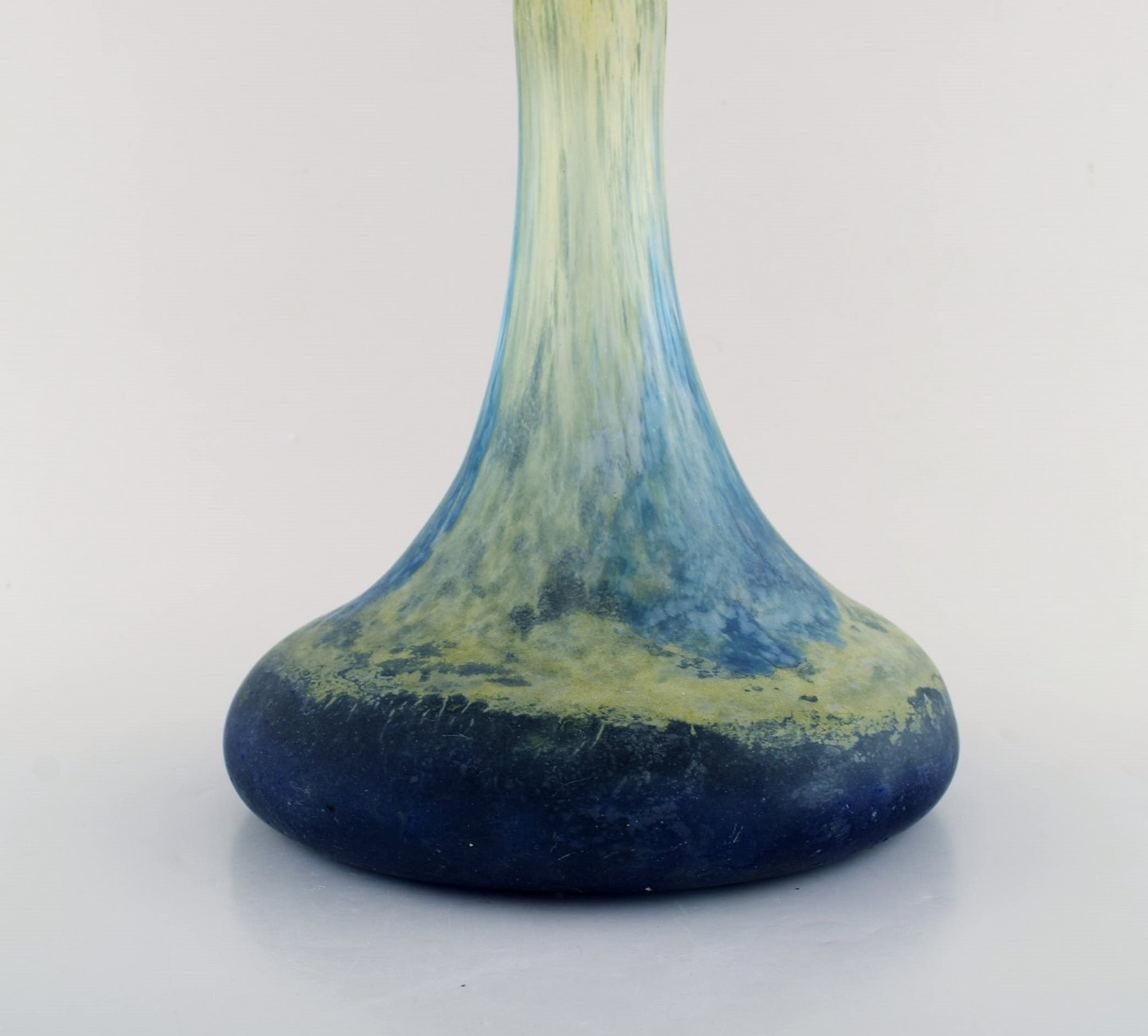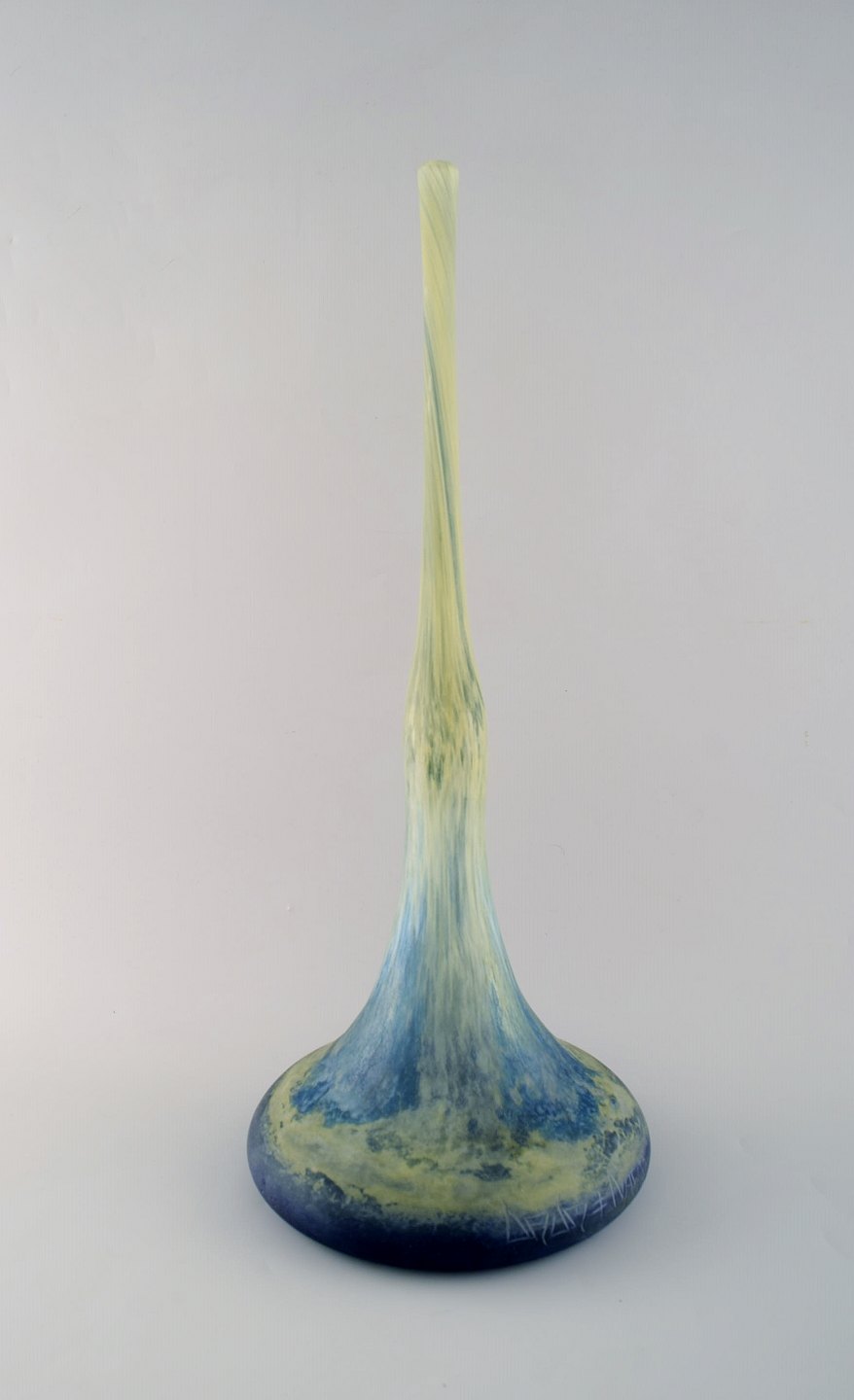 Daum, Nancy. Colossal art deco vase in mouth blown art glass. Rare form. 1920's. Measures: 46 x 19 cm. In very good condition. Signed.