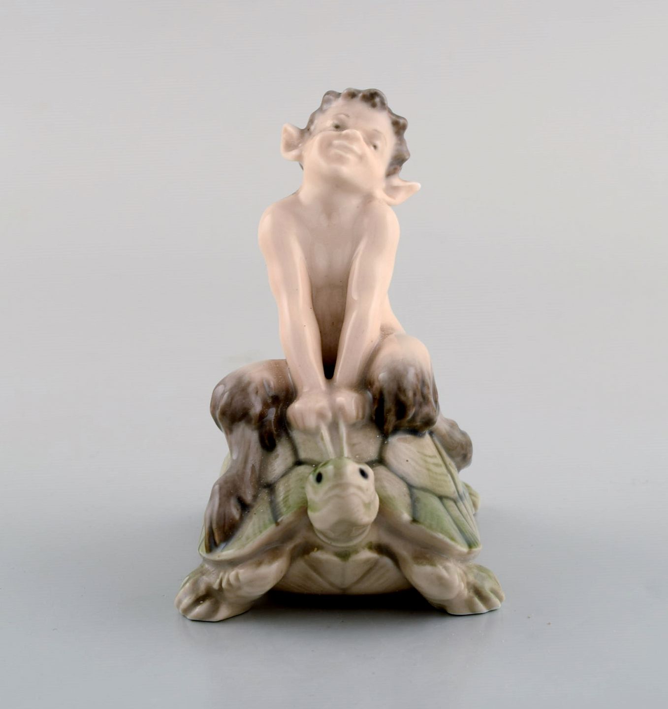 Royal Copenhagen Figurine Faun (Pan) on a turtle.