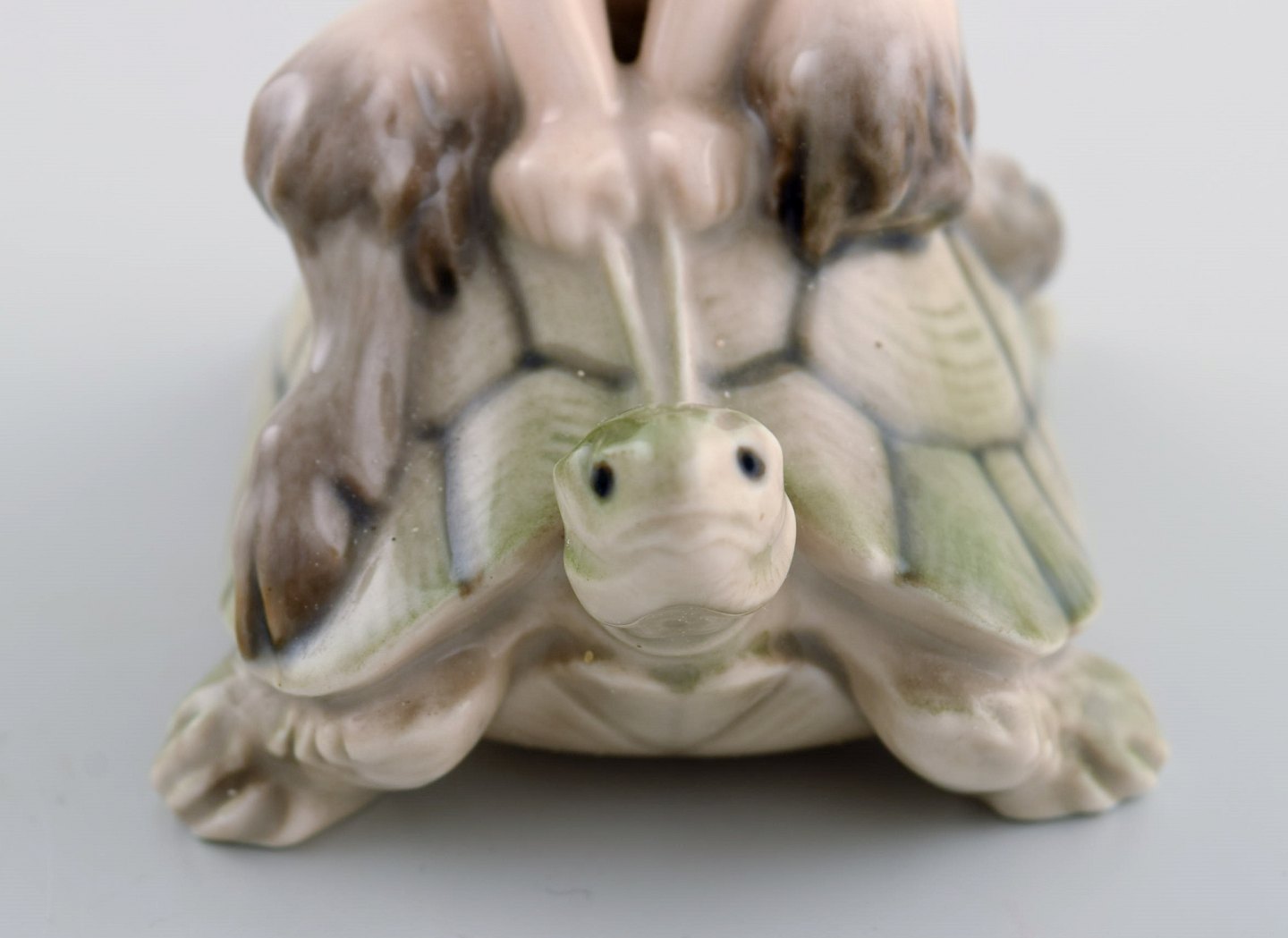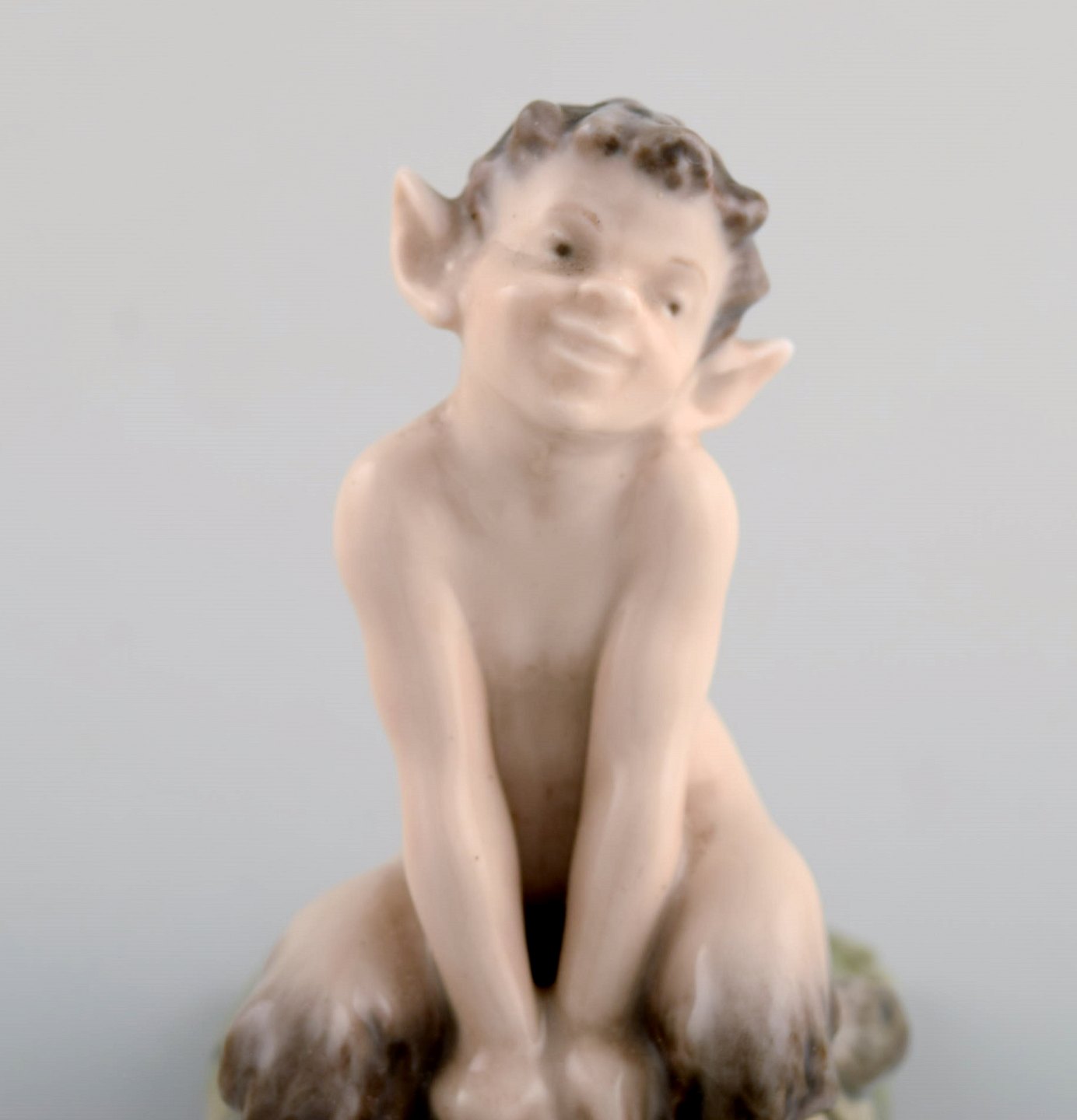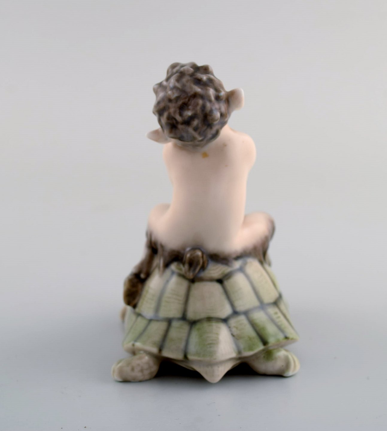 Royal Copenhagen Figur Faun(Pan) på skildpadde. Design: Christian Thomsen. Dekoration nummer 858. Højde 9 cm. Flot og velholdt. 4. sortering.