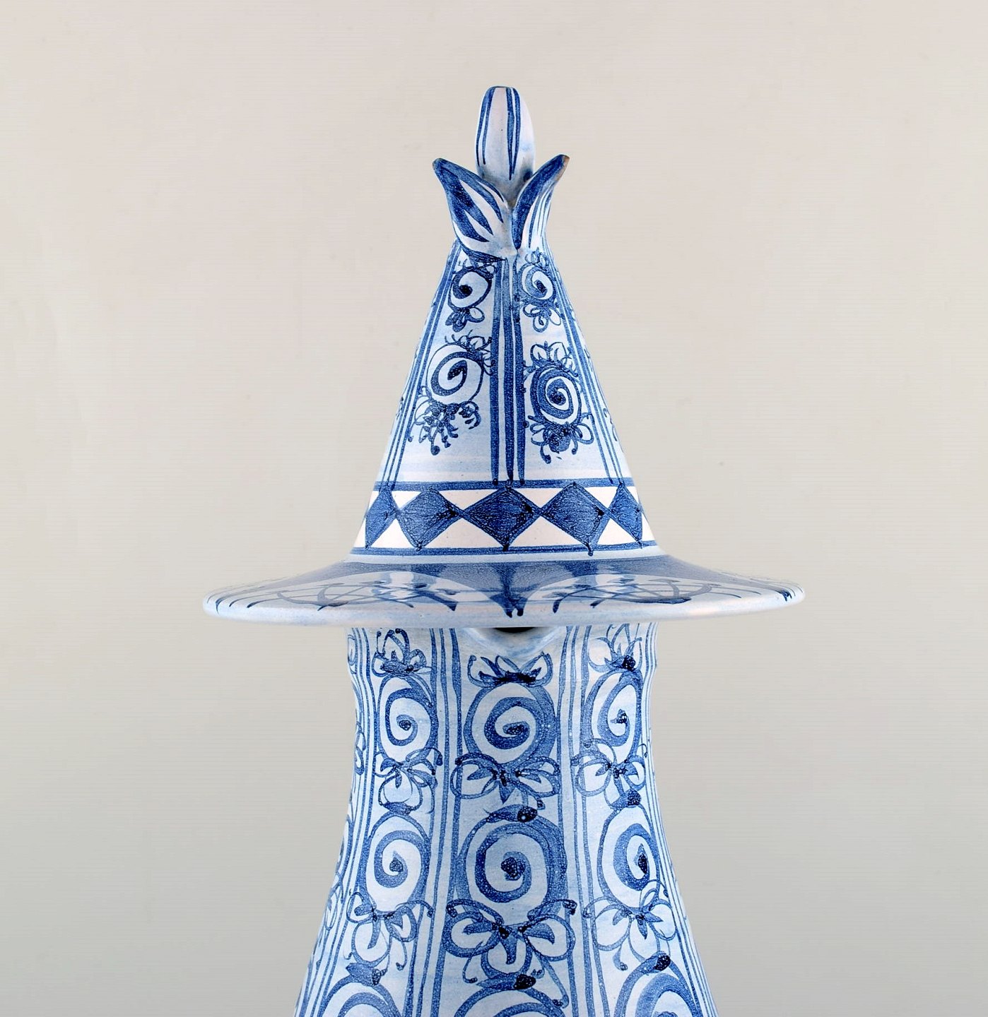 Bjørn Wiinblad (1918-2006). Stor vase / kande med hank af glaseret keramik i form af kvinde med hat. Dateret 1977. Modelnummer K10.