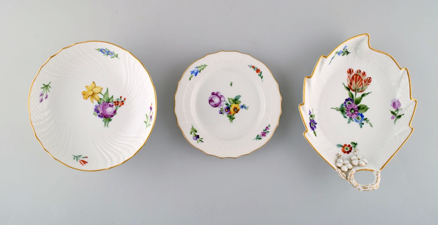Three parts Royal Copenhagen Light Saxon Flower hand-painted porcelain. Early 20th century.