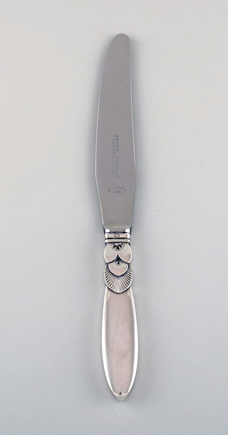 Georg Jensen Kaktus middagskniv i sterlingsølv og rustfrit stål. Designer: Gundorph Albertus. Måler: 25 cm. Stemplet. I flot stand.