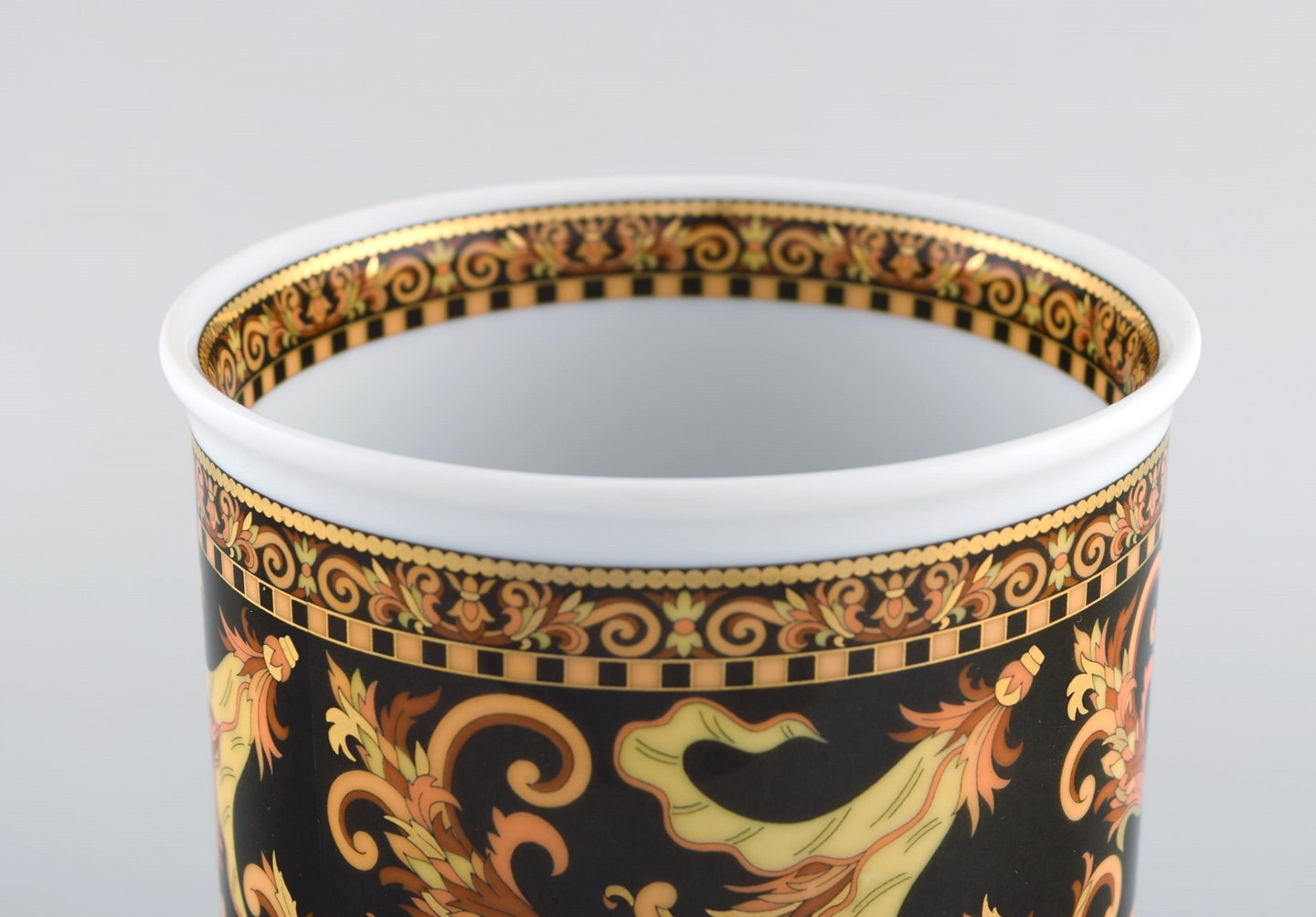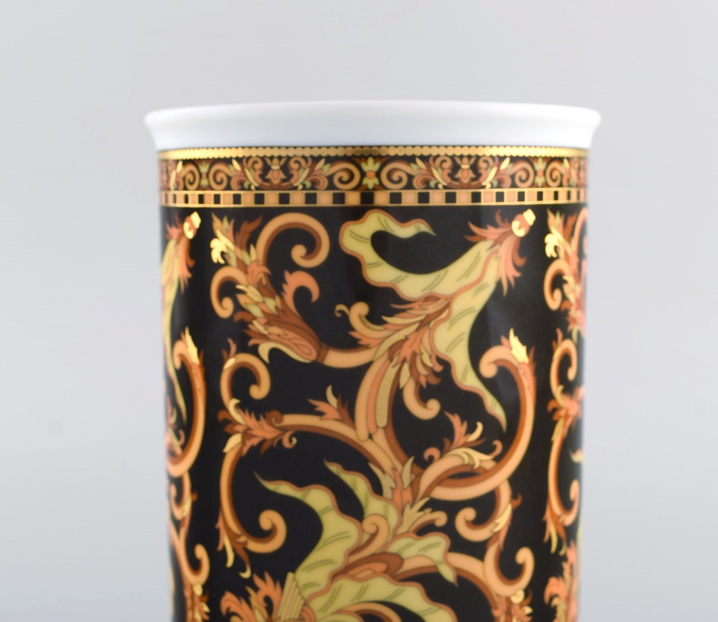 Gianni Versace for Rosenthal. Barocco vase i porcelæn med gulddekoration. Sent 1900-tallet. I perfekt stand. Måler: 18,5 x 12 cm Stemplet.