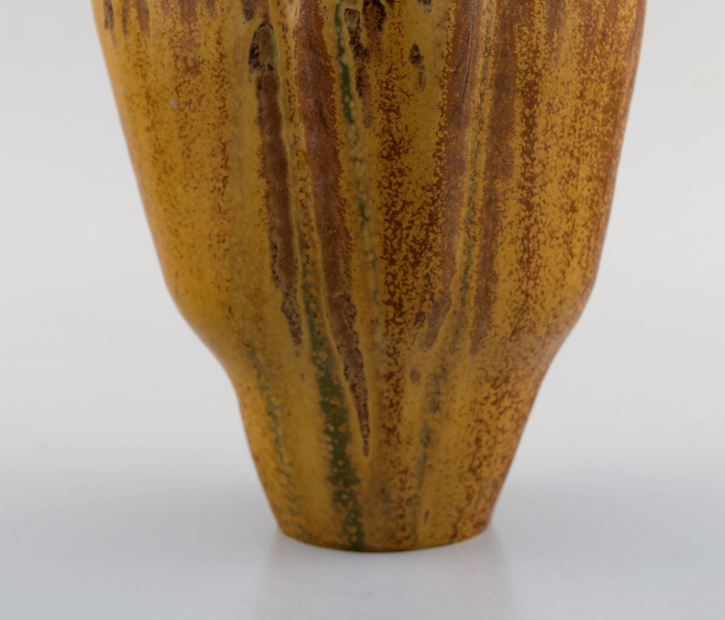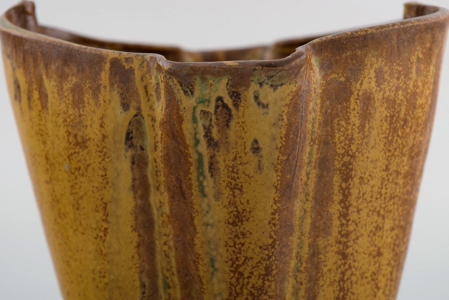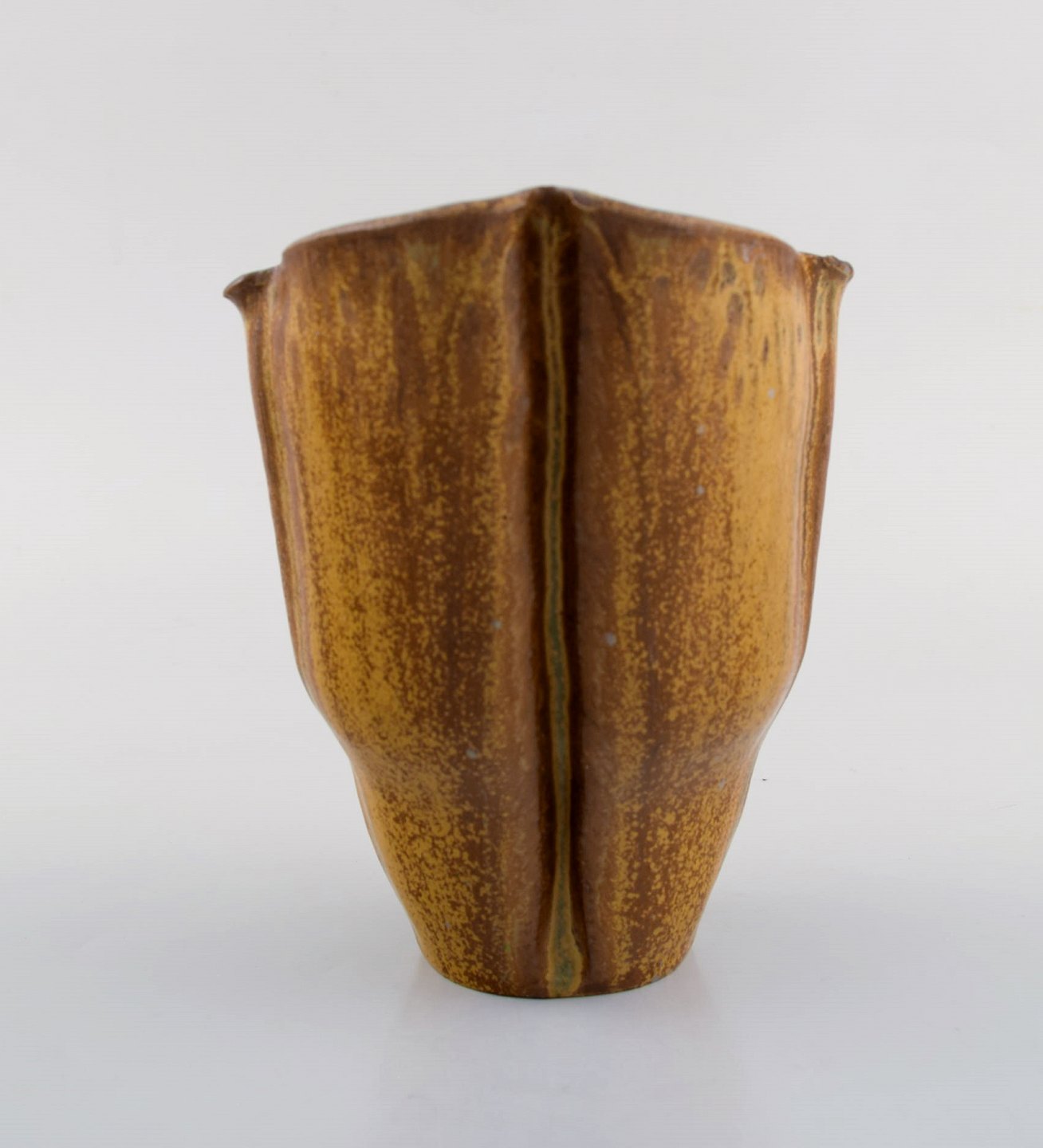 Arne Bang. Vase i glaseret keramik. Modelnummer 53. Smuk glasur i rødbrune nuancer. 1940/50'erne. I flot stand. Signeret. Måler: 14,5 x 13,5 cm.