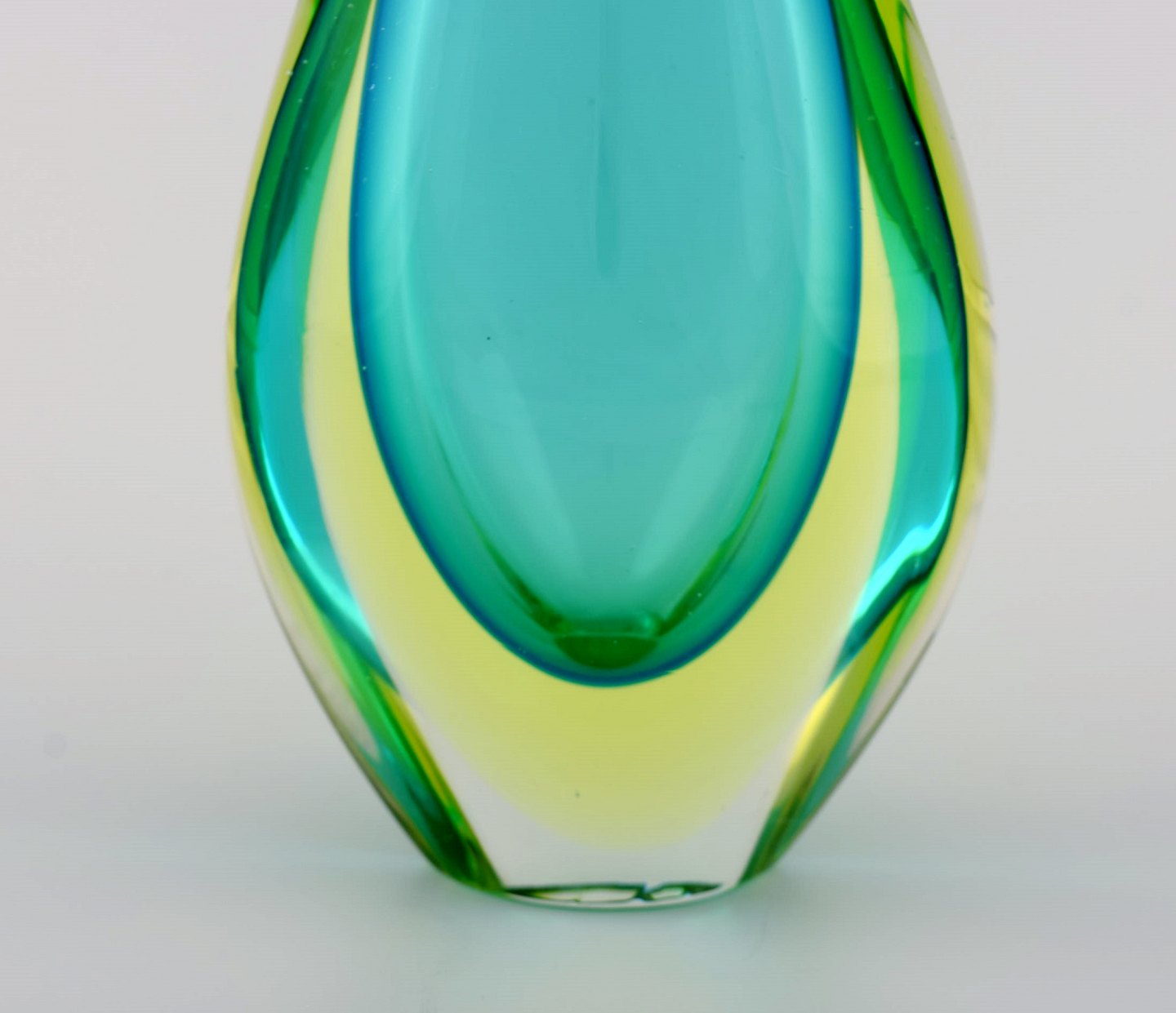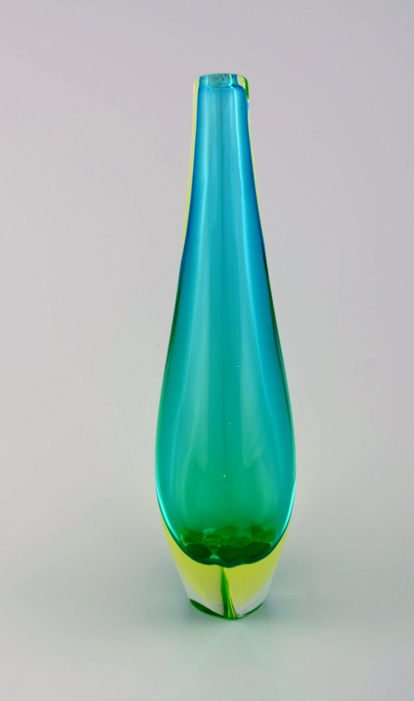 Large Murano vase in blue-green mouth blown art glass. Italian design, 1960's. Measures: 25.5 x 10.5 cm. In perfect condition.