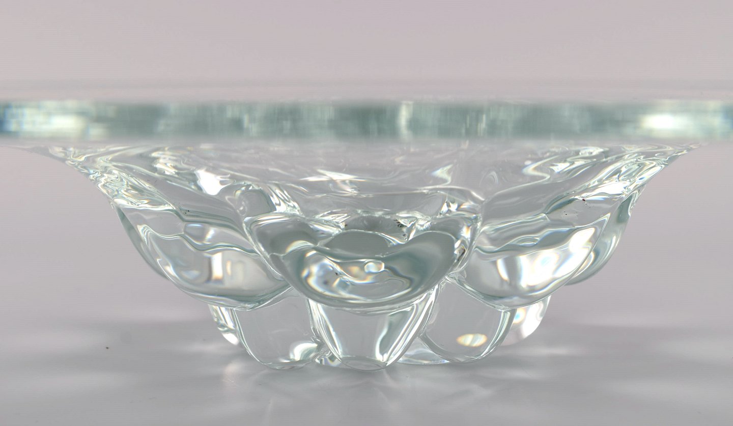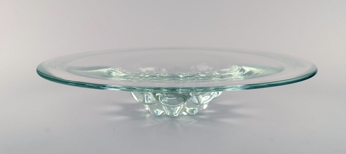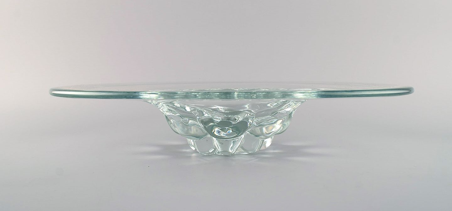 Skandinavisk glaskunstner. Stor skål i mundblæst kunstglas. 1960/70'erne. Måler: 37,5 x 7,5 cm. I flot stand.