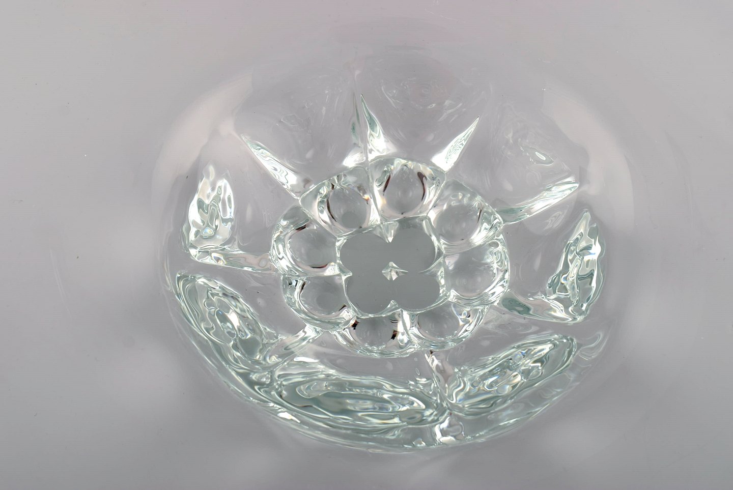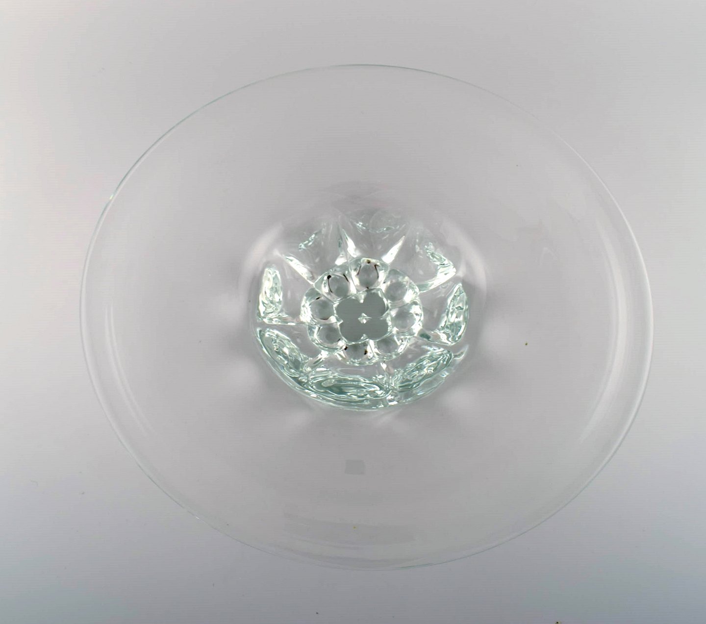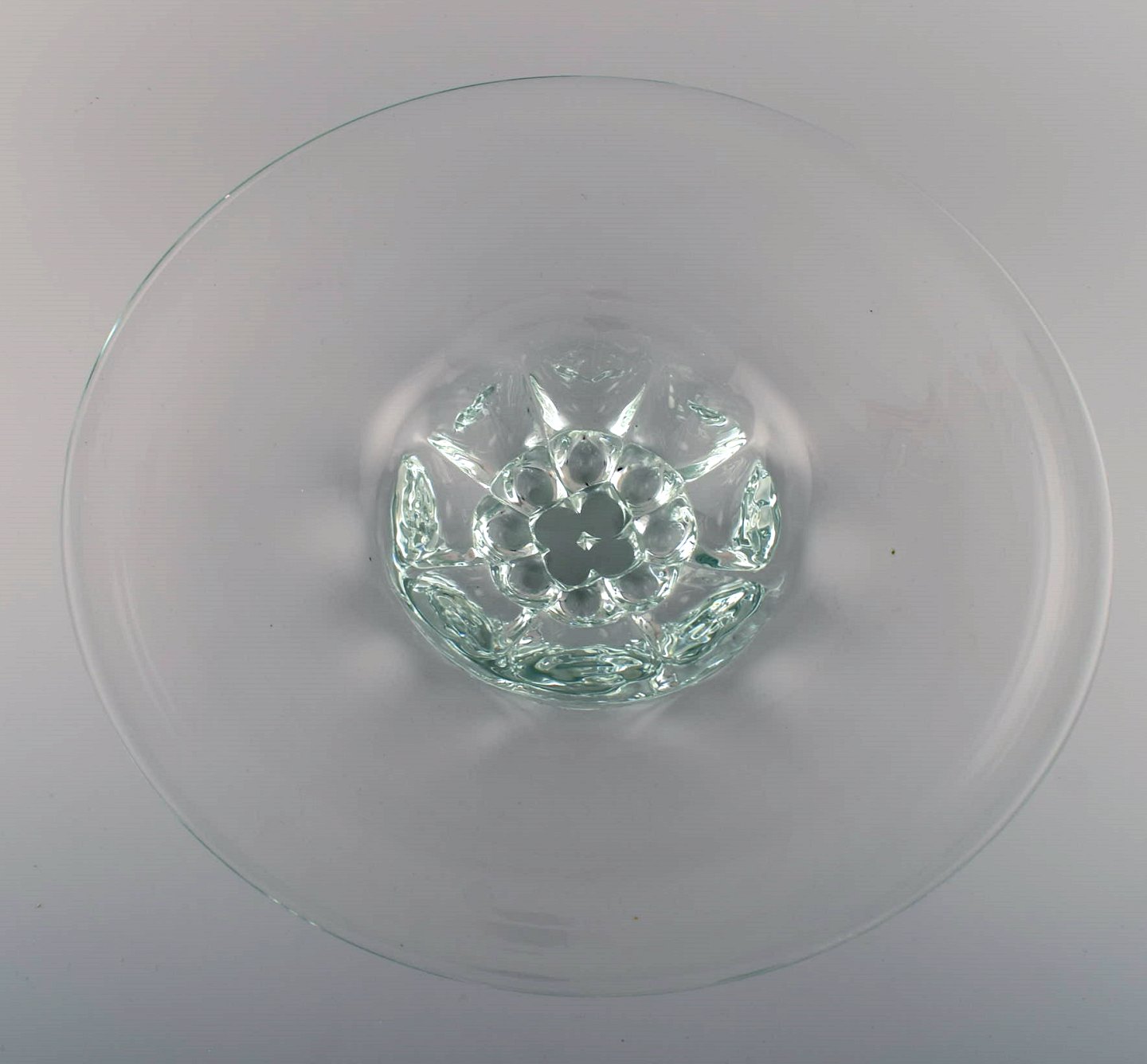 Skandinavisk glaskunstner. Stor skål i mundblæst kunstglas. 1960/70'erne. Måler: 37,5 x 7,5 cm. I flot stand.