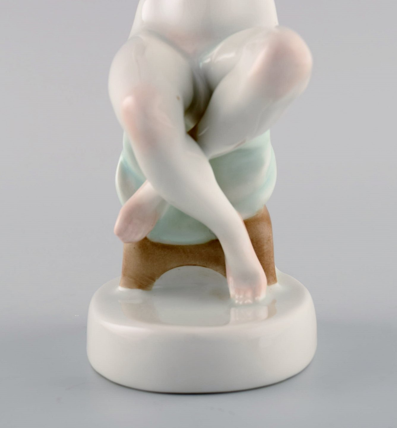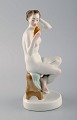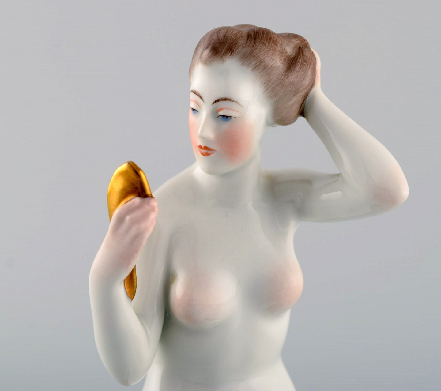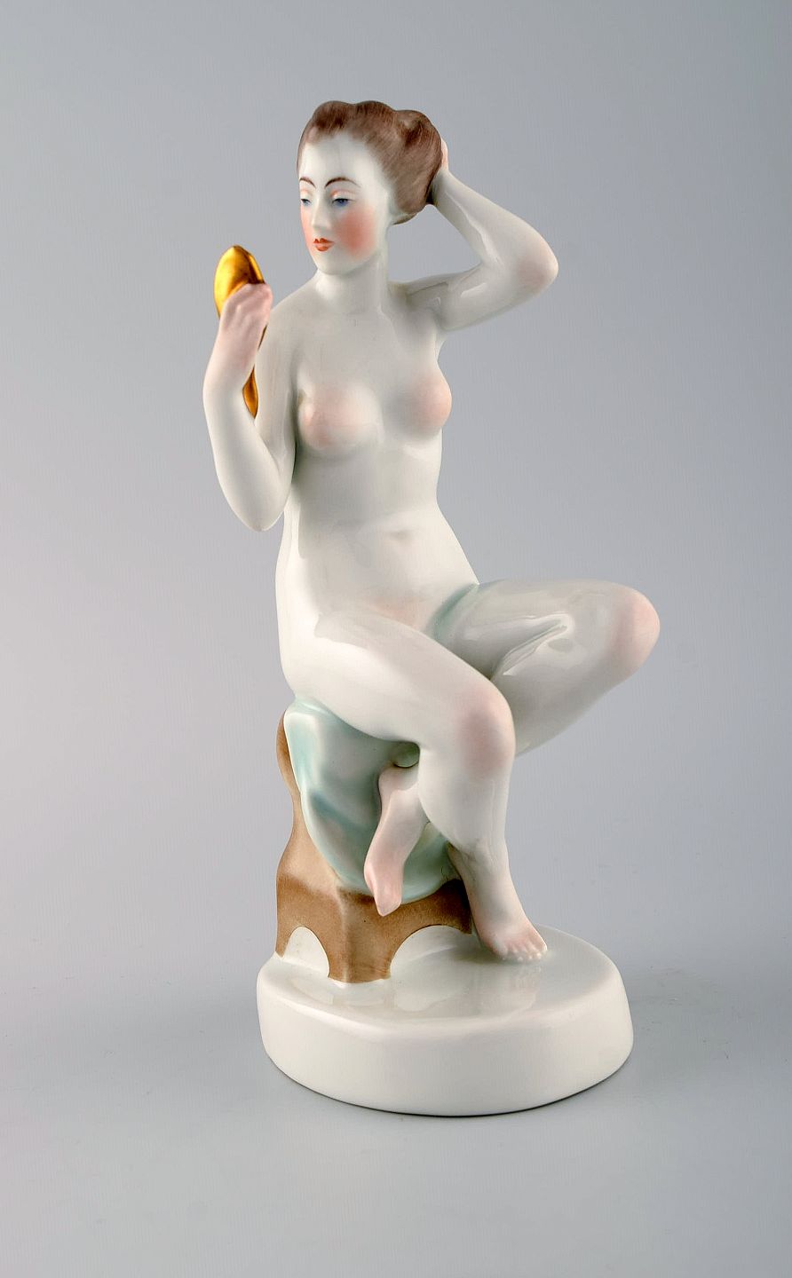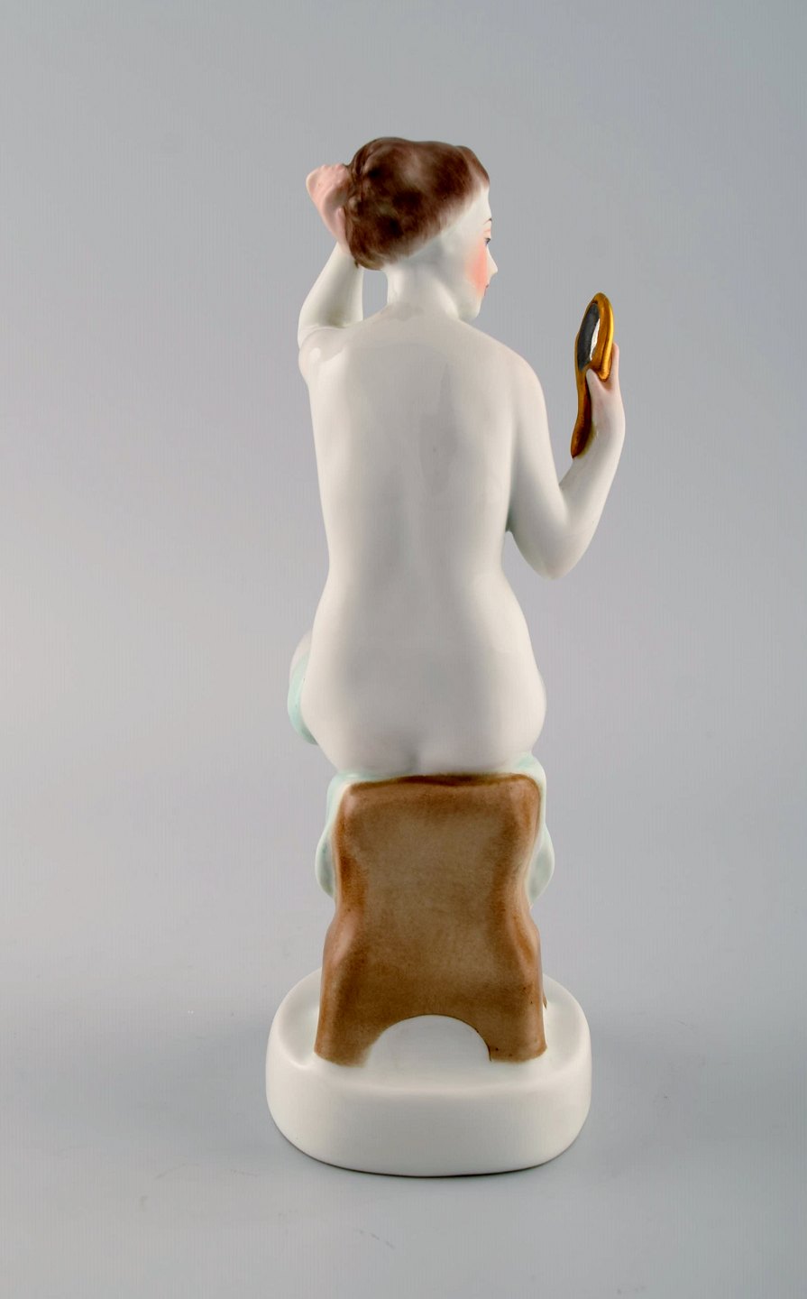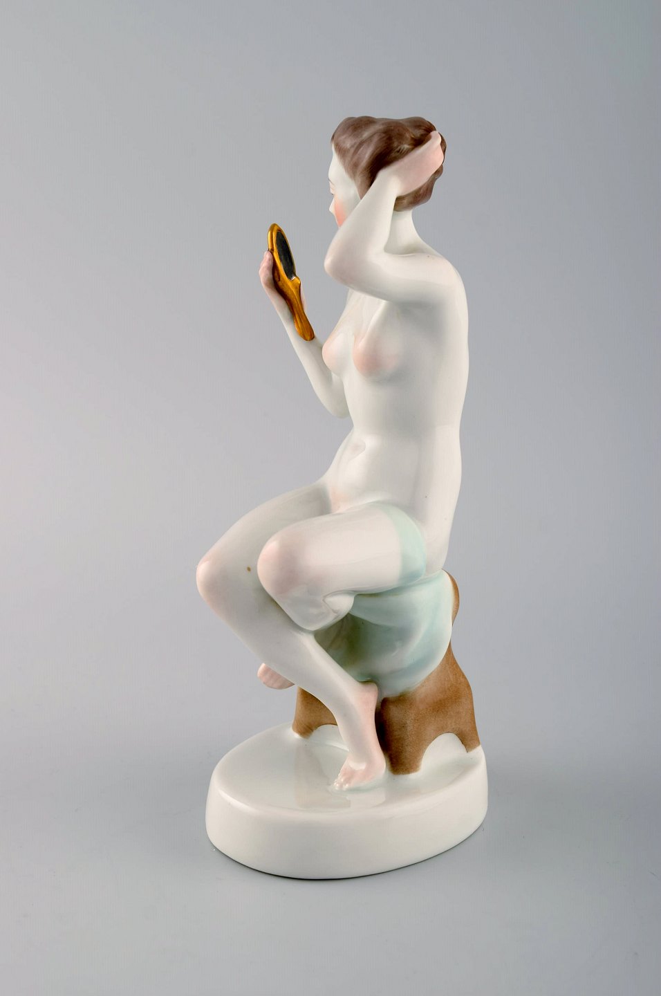 Herend, Hungary. Art deco figure in hand-painted porcelain. Girl with mirror. 1940's. Measures: 20 x 9 cm. In very good condition. Stamped.
