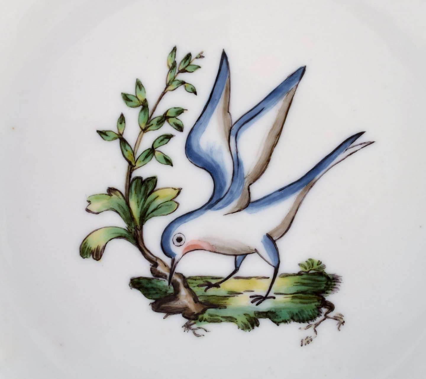 Royal Copenhagen middagstallerken i håndmalet porcelæn med fuglemotiver og gulddekoration. Tidligt 1900-tallet. 31 stk på lager.